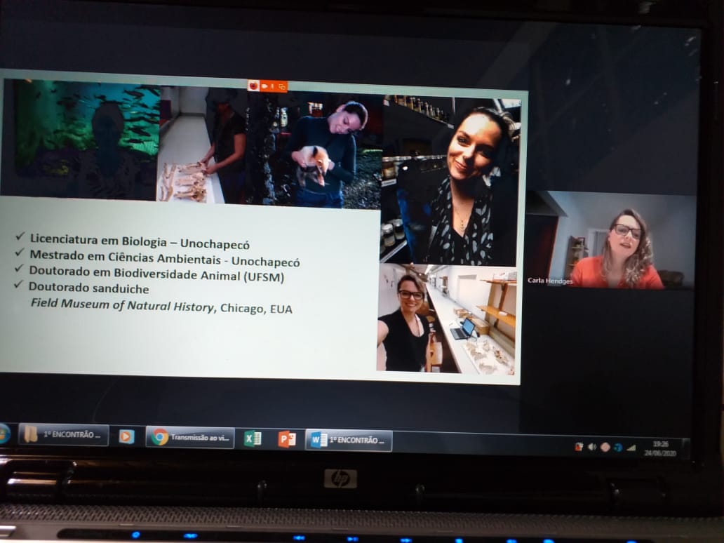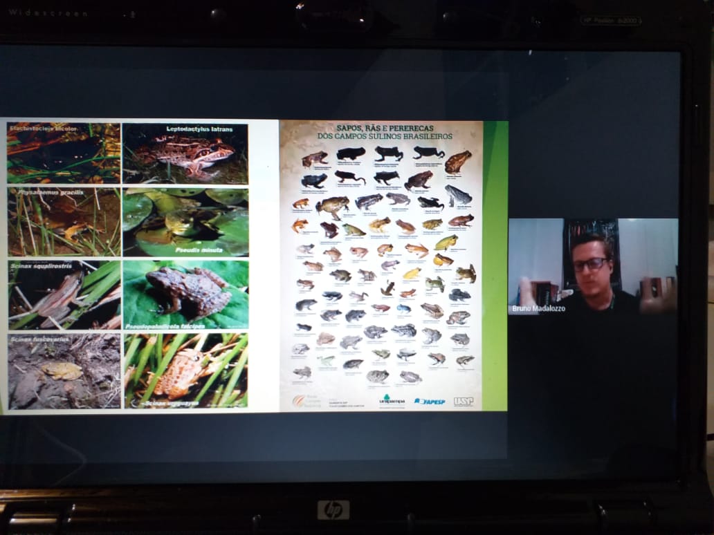 Os quatro palestrantes também relataram sobre sua formação e trajetória acadêmica, seus trabalhos em Zoologia, seus desafios e projetos em andamento e futuros. Bruno Madalozzo destacou como as mudanças climáticas podem afetar de maneira significativa a comunidade de anfíbios em nível mundial. Carla Hendges apresentou como a variação morfológica em mamíferos tem relação com a evolução destes organismos. Flávia Junqueira mostrou a importância das coleções biológicas e como é trabalhar com moluscos terrestres. Camila Cabral relatou a importância da Zoologia na formação do biólogo e como o trabalho de campo pode ser uma tarefa árdua para mulheres frente a sociedade machista na qual vivemos.