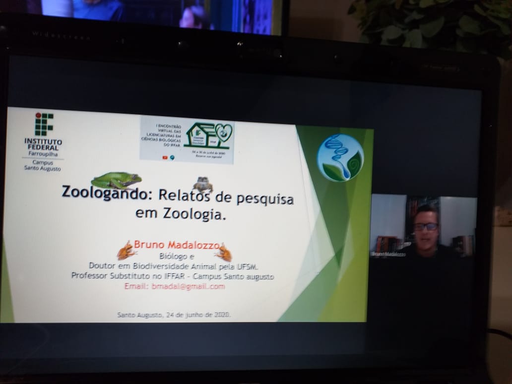 No dia 24 de junho, a live “Zoologando: Relatos de Pesquisa em Zoologia” contou com a participação dos professores do Campus Santo Augusto: Bruno Madalozzo, Camila Rodrigues Cabral e Flávia Oliveira Junqueira, e do Campus Panambi: Carla Deonisia Hendges. Na ocasião, os professores abordaram diferentes perspectivas da Zoologia como variação morfológica em mamíferos e sua relação com a evolução, mudanças climáticas e seus efeitos em anfíbios, estudos com moluscos terrestres e o uso da Zoologia como ferramenta instigante e crucial na formação de um biólogo.
