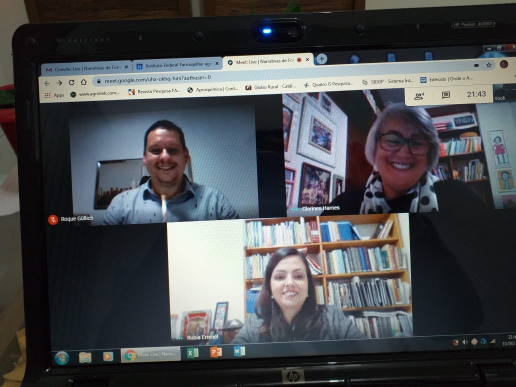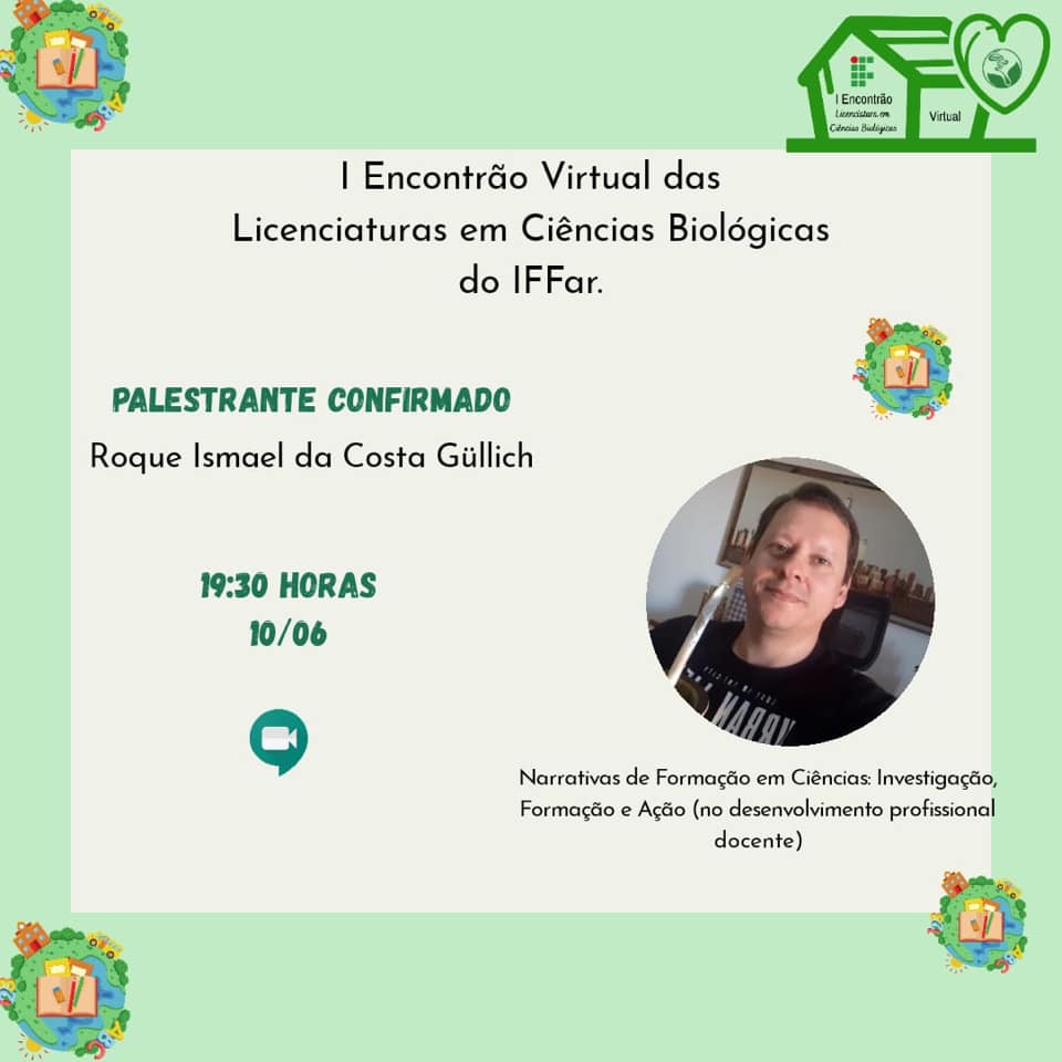No dia 10 de junho, a live foi "Narrativas de formação em Ciências: Investigação, Formação e Ação (no desenvolvimento profissional docente)”, ministrada pelo professor convidado Dr. Roque Ismael da Costa Güllich, da UFFS – Campus Cerro Largo, tendo como mediadoras as professoras Clarinês Hames, do IFFar – Campus Santo Augusto e Rúbia Emmel, do IFFar - Campus Santa Rosa. Inicialmente o palestrante fez uma abordagem teórica sobre as diferentes racionalidades, destacando os autores que a discutem para, posteriormente, refletir sobre suas implicações na formação docente.
