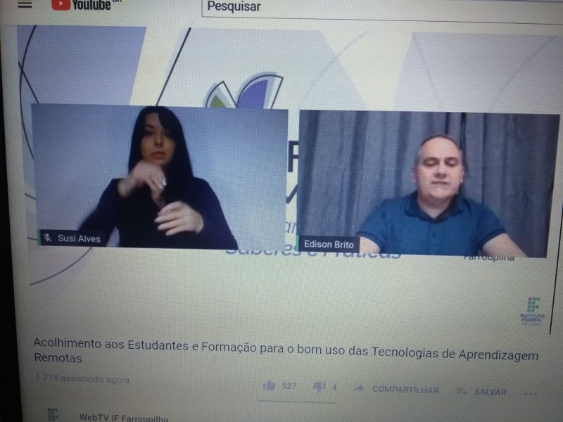 Nesta segunda-feira (03), o IFFar promoveu uma live de acolhimento aos estudantes e famílias e de formação para o bom uso das tecnologias mediadoras de aprendizagem no ensino remoto para marcar a retomada das atividades acadêmicas não presenciais. A atividade, que integra o programa “IFFar Formação: conectando saberes e práticas”, teve a participação de quase 2 mil pessoas pelo canal da WebTV do IFFar no YouTube.
