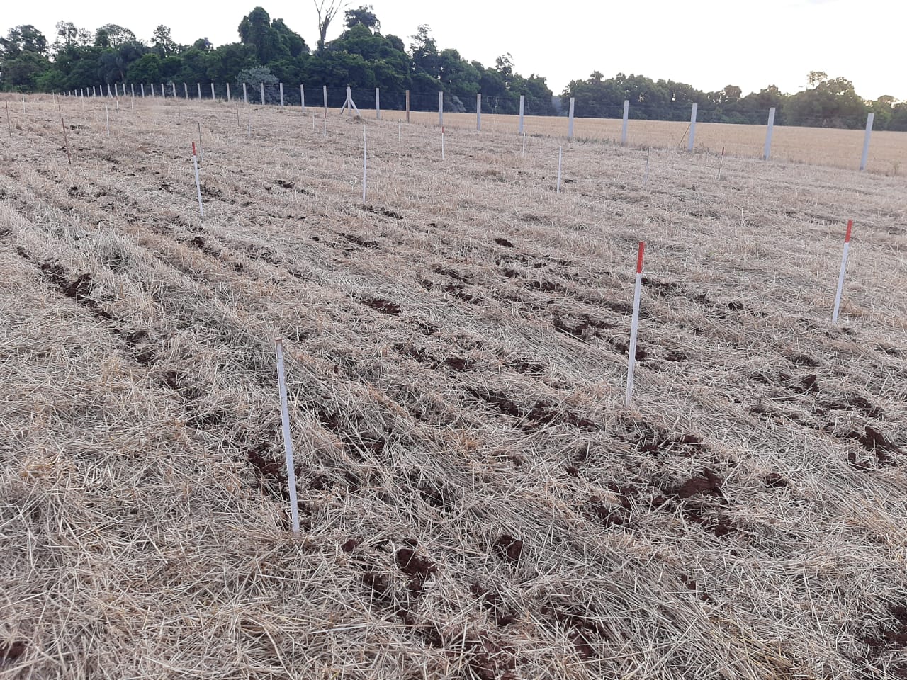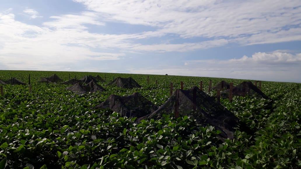 5. Avaliação do efeito do sombreamento no desenvolvimento e produtividade de grãos de soja de diferentes cultivares: O projeto está sendo conduzido na propriedade da família Ferrazza no município de Catuípe – RS, onde dois cultivares de soja semeadas de acordo com as recomendações técnicas da cultura, serão sombreadas artificialmente em três estádios de desenvolvimento: R1 a R3 (Tratamento 1), R1 a R3 e R5.1 a R5.3 2 (Tratamento 2) e R5.1 a R5.3 (Tratamento 3) e serão comparados com a área não sombreada. Espera-se identificar ao final do projeto o efeito do sombreamento nos parâmetros de desenvolvimento e produtivos da cultura e também a qualidade de sementes.