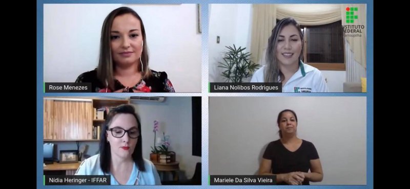 No dia 07 de abril, às 19h, a Reitora do IFFar, Nídia Heringer, participou da abertura do evento. A Reitora salientou a importância da saúde mental diante dos desafios da retomada do ano letivo e das necessárias adaptações após um ano de pandemia. “Acreditamos que possamos nos reencontrar, conhecer novos integrantes da comunidade do IFFar e seguirmos juntos por meio de conexões diversas, preservando vidas e colaborando com a saúde de todos”, afirmou Nídia. A Reitora mencionou ainda a importância do esforço coletivo e individual para que possamos seguir em frente nessa caminhada virtual até que, com segurança e com vacina, seja possível retomar as atividades presenciais.