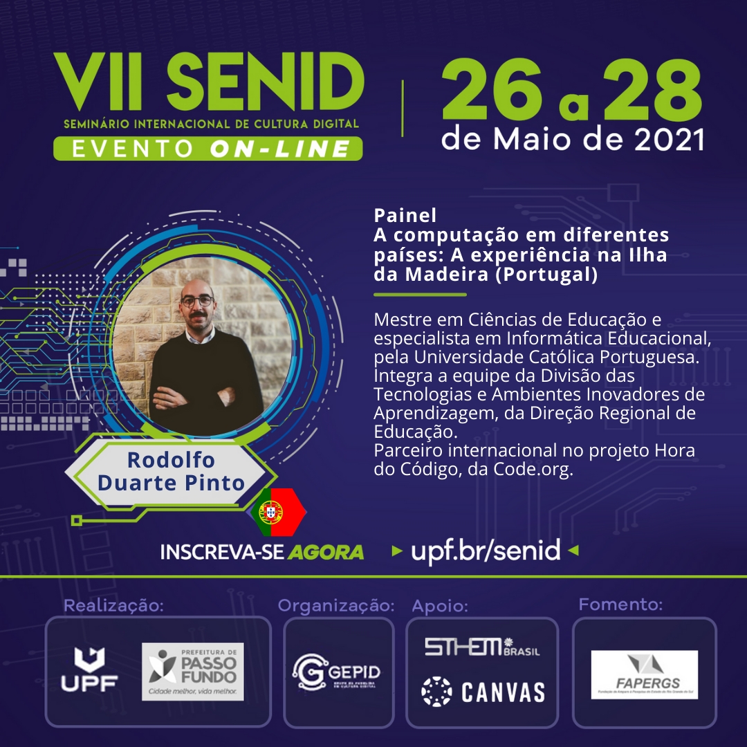 O Seminário Internacional de Cultura Digital - SENID nasce do interior do Grupo de Pesquisa em Cultura Digital na Educação e dos Programas de Pós-Graduação em Educação e em Ensino de Ciências em Matemática, ambos da Universidade de Passo Fundo - UPF. Conta com o envolvimento de instituições de ensino superior do Brasil e estrangeiras, Sociedade Brasileira da Computação, Governo do Estado do Rio Grande do Sul e Prefeitura Municipal de Passo Fundo. É destinado a estudantes, pesquisadores e profissionais da educação interessados em discutir a temática da Inclusão Digital e os desdobramentos da Cultura Digital sobre os processos educativos formais ou não e, neste ano em específico, sobre as possibilidades do Ensino Híbrido. Seu objetivo é divulgar a produção científica e experiências realizadas no Brasil e no exterior nas áreas de tecnologias e metodologias de inclusão e cultura digital na educação.