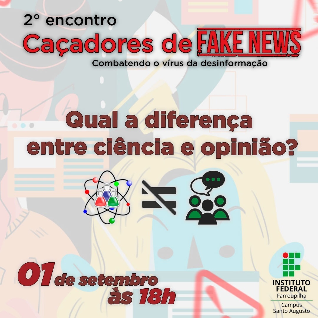 O próximo encontro está agendado para o dia 1º de setembro, às 18h, tendo como tema “Qual a diferença entre opinião e ciência?”. Os convidados serão os professores Me. Fernando Coelho e Me. Leocir Bressan, do Campus Frederico Westphalen.