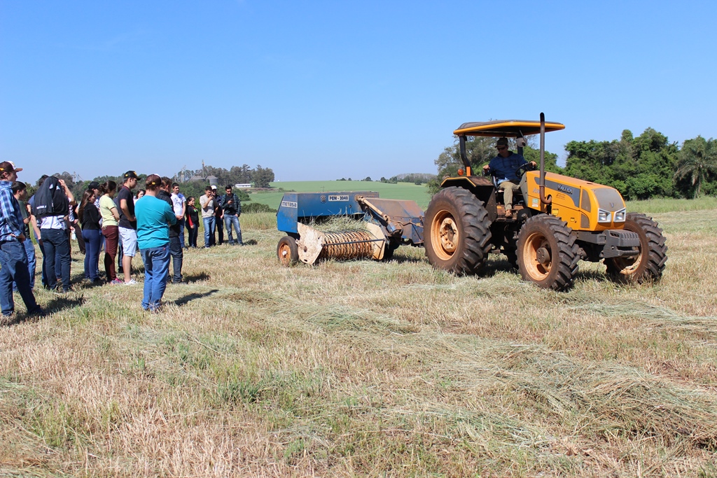 Acompanhados da professora, Lidiane Walter; do técnico em agropecuária, Evandro Steffen; e do veterinário Jarbas Melo; Alunos do Curso Técnico em Agropecuária do IFFar - Campus Santo Augusto, puderam conhecer na manhã desta quarta-feira, dia 28 de setembro, no terreno do próprio Instituto, o processo de enfardamento de feno.