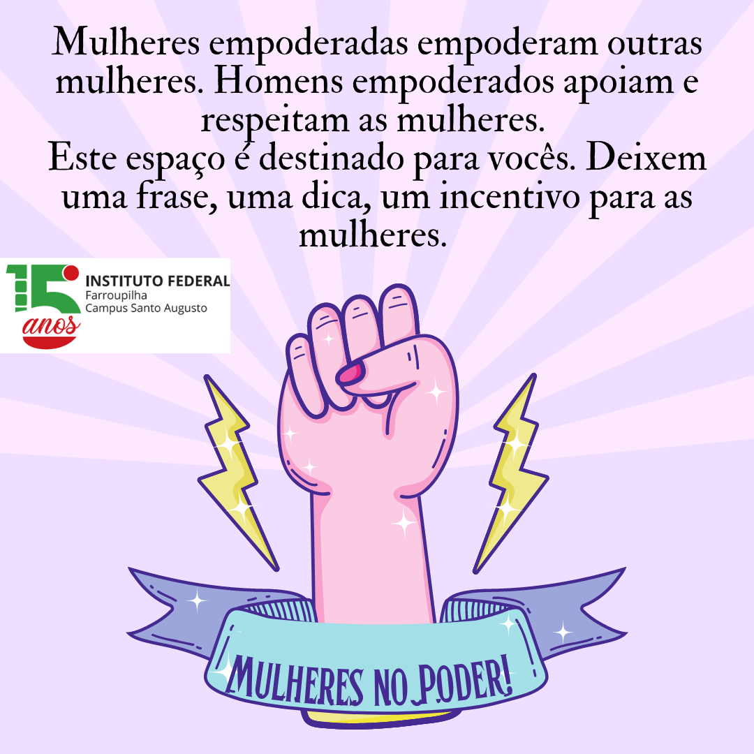 O Núcleo de Gênero e Diversidade Sexual – NUGEDIS do IFFar - Campus Santo Augusto está promovendo durante o mês de março ações alusivas ao Dia Internacional da Mulher, comemorado no dia 08 de março.