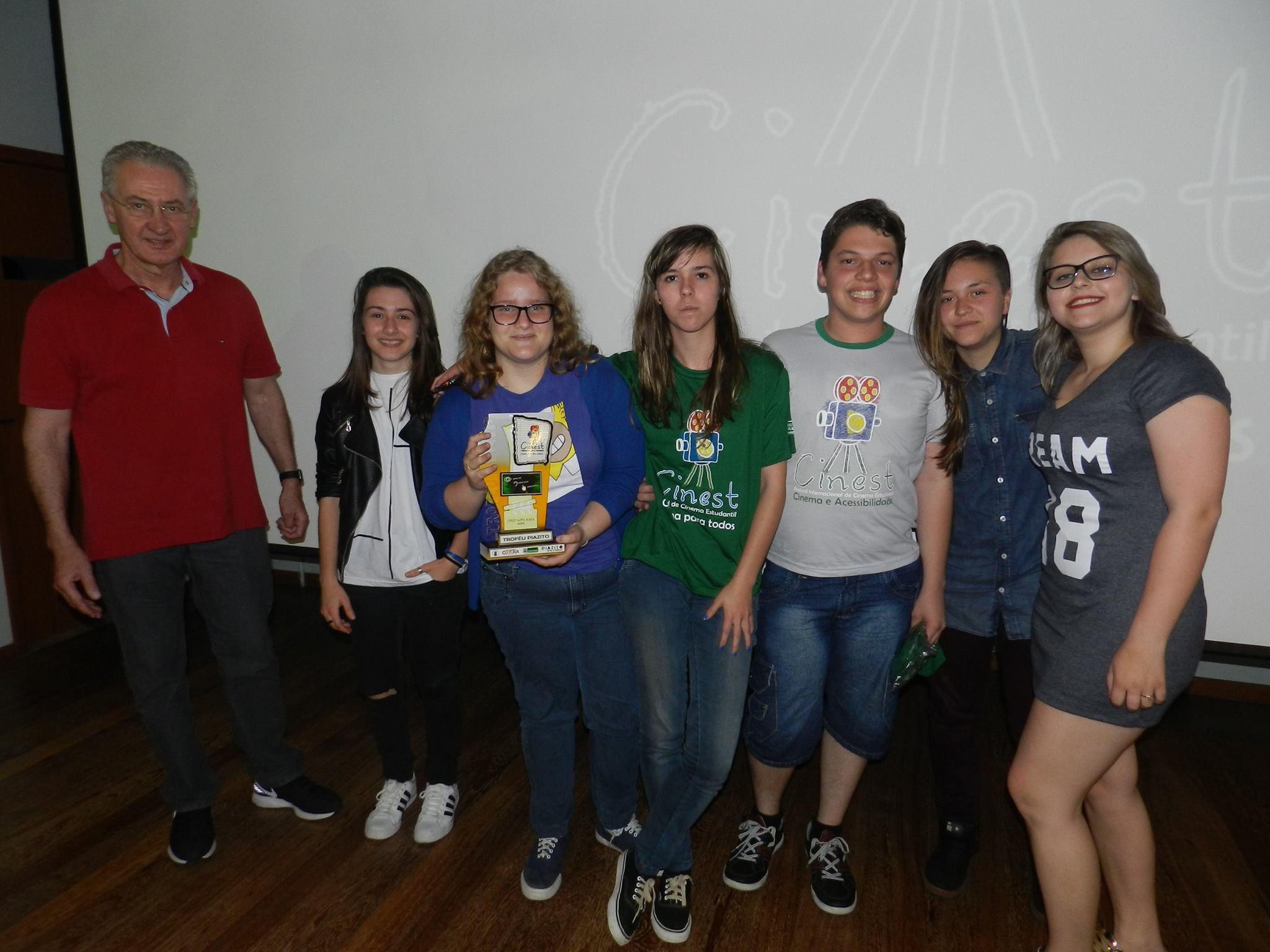O professor Edevandro parabeniza a todos os envolvidos com o Projeto, aos que foram ao CINEST esse ano e aqueles que por um motivo ou outro não puderam ir, em especial a Julia e o Marcos que conquistaram os prêmios: “Esses prêmios são importantes para a continuidade do projeto, pois estimula os alunos a participarem do mesmo. Os prêmios, certamente, são resultados de um trabalho de todo o grupo, pois foram colocadas em prática as teorias estudas aqui no IFFar e o que foi aprendido nos anos anteriores em que participamos do evento”.