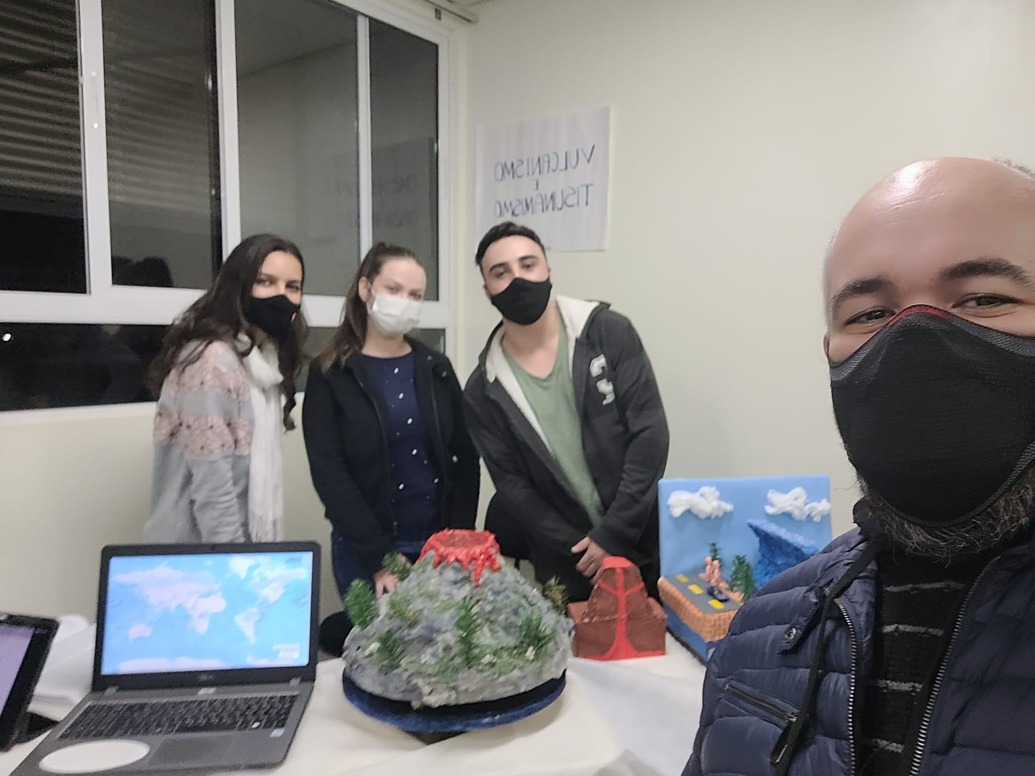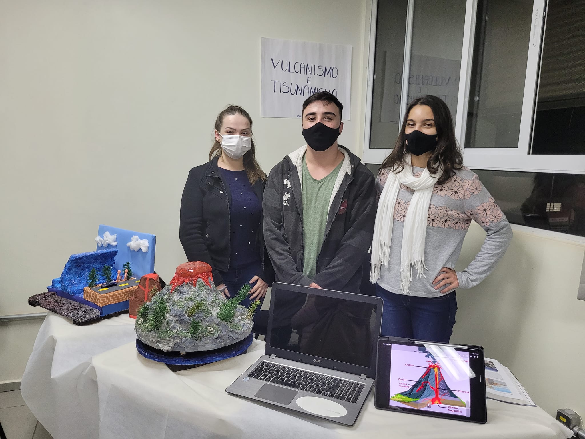 Estudantes do 7º semestre do curso superior de Licenciatura em Ciências Biológicas organizaram na noite de ontem uma Feira Científica, dentro da disciplina de Geologia, sob orientação do professor Dr. Gustavo Marques da Costa, com apresentação de trabalhos sobre Vulcanismo, Tsunamis, Intemperismo, Placas Tectônicas e Terremotos.