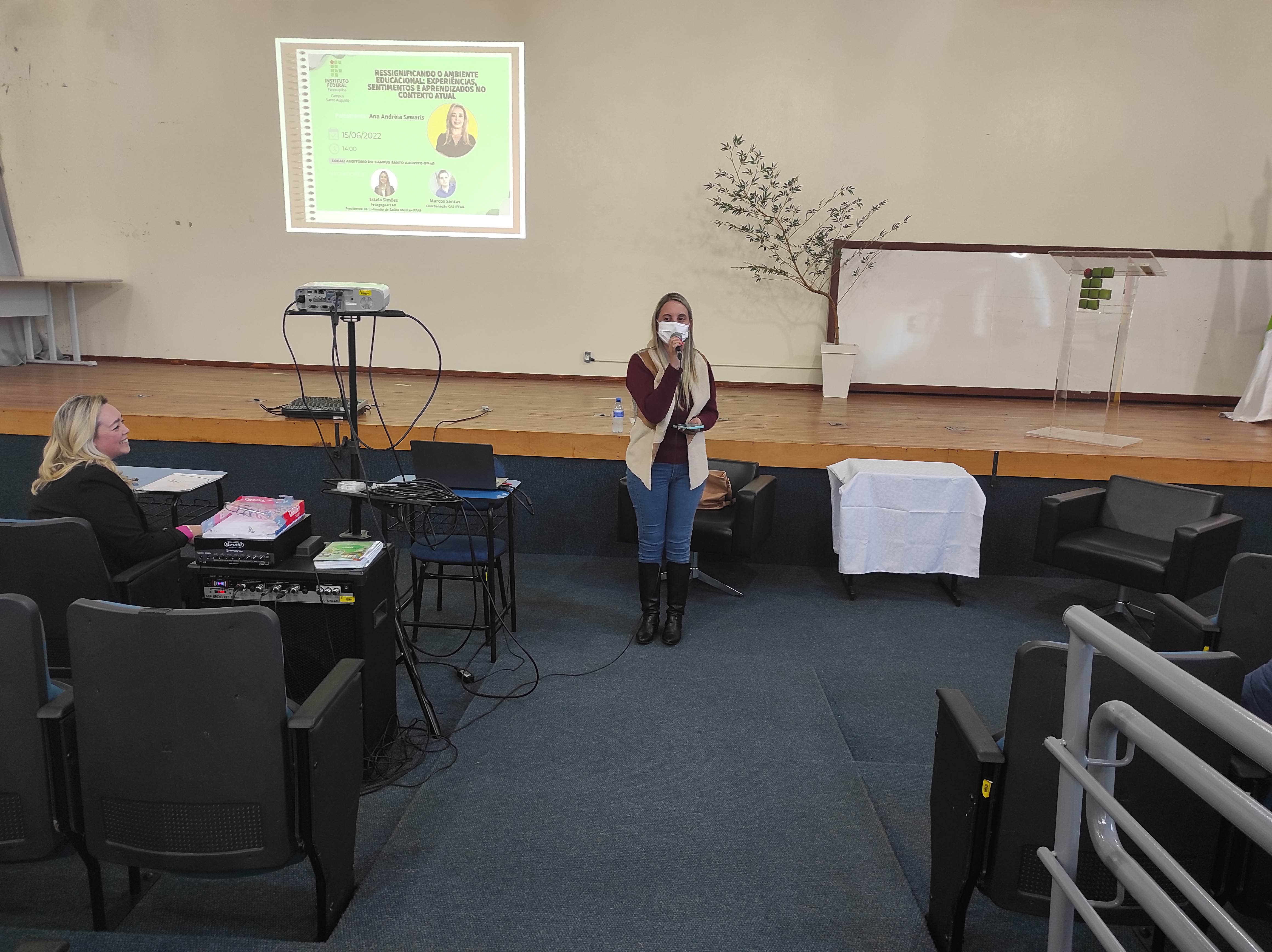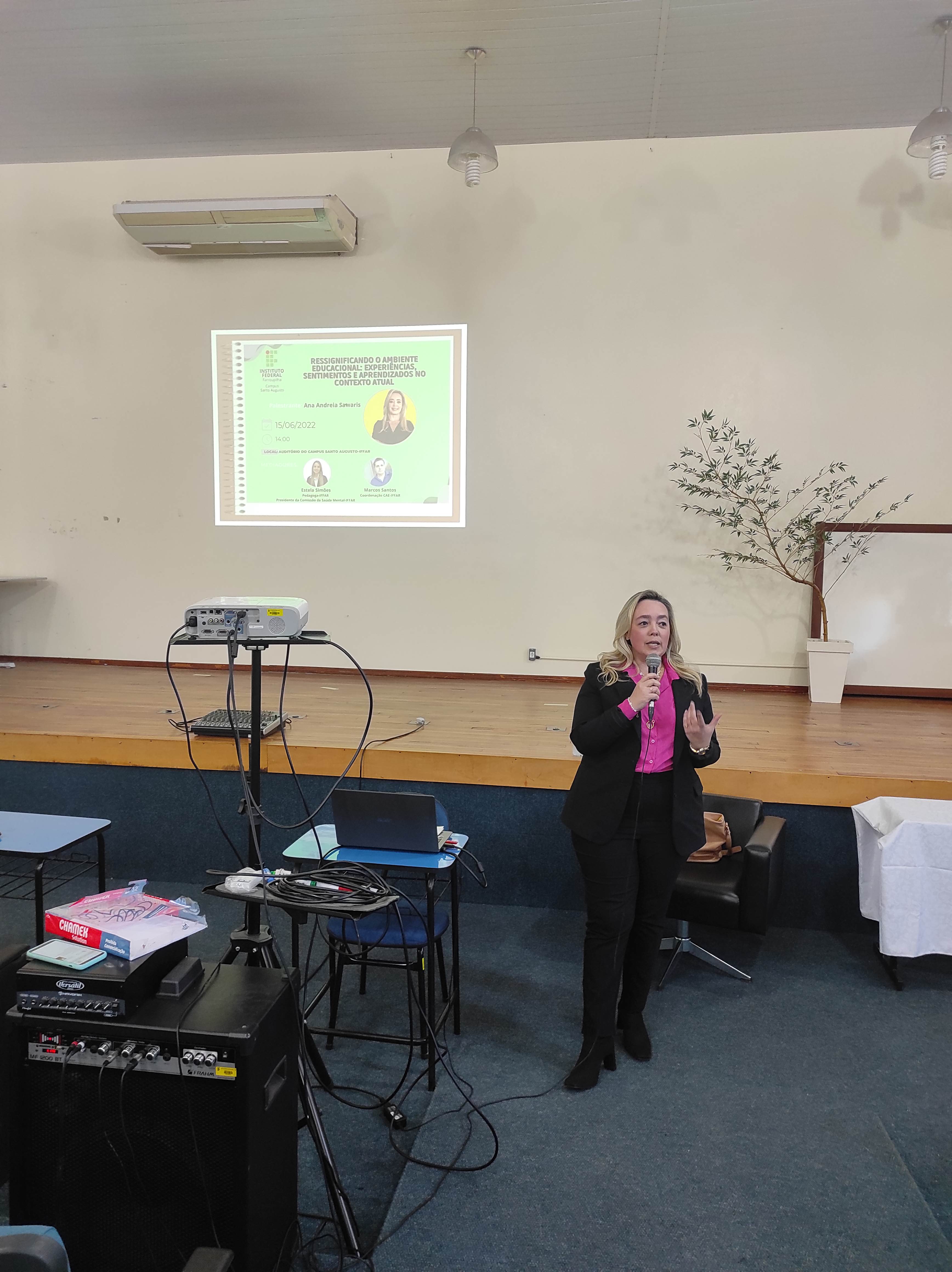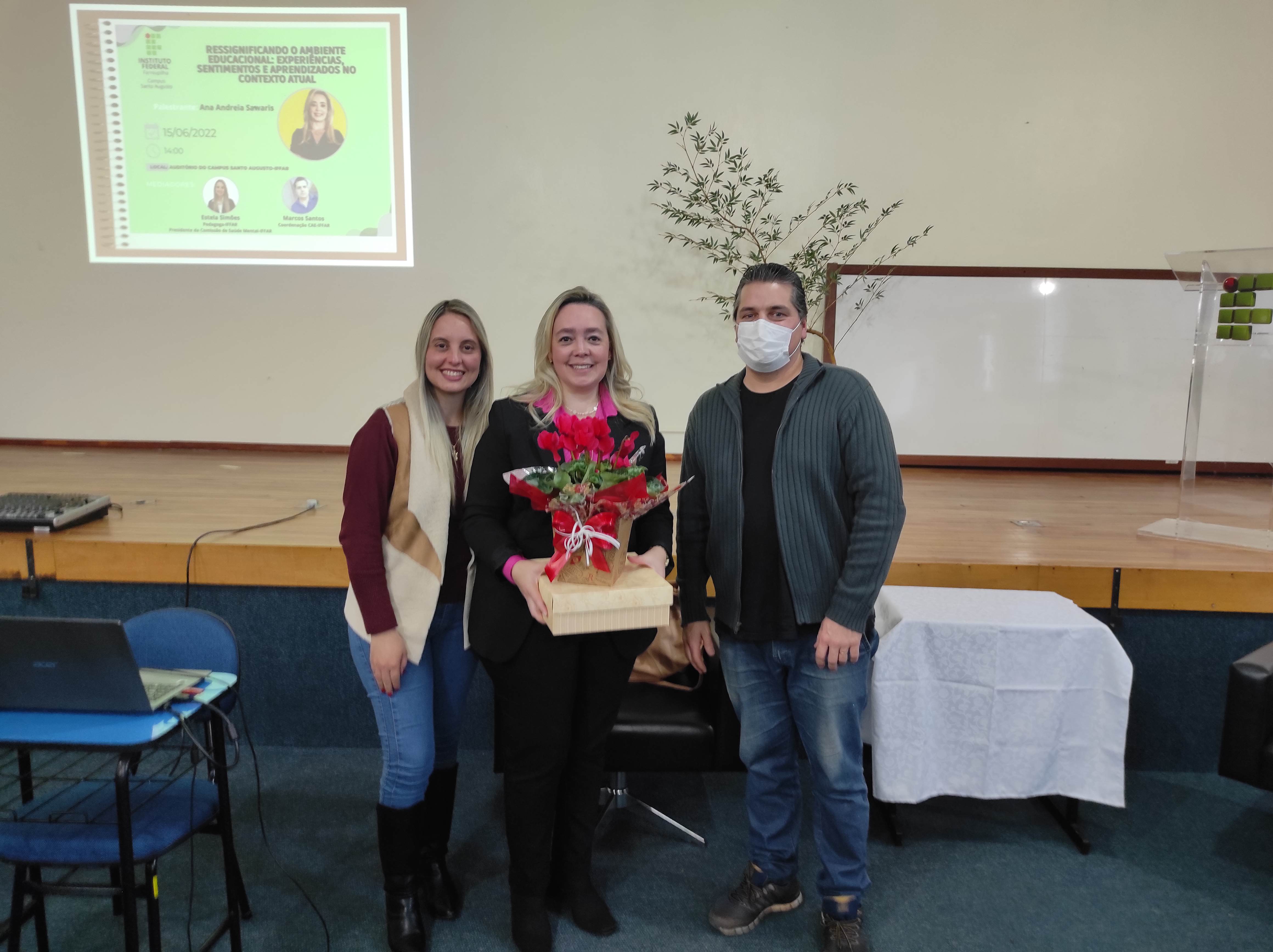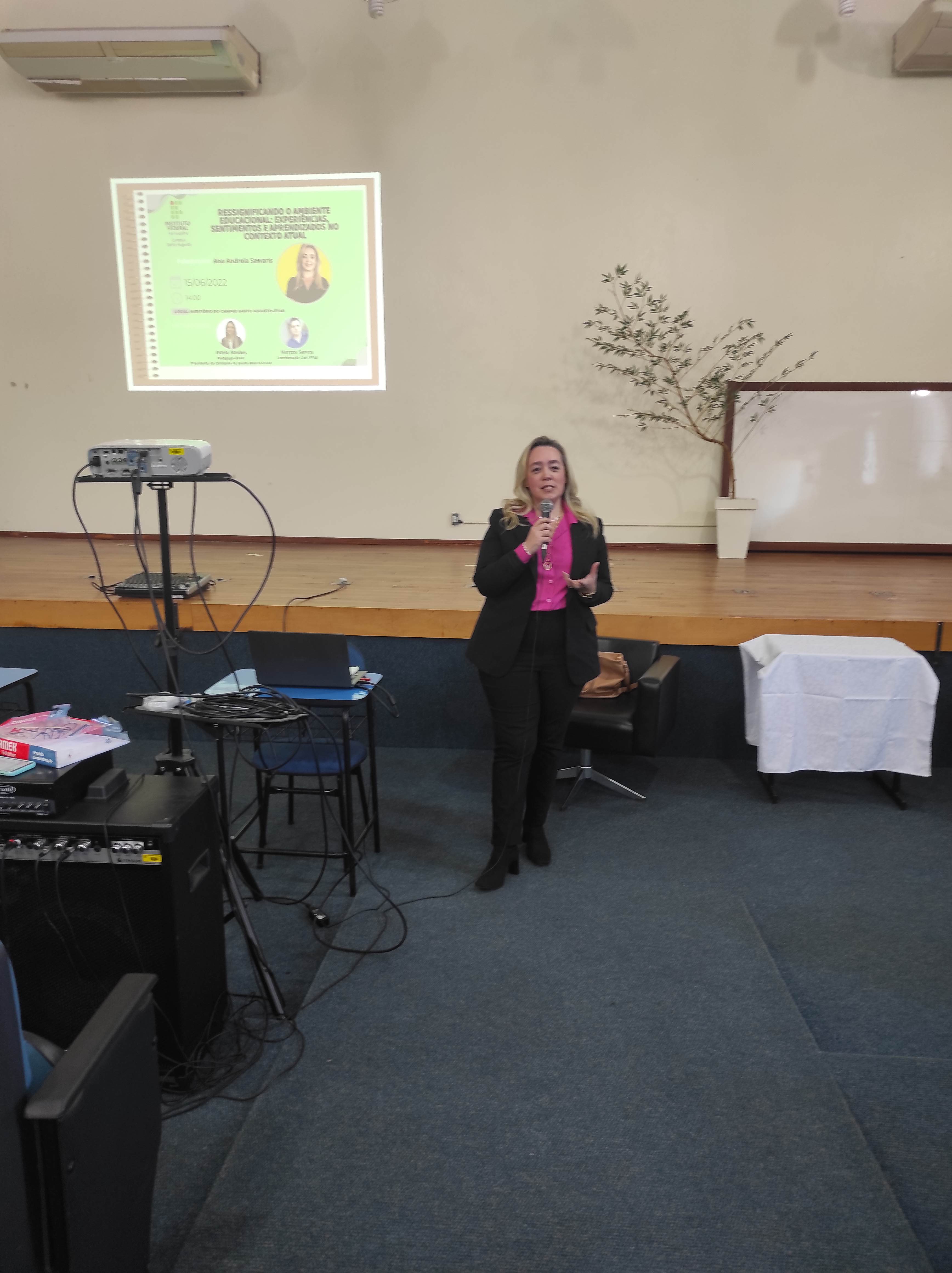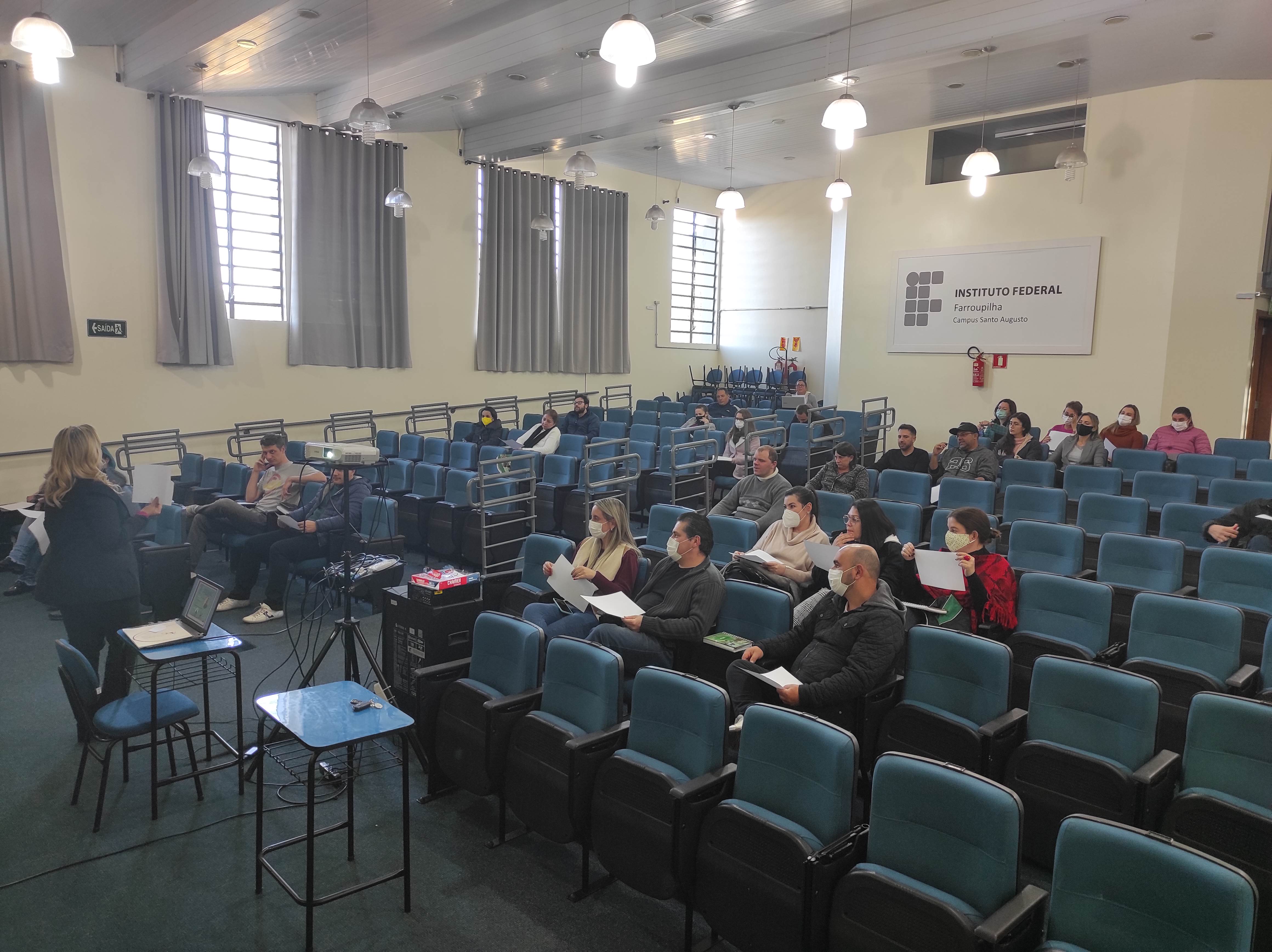 Na tarde desta quarta-feira, 15 de junho, o IFFar – Campus Santo Augusto retomou as atividades presenciais da Formação Continuada dos servidores, com a palestra “Ressignificando o ambiente educacional: experiências, sentimentos, e aprendizados no contexto atual”, ministrada pela psicóloga Ana Andréia Sawaris.