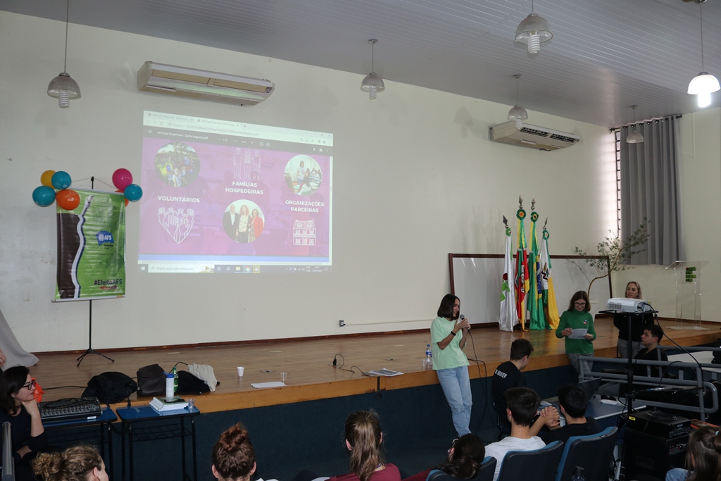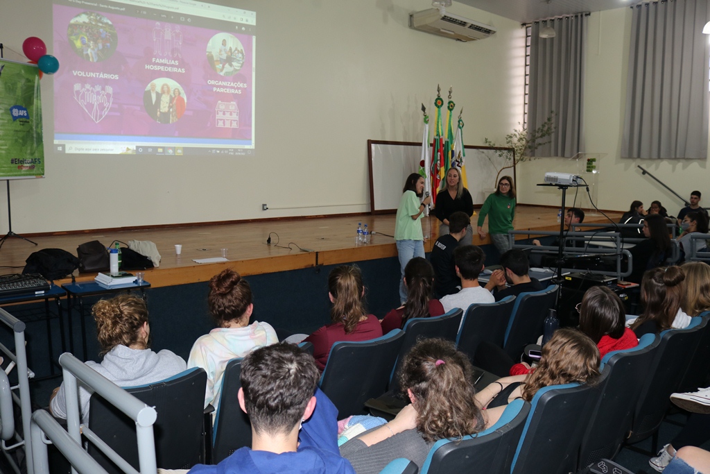 O evento foi organizado pela professora de Língua Inglesa, Tamara da Rosa, e faz parte do projeto de Ações de internacionalização do IFFar. Da AFS de Cruz Alta vieram Graciela Florian Robeti, Jocimara Bullê Muraro e Salete Regina Protti, as quais explicaram como funciona a entidade e os programas de intercâmbio existentes.