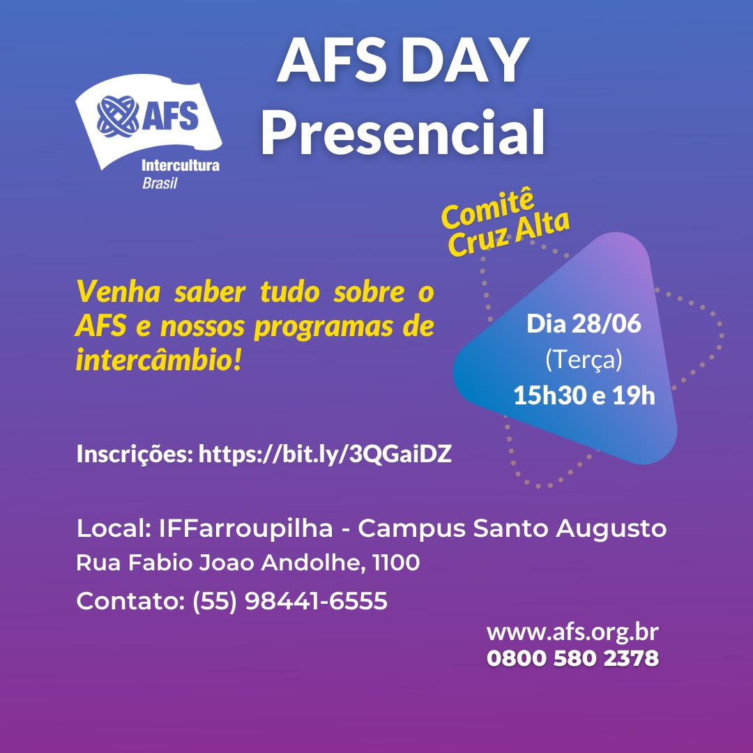 Para conhecer mais sobre a AFS Cultural acesse o site: https://www.afs.org.br/