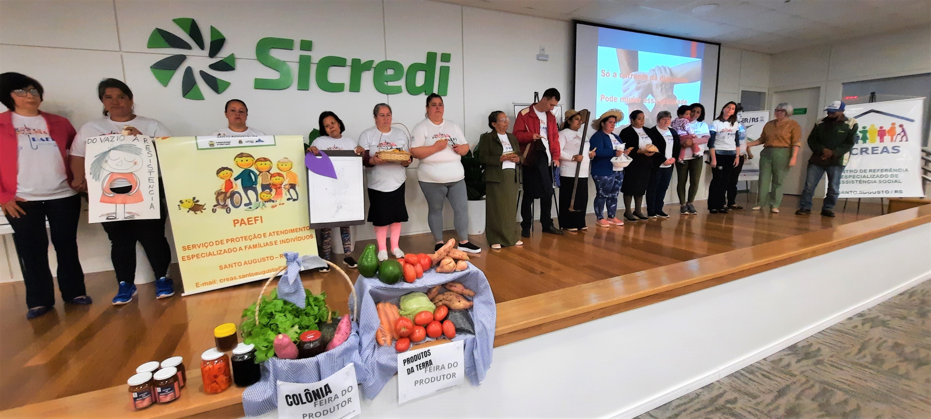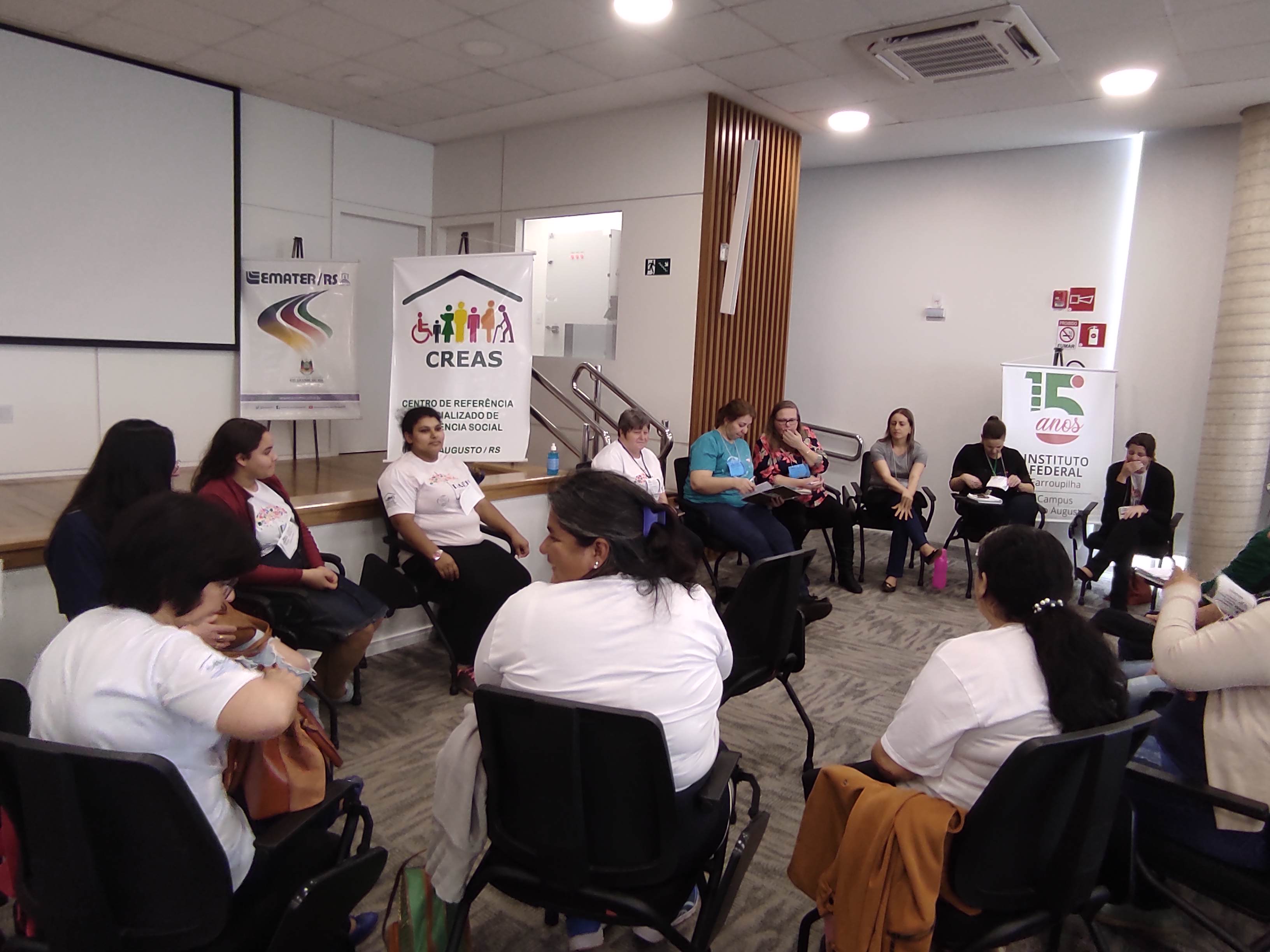 Pela manhã aconteceu um momento cultural representado por famílias referenciadas ao CREAS com a belíssima apresentação “A vida aos pedaços”. O tema abordado pela representante do CONSEA Estadual, Cleonice Back, tratou sobre o mapa atual da situação da fome no Brasil. Em seguida Isabel de Souza, assistente técnica da Regional de Ijuí da Emater, falou sobre “Produção de Alimentos de Auto Consumo na Agricultura familiar e sua valoração”.