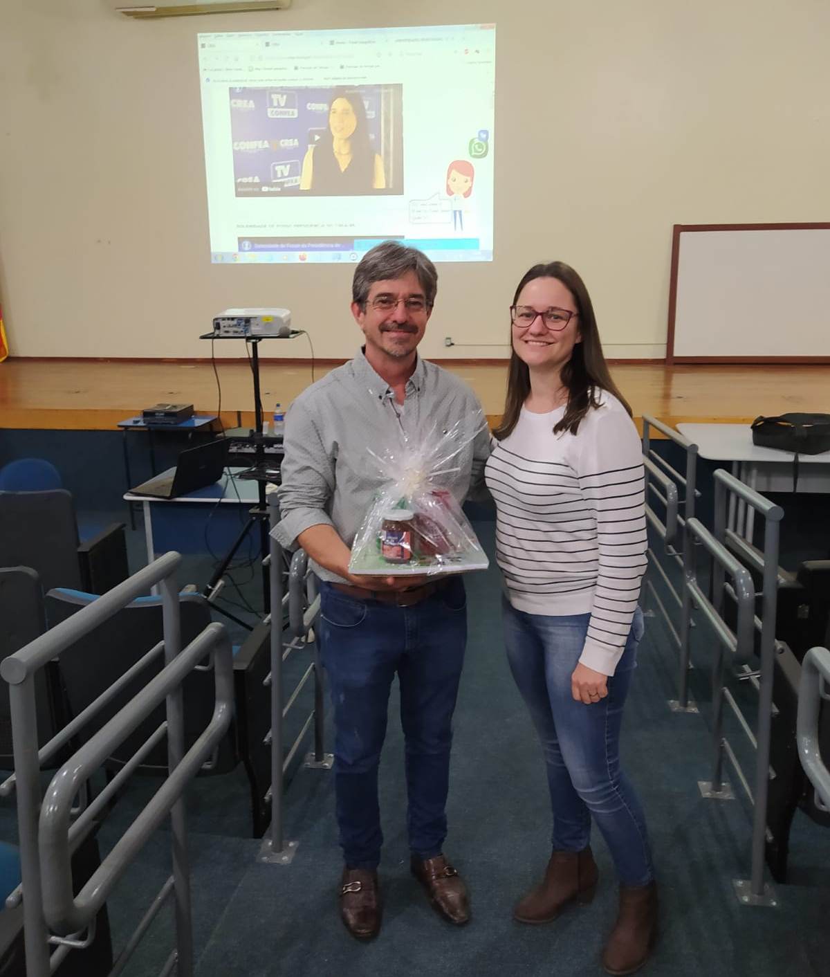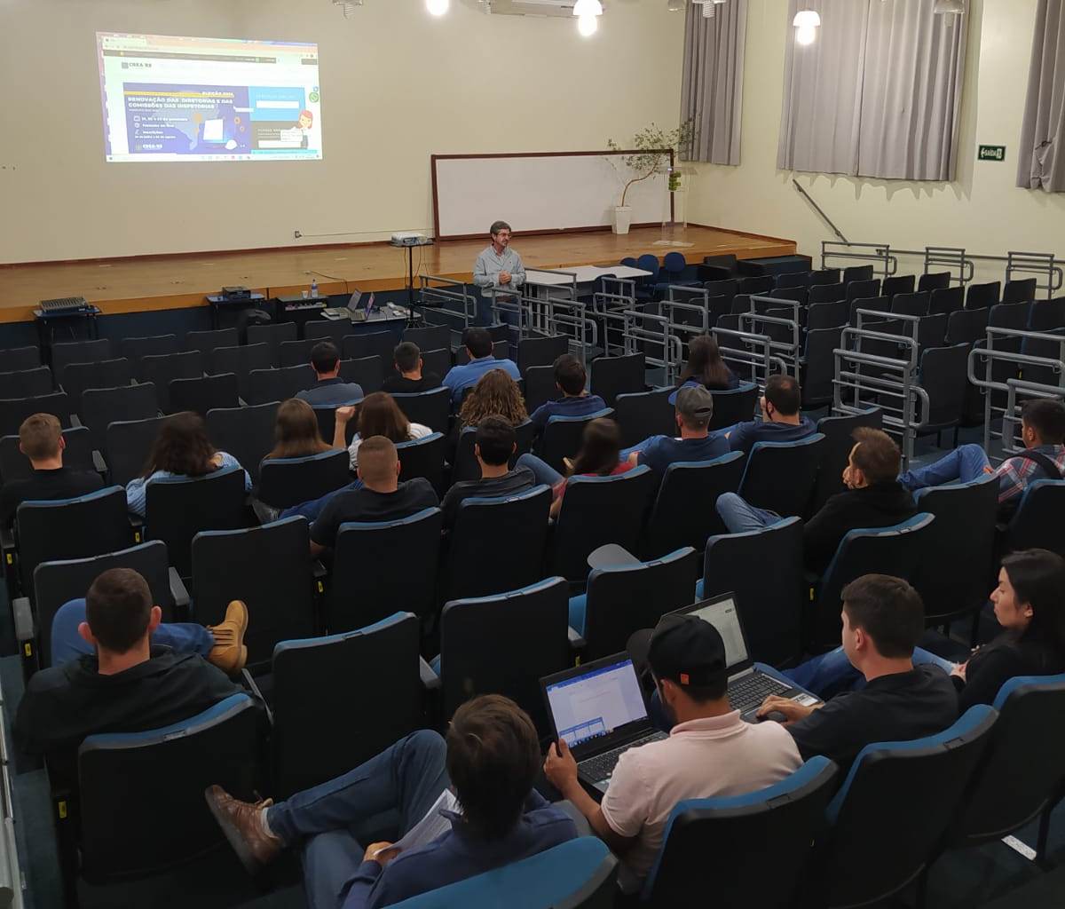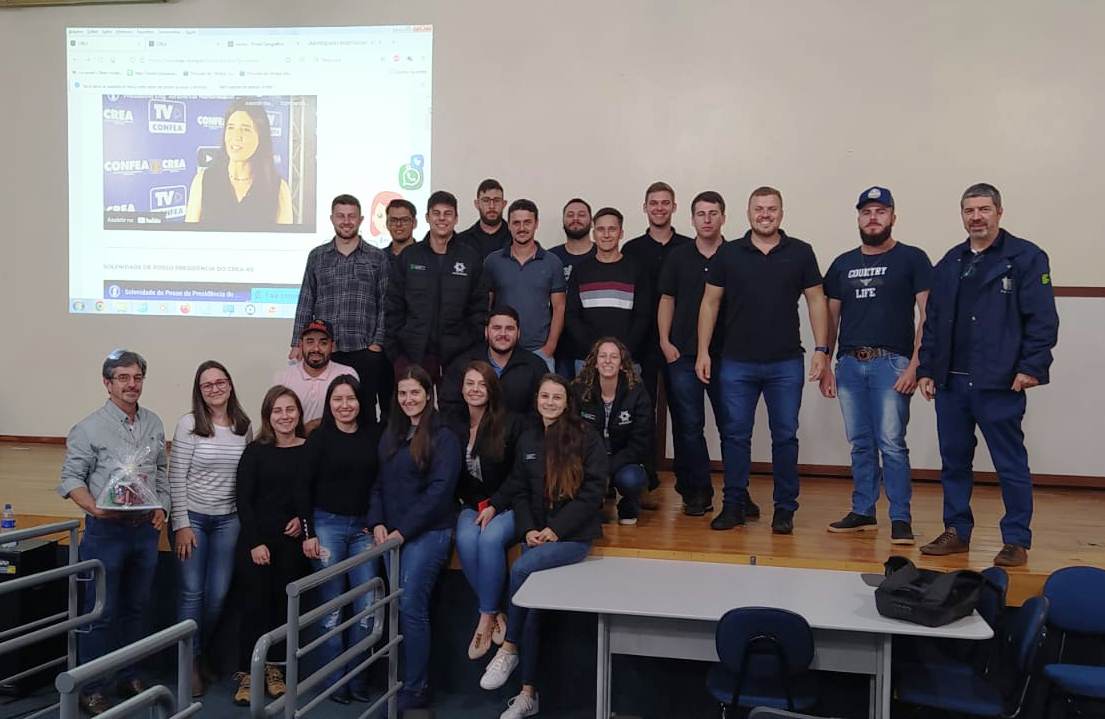 Após as apresentações, os estudantes participaram de palestra com o Engenheiro Agrônomo, César Alexandre Bourscheid, Presidente da Associação dos Profissionais de Engenharia da Região Celeiro - APERC, entidade de classe vinculada ao CREA-RS. Na ocasião César abordou assuntos sobre a APERC e o CREA-RS, bem como a importância do registro profissional, além dos cuidados éticos para a atuação na área.