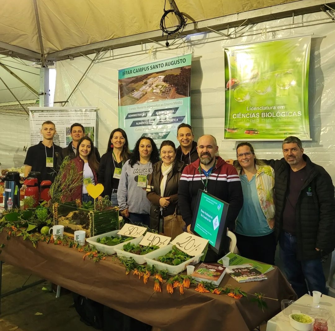 Um grupo de estudantes e docentes do IFFar - Campus Santo Augusto estiveram representando a instituição no último sábado, dia 16, na 28ª Feira Internacional do Cooperativismo e da Economia Solidária – FEICOOP, realizada no Centro de Referência de Economia Solidária Dom Ivo Lorscheiter, em Santa Maria.