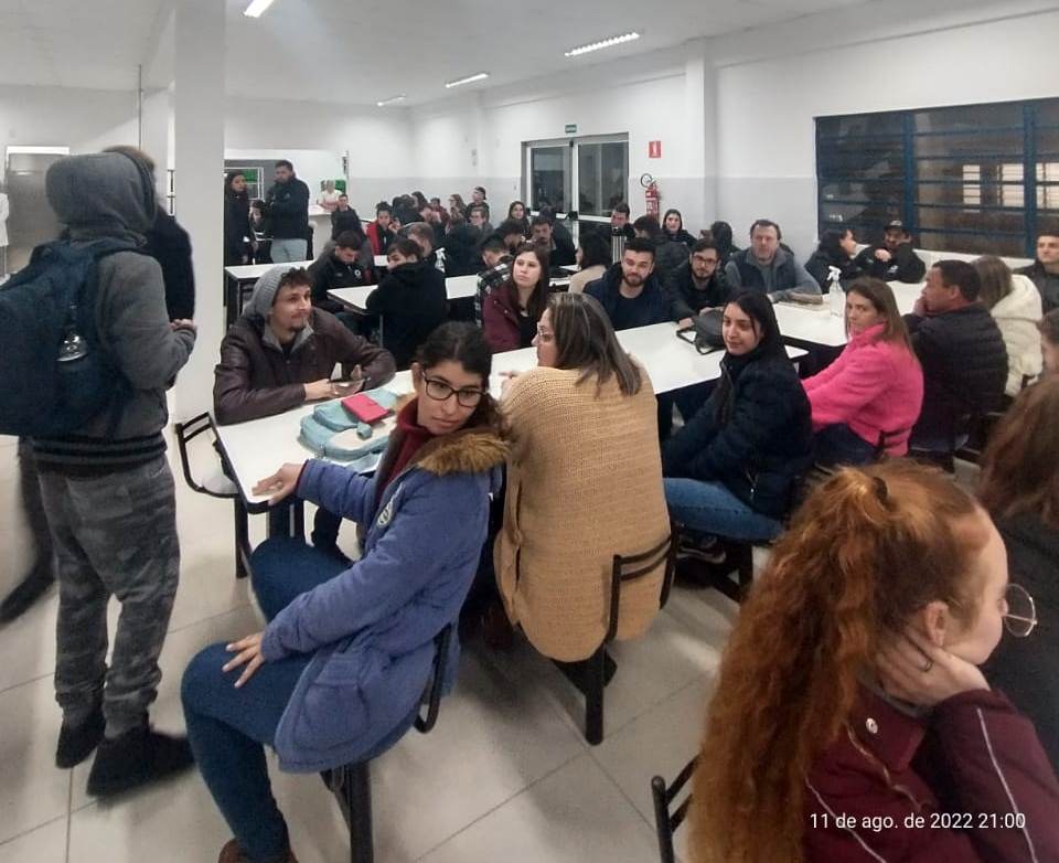 No turno da noite os estudantes dos cursos superiores foram liberados às 20h40 para participarem de um jantar de confraternização no refeitório.