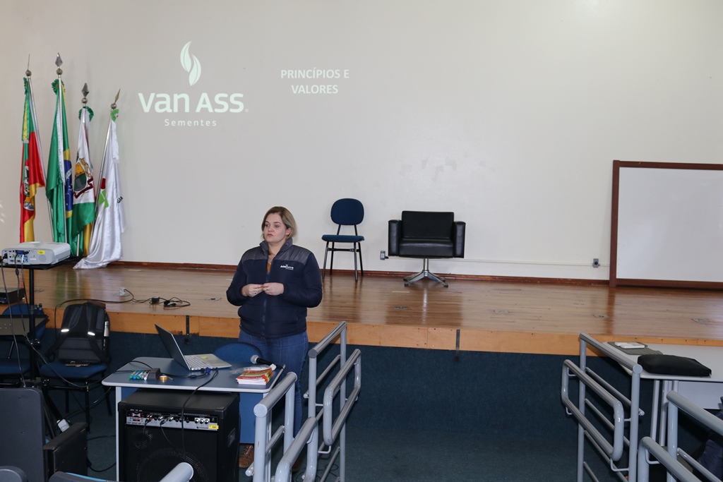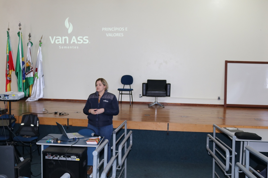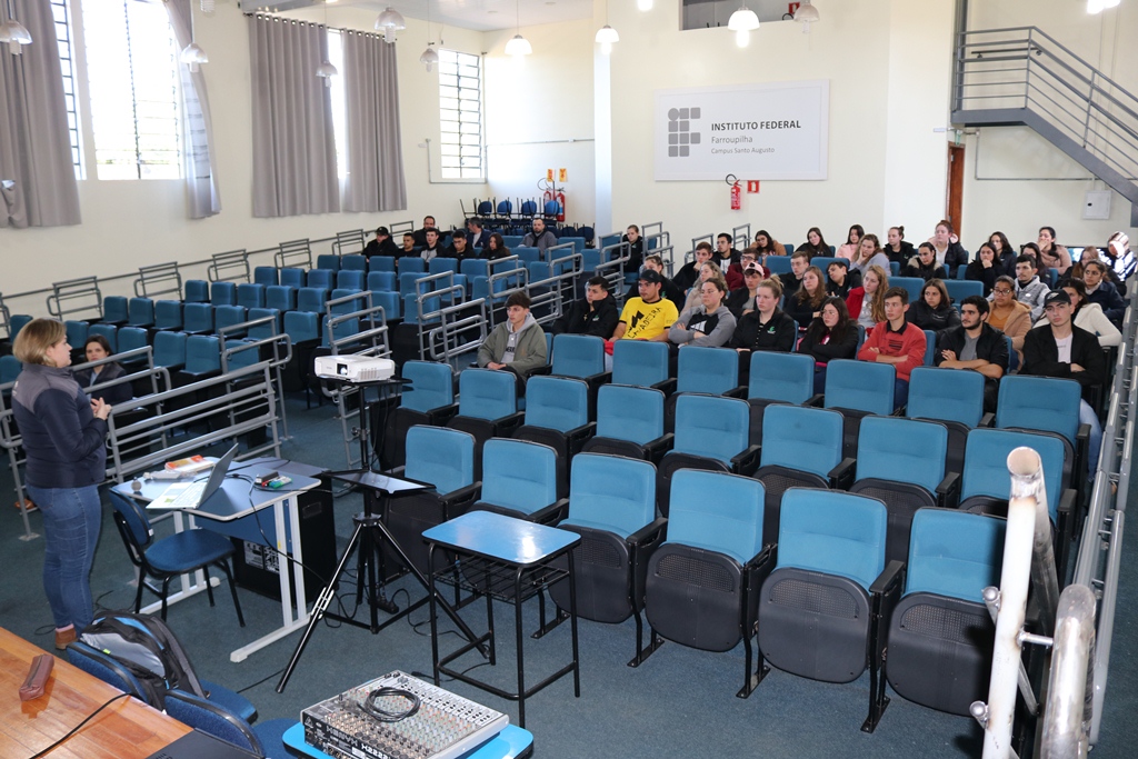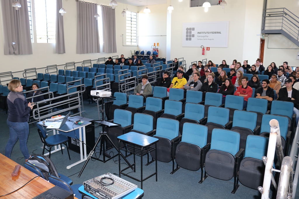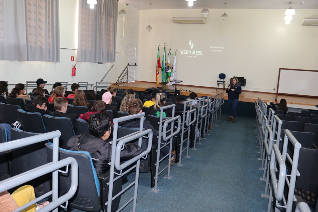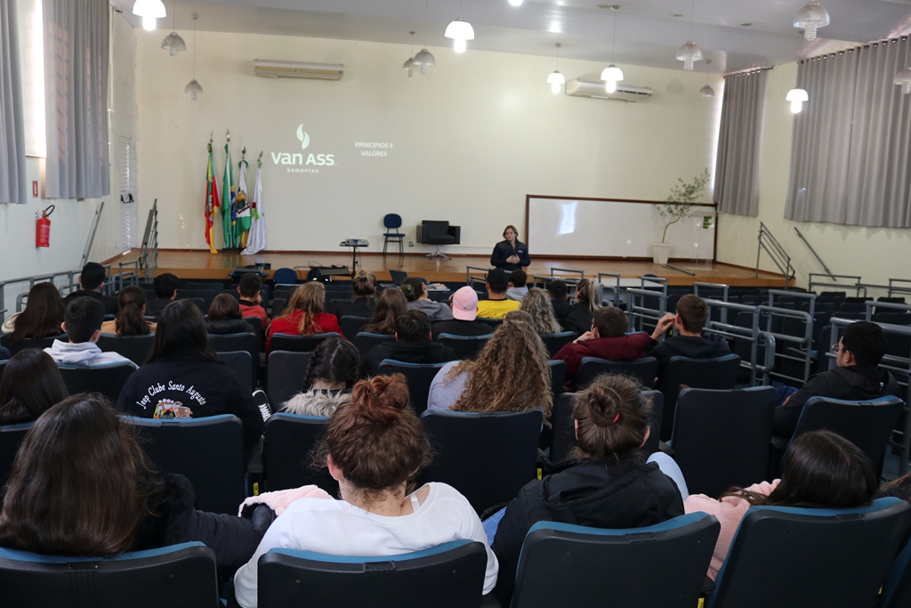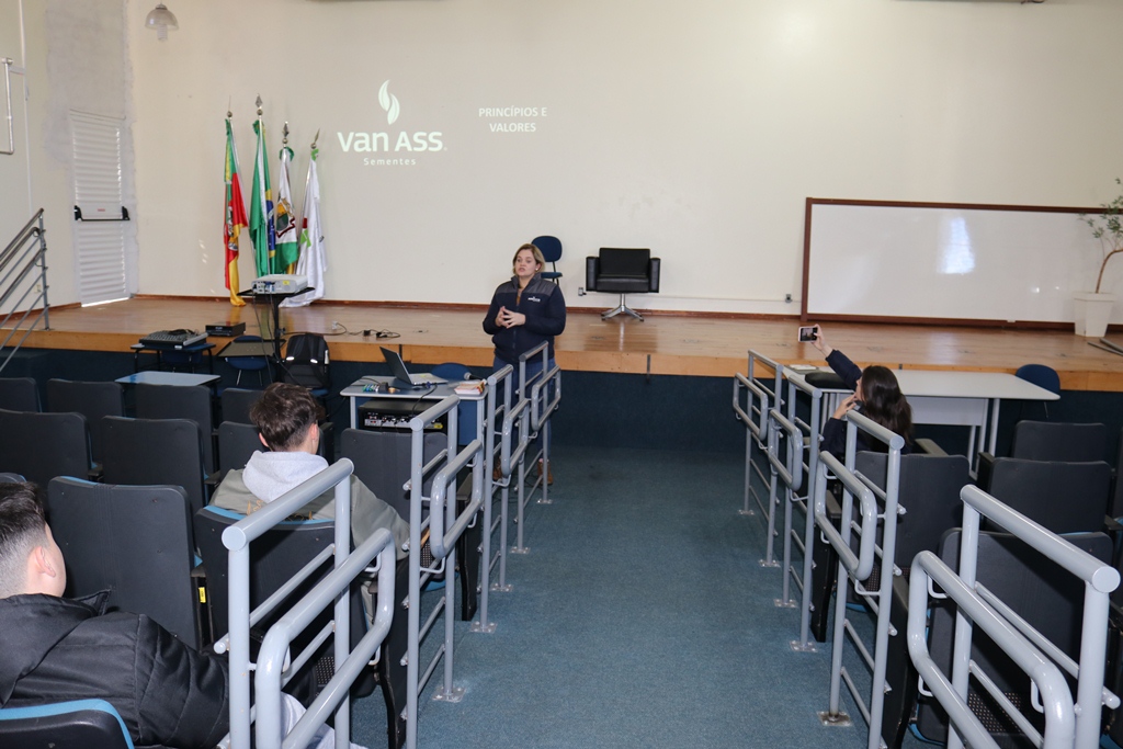 Na tarde de quinta-feira, 11 de agosto, os estudantes do 2º e 3º ano do curso técnico em Agropecuária integrado ao ensino médio do IFFar – Campus Santo Augusto assistiram uma palestra com a Coordenadora de Recursos Humanos da Sementes Vanass, Fabiane Trentini e com a Assistente de RH, Shaiana Harter, as quais vieram falar sobre a empresa e as oportunidades de estágio.