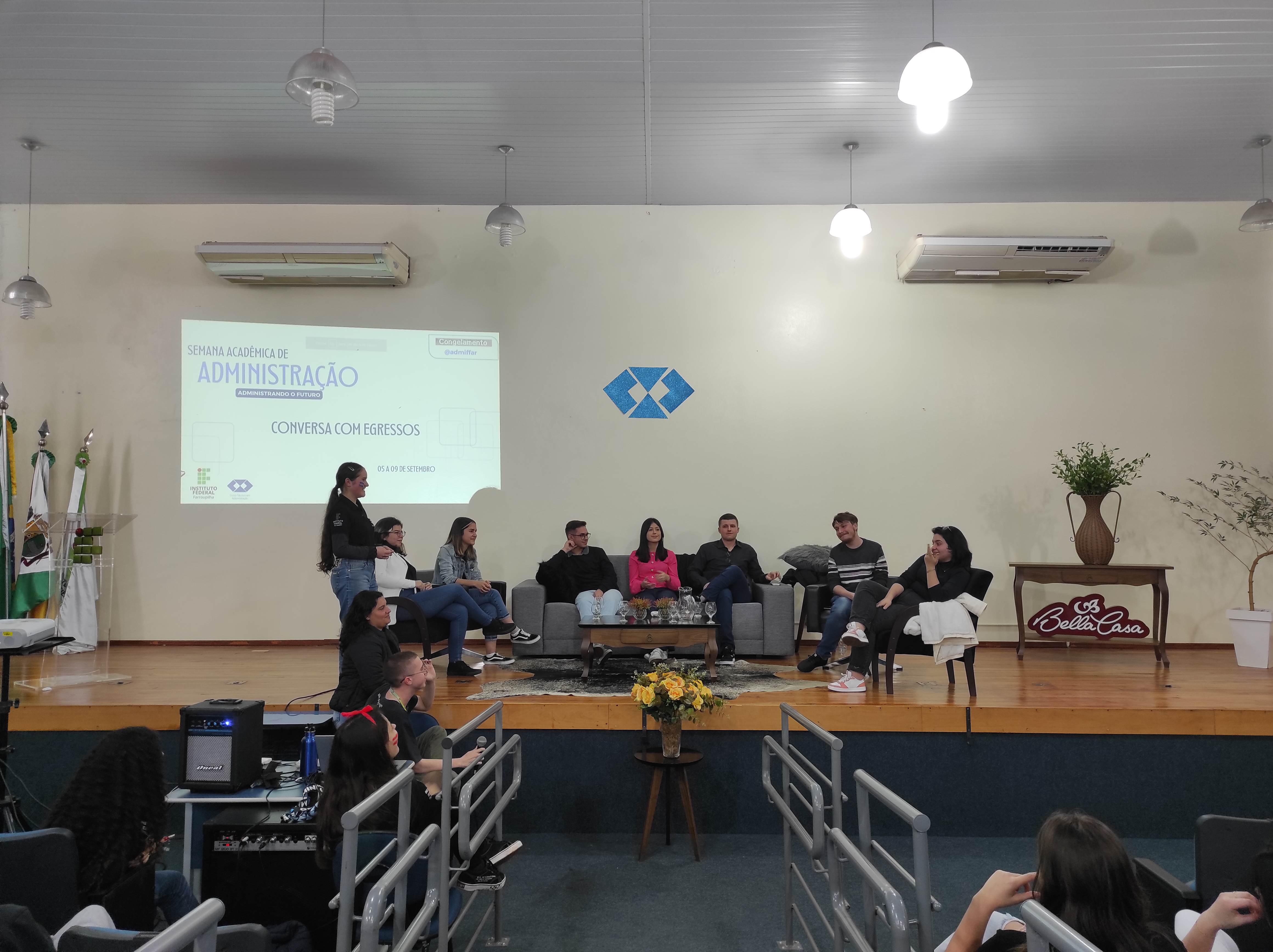 Nos dias 05, 06, 08 e 09 de setembro aconteceu a Semana Acadêmica do curso Técnico em Administração do IFFar - Campus Santo Augusto. O evento teve sua abertura na tarde de segunda-feira, dia 05, no auditório da instituição, com a palestra ministrada pela psicóloga, Ana Paula Savagnago, com o tema "Rotina de Estudos e Ansiedade".