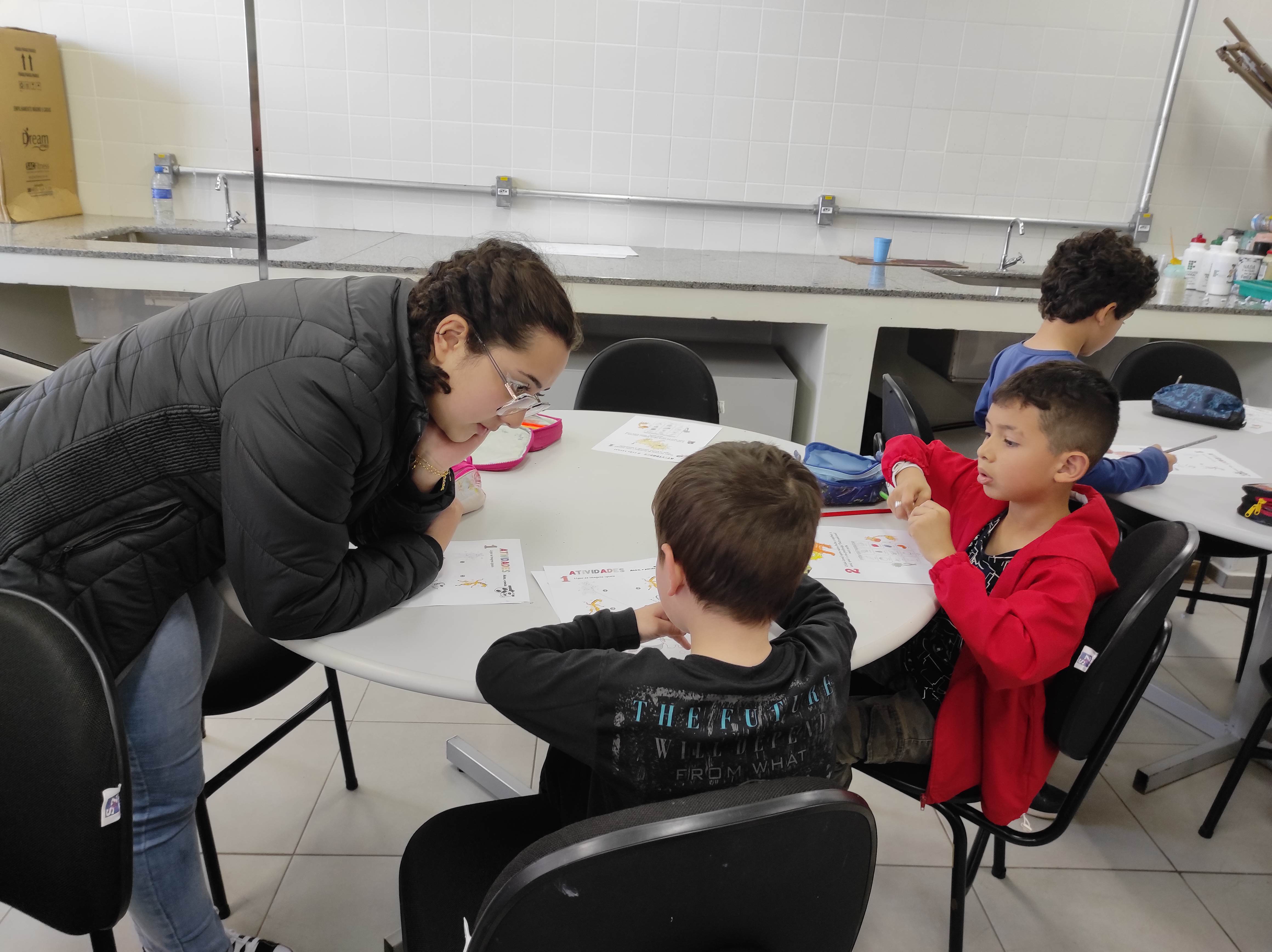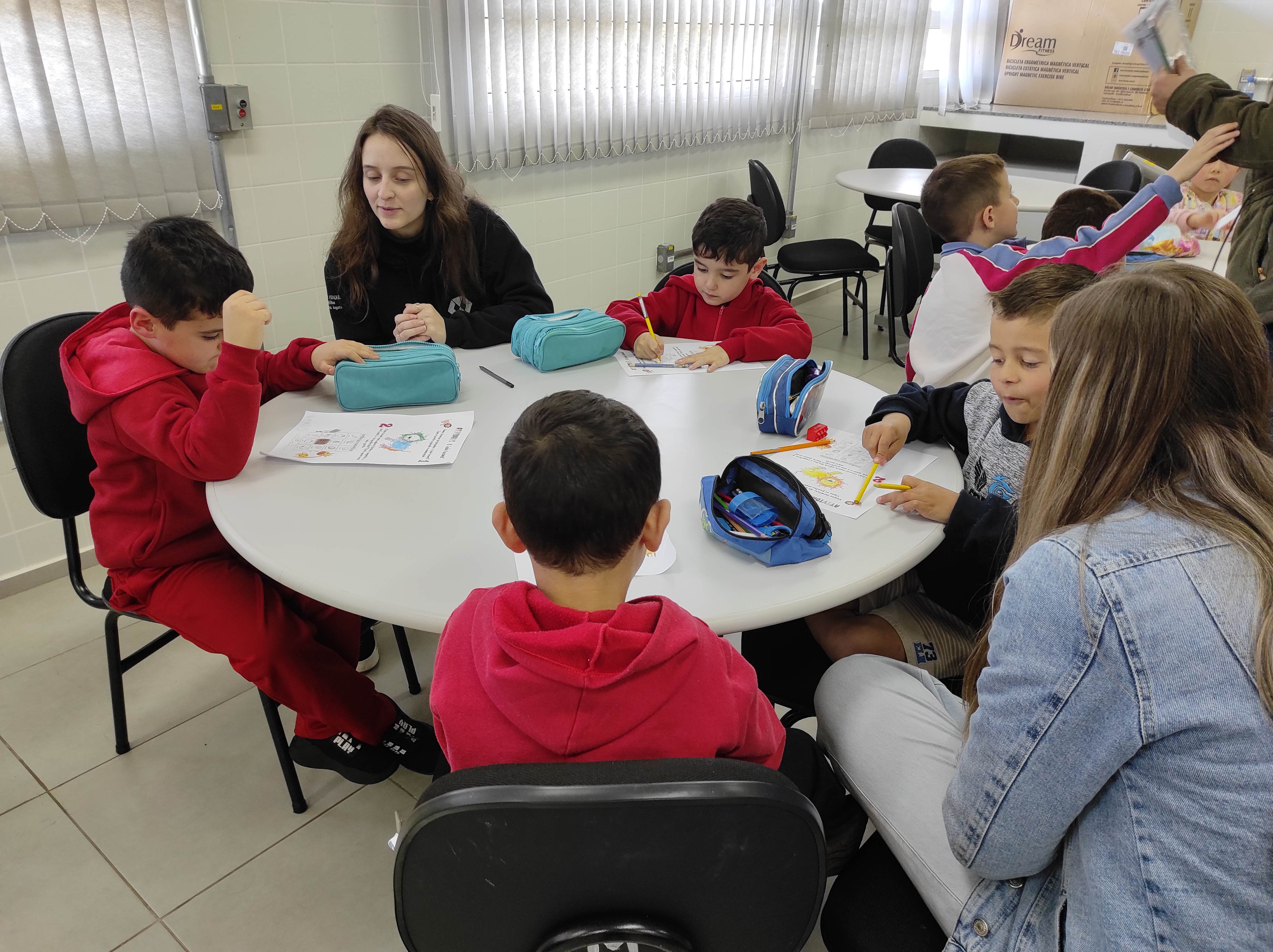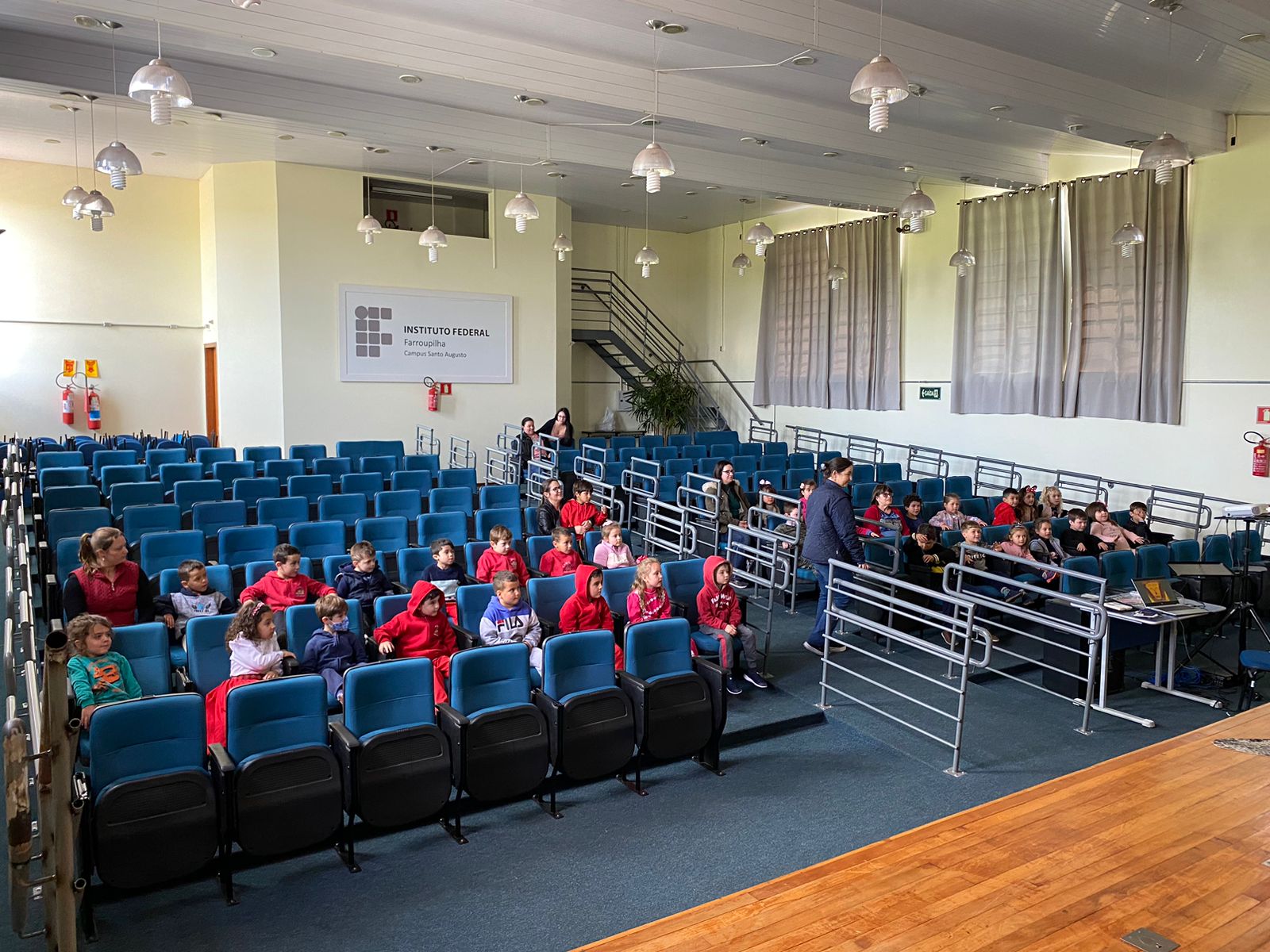 As crianças foram recebidas no auditório da instituição pelo coordenador do projeto no campus, professor Edevandro Sabino da Silva e pelas bolsistas, Allana Gehm, Eduarda Stroeher Schons, Júlia Luisa Morgesntern, Luana Benites, Maria Eduarda Trindade e Sabrina Caetano.
