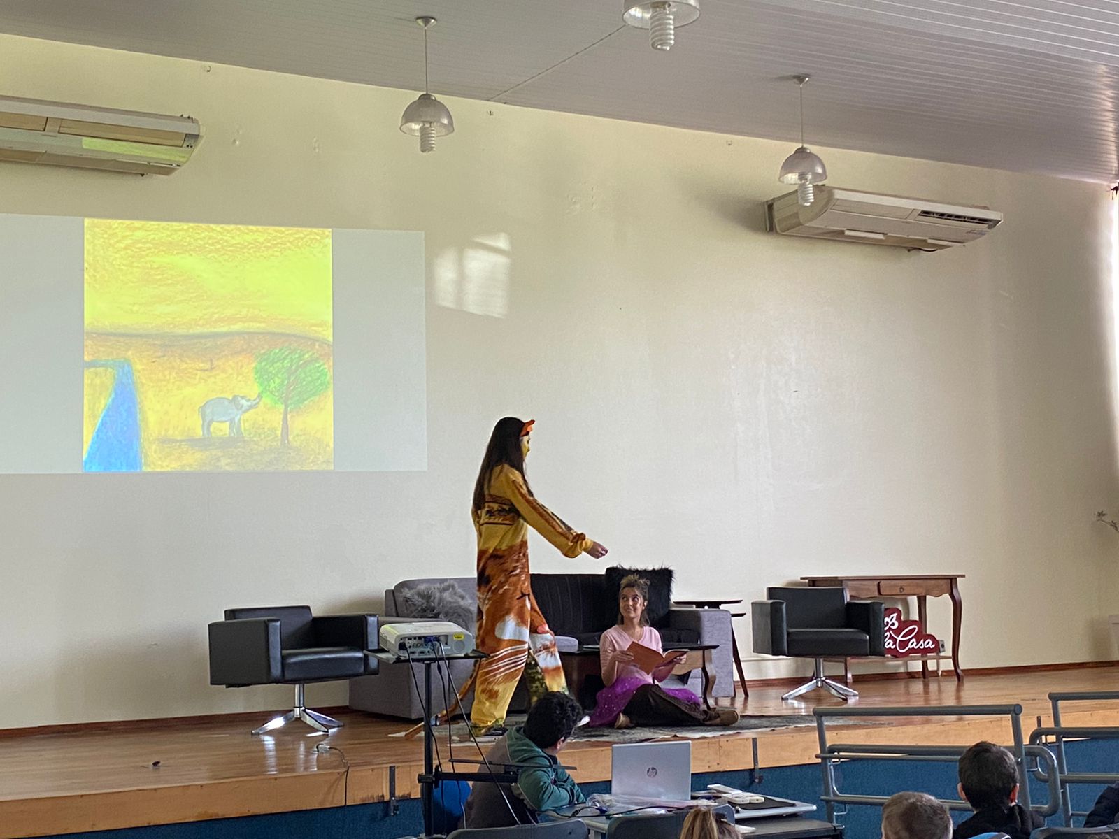 Na ocasião, foram contadas pelas bolsistas três histórias produzidas pelos estudantes participantes do projeto em anos anteriores e se tornaram livros: Leão Leonel, Chica a Galinha Caipira e Akira o Panda. Após a contação, quatro exemplares dos livros foram entregues para a escola. Na sequência, os pequenos visitantes foram convidados para realizar atividades pedagógicas na sala multifuncional do prédio I e depois puderam conhecer o campus.