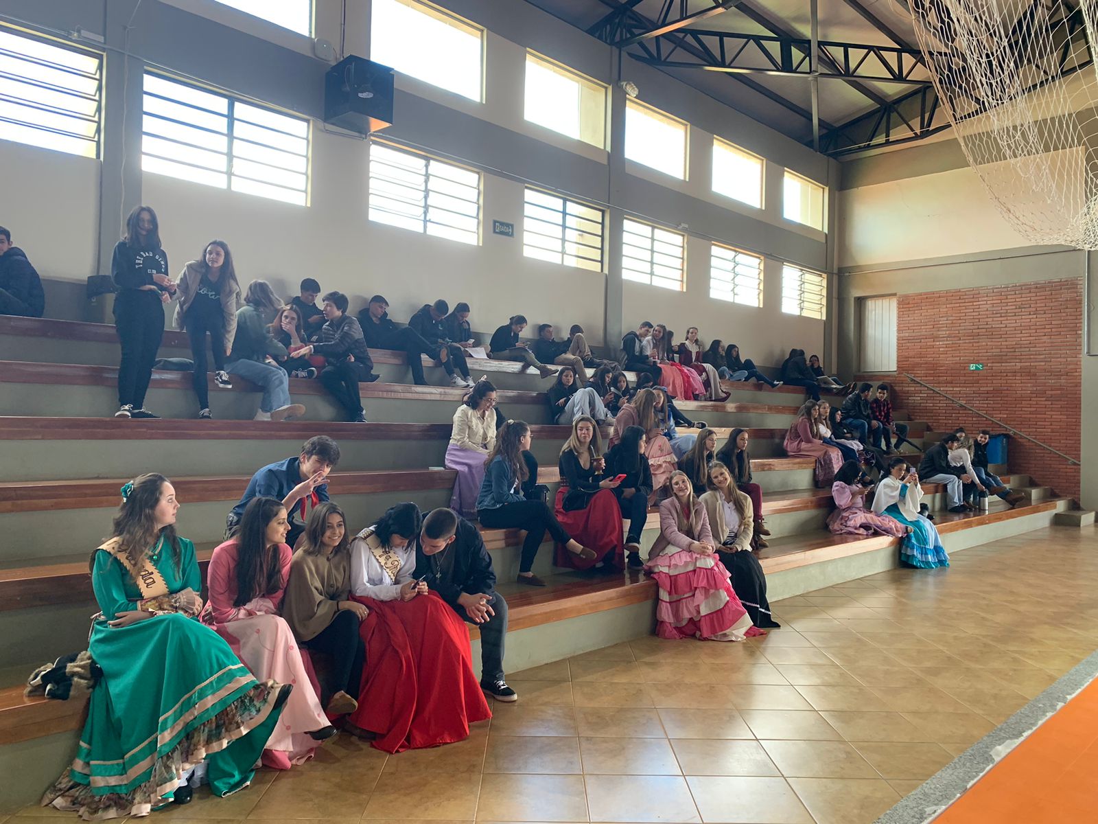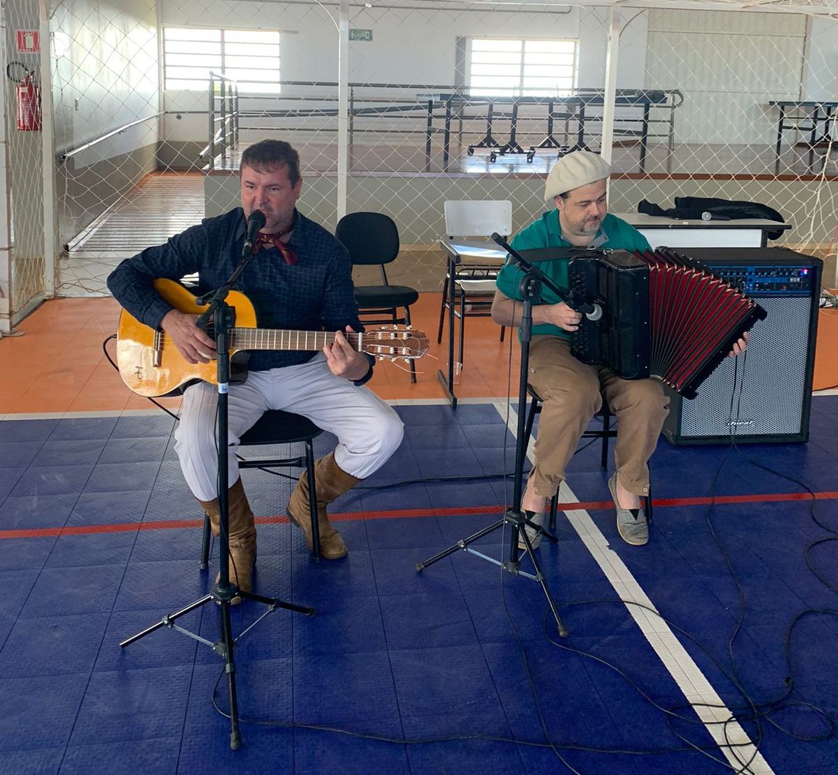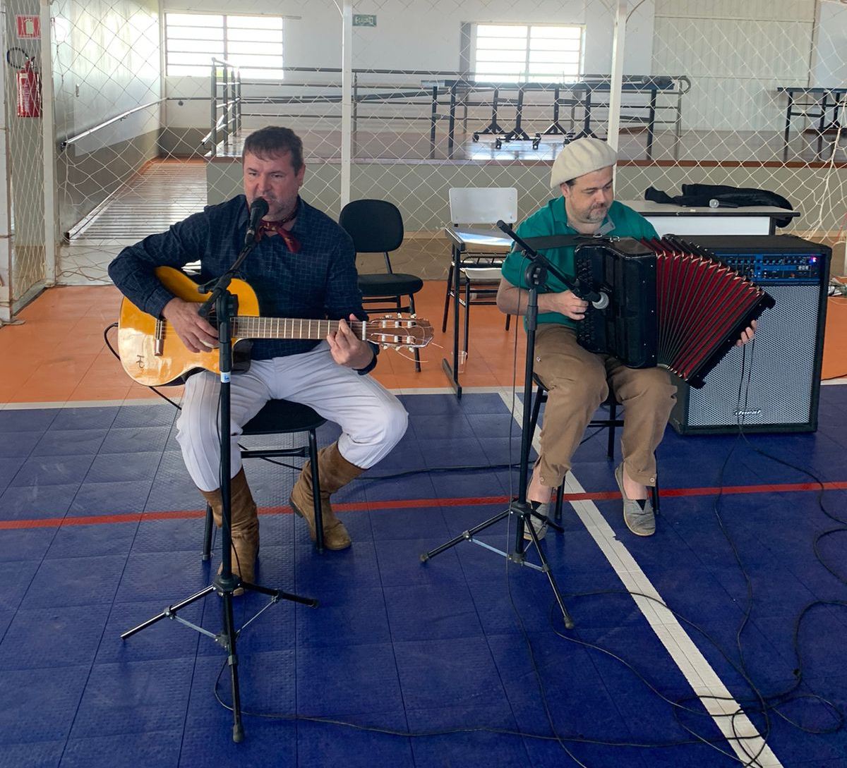 Na ocasião, os estudantes aproveitaram para tomar chimarrão e assistir as apresentações artísticas da Invernada Juvenil do CTG Pompílio Silva de Santo Augusto e dos músicos Tchê Tuco e Roger Cáceres.