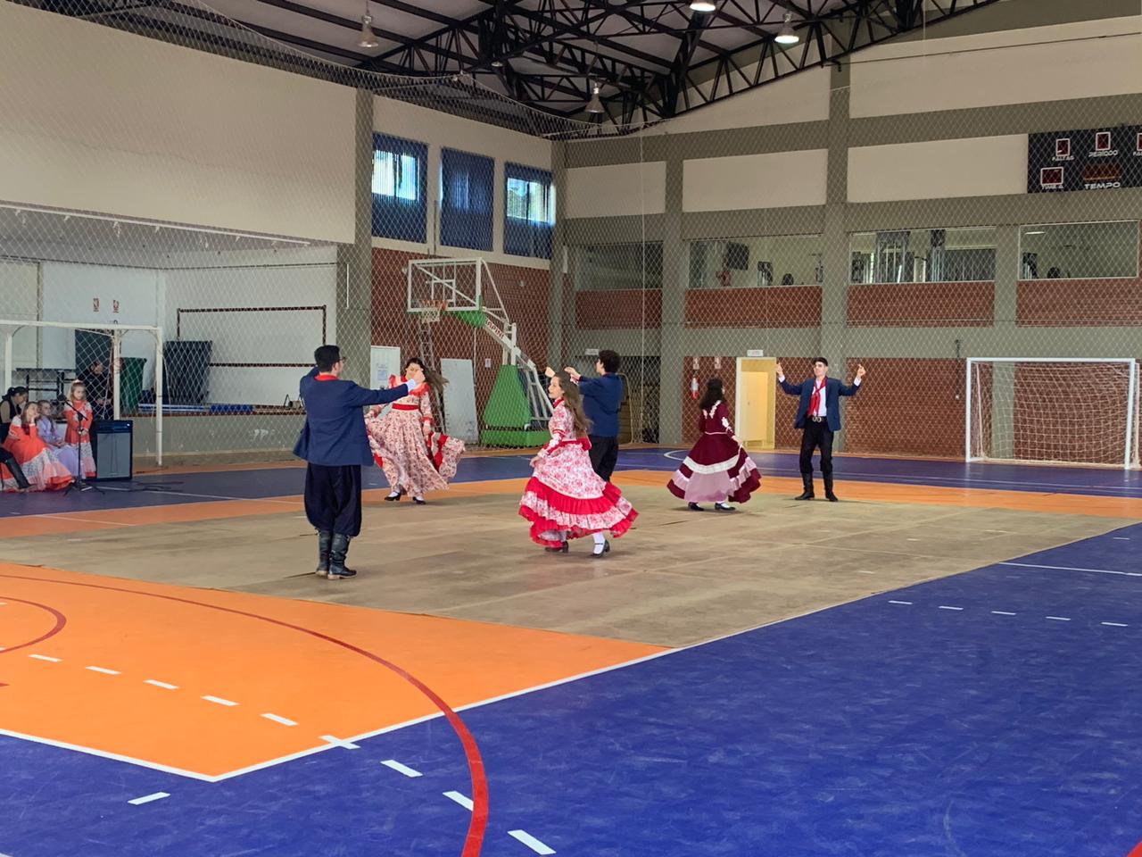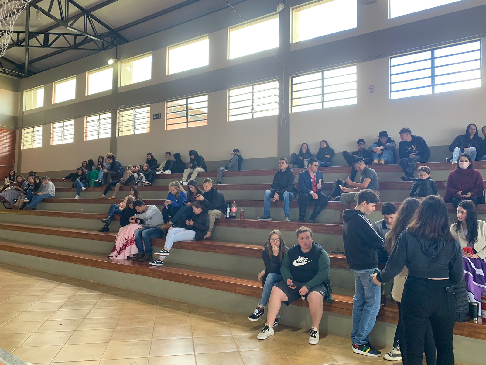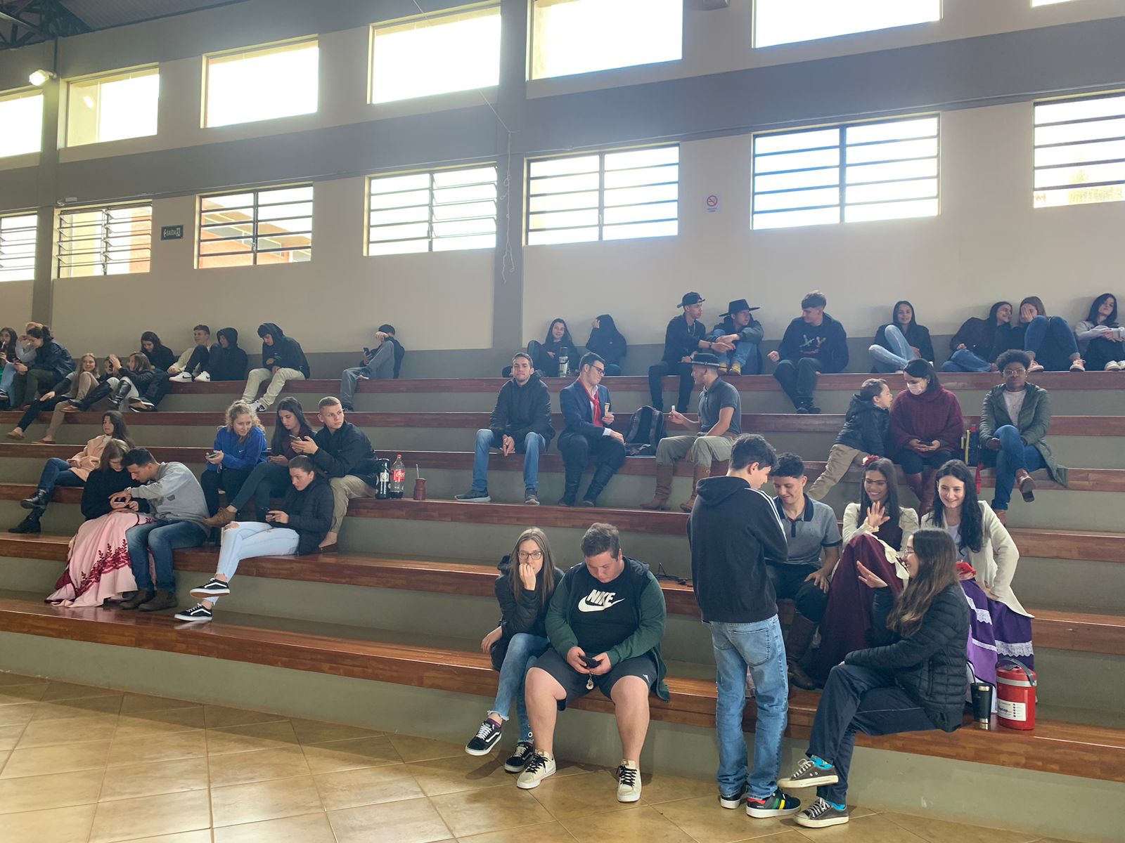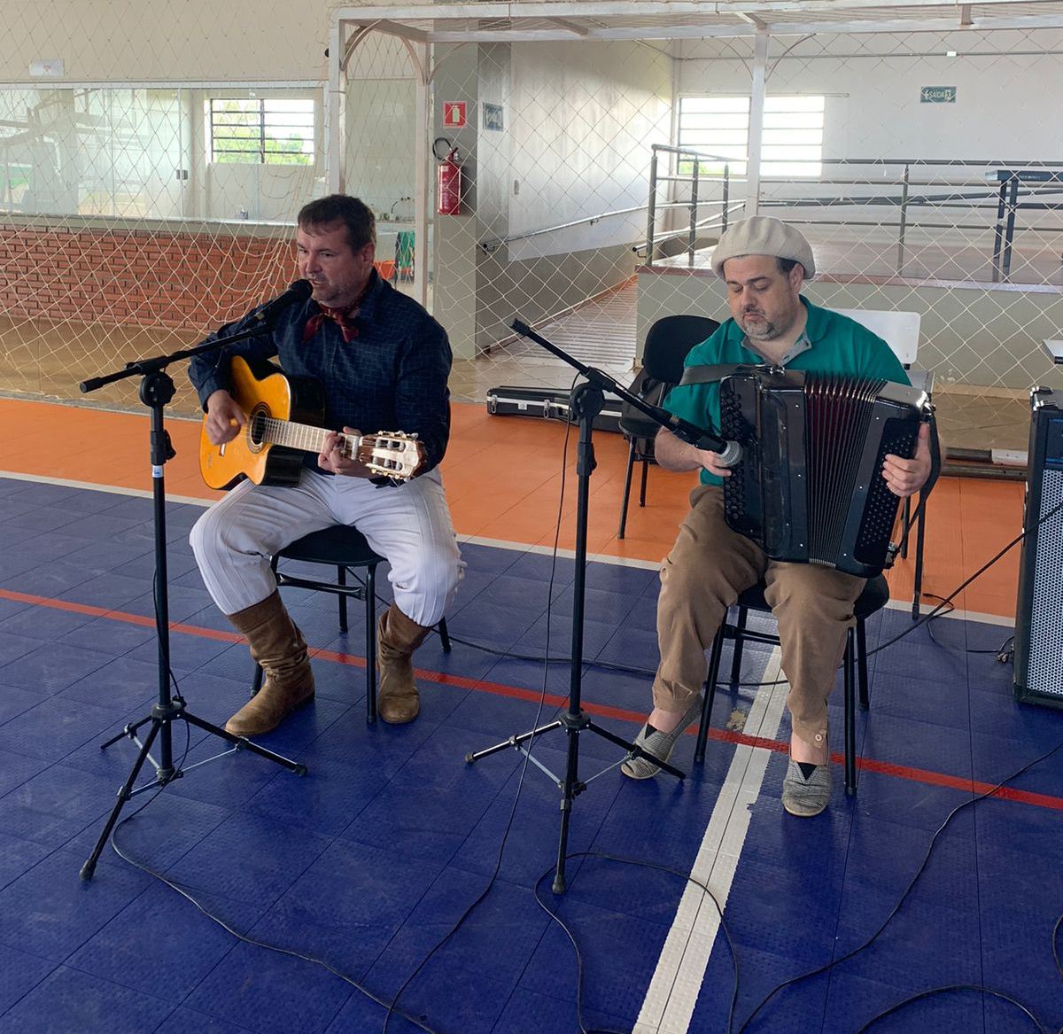 Na ocasião, os estudantes aproveitaram para tomar chimarrão e assistir as apresentações artísticas da Invernada Juvenil do CTG Pompílio Silva de Santo Augusto e dos músicos Tchê Tuco e Roger Cáceres.