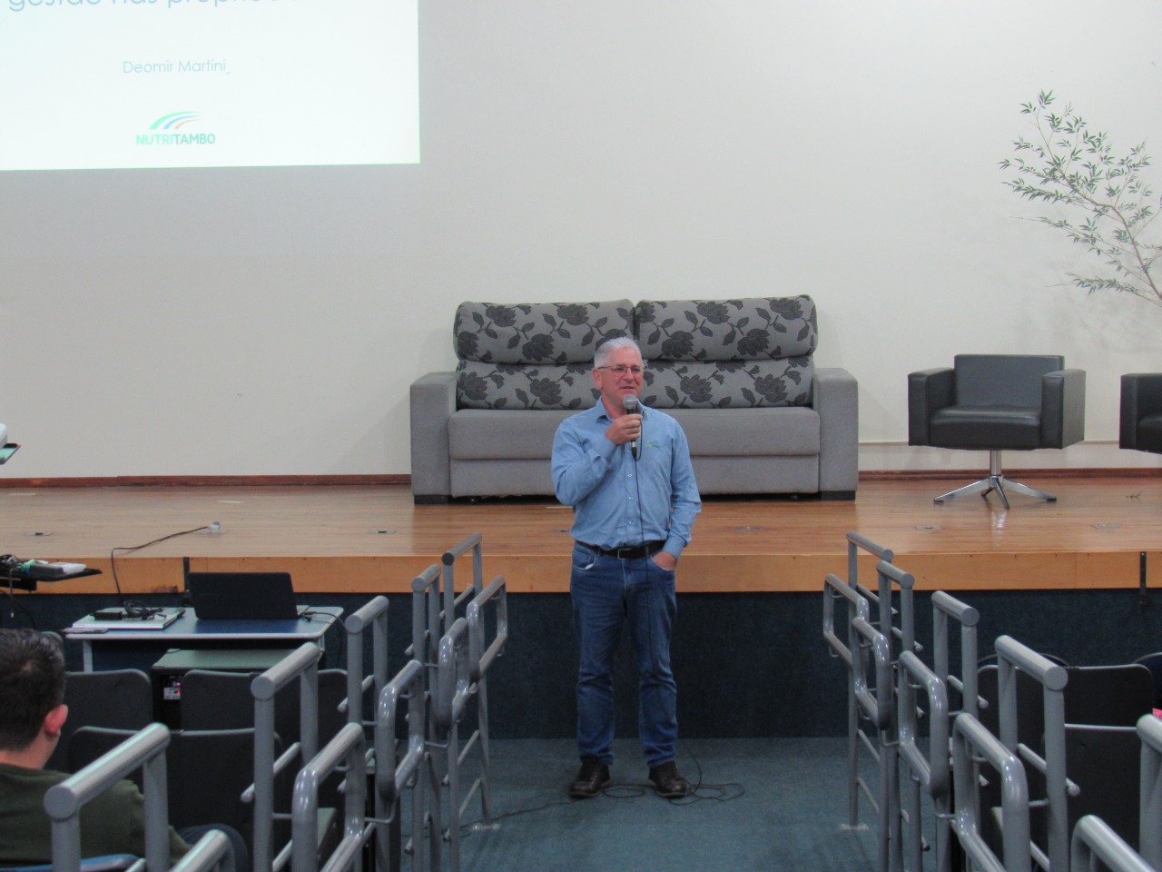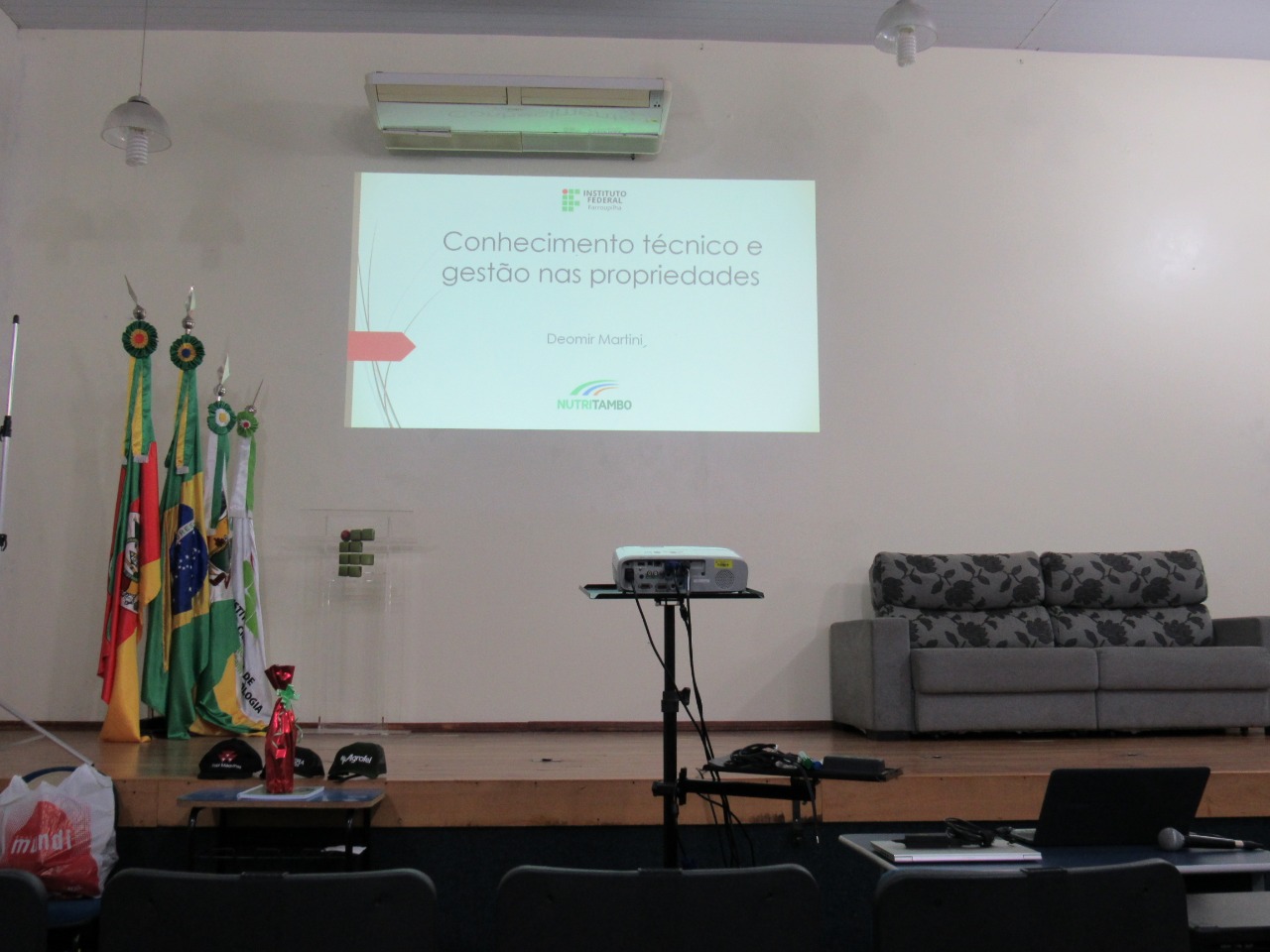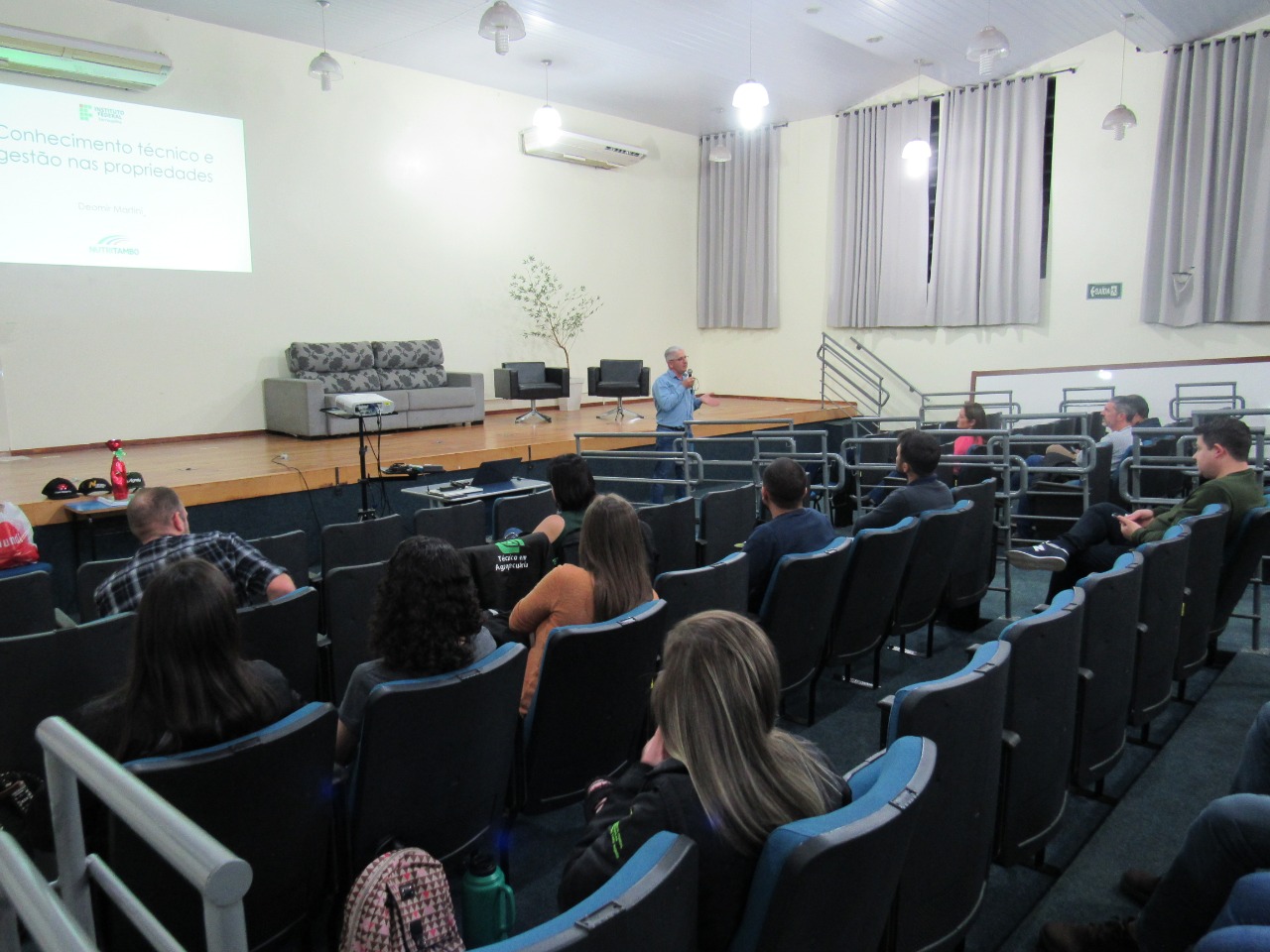 O evento teve a abertura na segunda-feira, dia 03, às 19h30, com uma fala da Diretora Geral substituta, Téoura Benetti, e do Coordenador do Curso, professor Dr. Cristiano Nunes dos Santos, seguida pela palestra “Conhecimento Técnico e Gestão nas Propriedades”, ministrada por Deomir Martini, da empresa Nutritambo de Constantina/RS.