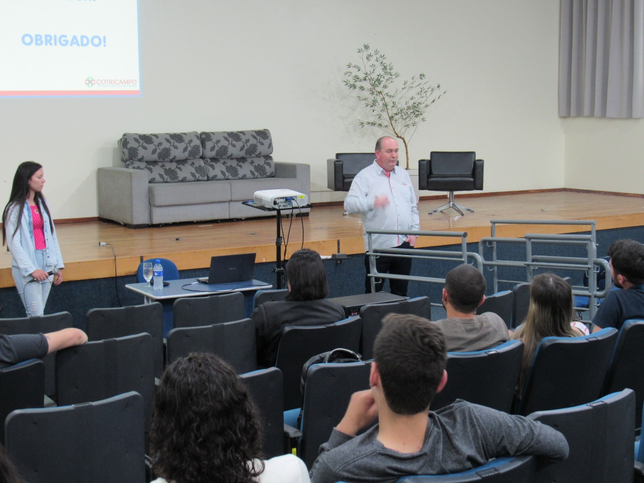 Na terça-feira, dia 04, às 19h30, a professora Simone Nunes, conversou com os acadêmicos, sobre “Marketing Pessoal”. Na quarta-feira, dia 05, o Presidente da Cotricampo, Gelson Bridi, falou sobre “Cooperativismo”.