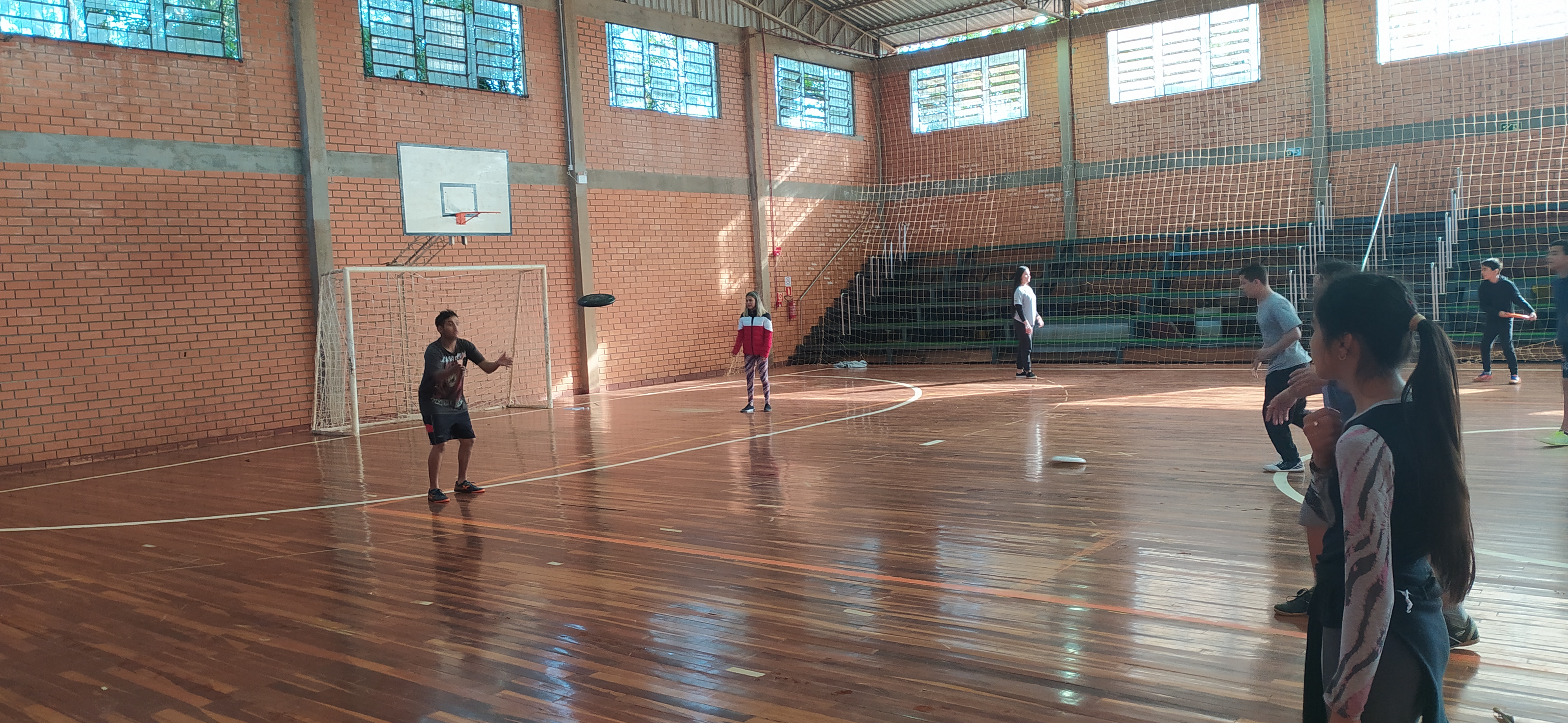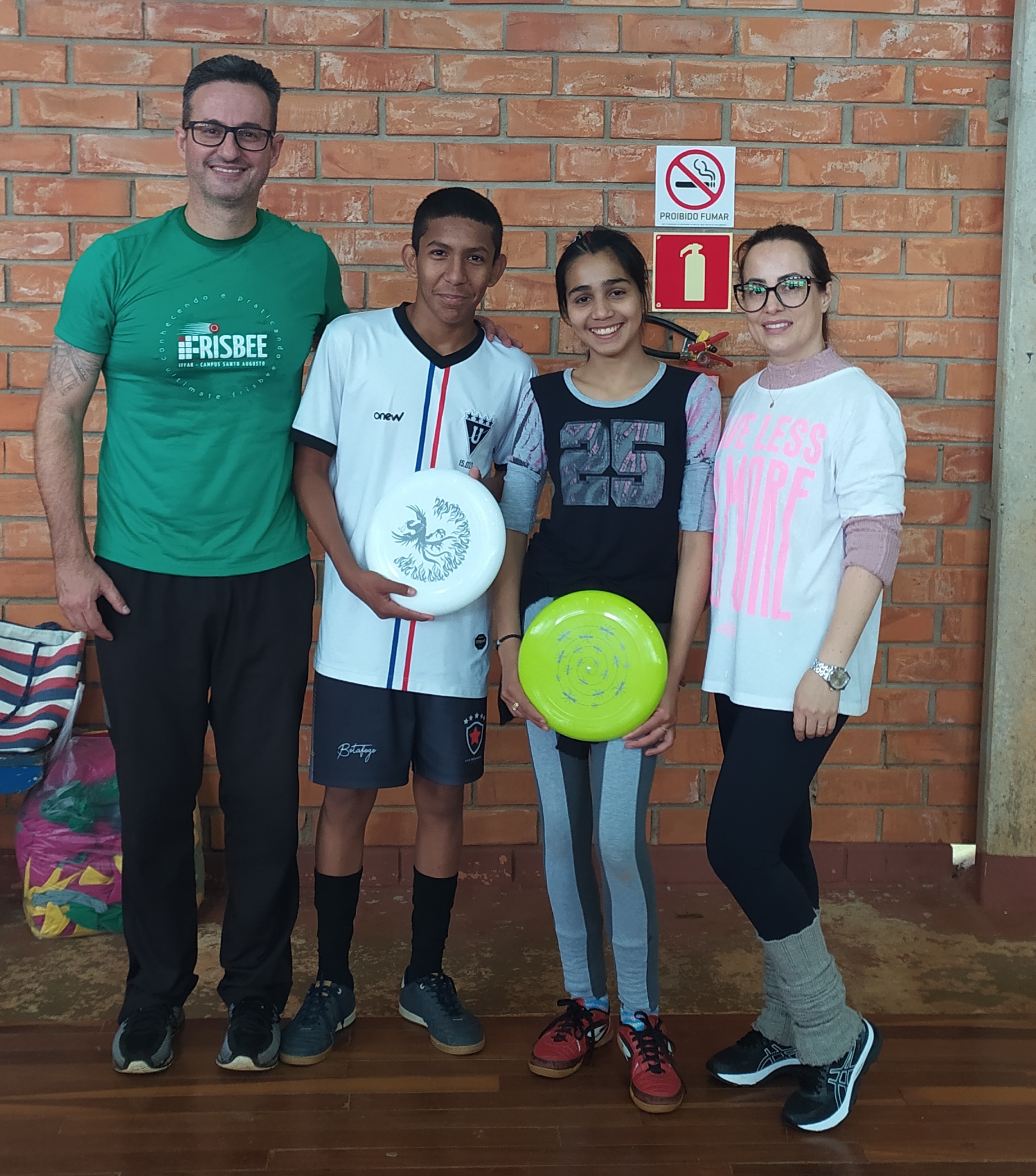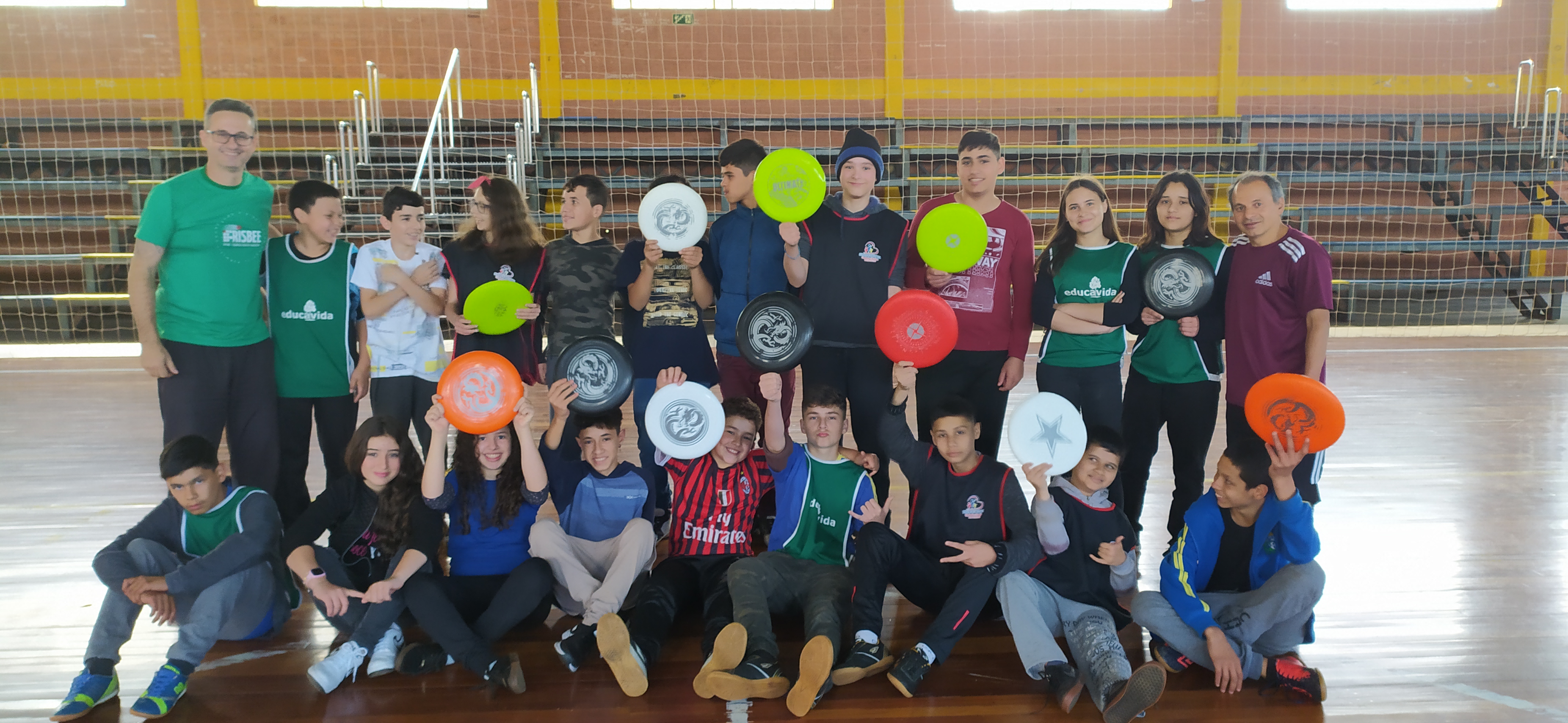 O professor de Educação Física do IFFar – Campus Santo Augusto, Luciano de Almeida, está desenvolvendo o projeto de extensão “IFRISBEE: conhecendo e praticando o Ultimate Frisbee na escola”, com o objetivo de divulgar, conhecer e estimular a prática do Ultimate Frisbee (UF) nas escolas de Santo Augusto, visando a ampliação do acervo cultural dos estudantes em torno das práticas esportivas e o desenvolvimento do espírito de jogo nas mesmas.