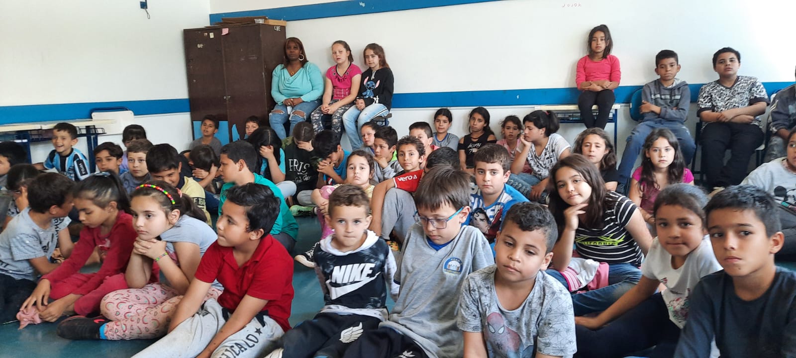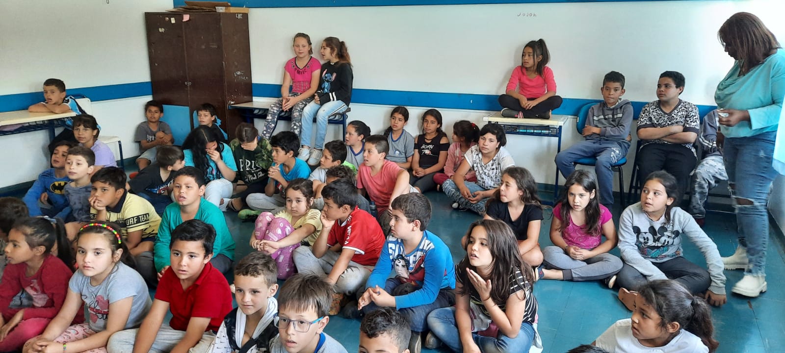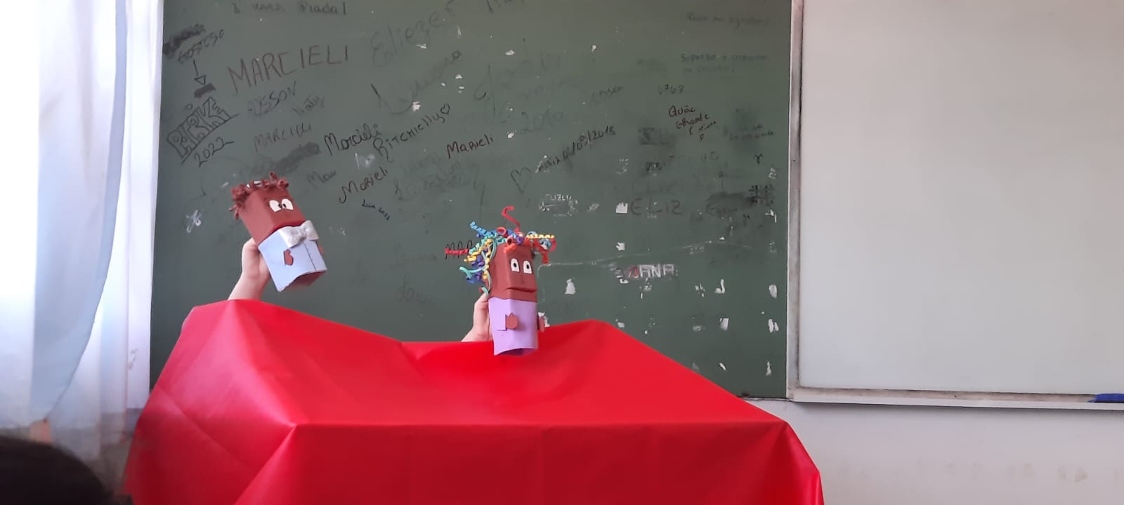 Os acadêmicos de Licenciatura em Ciências Biológicas do IFFar – Campus Santo Augusto, Andressa Maiara de Almeida Machado, Danieli Bueno Schreiber, Guilherme Faustino Boelter e Thaís Luciane Morgenstern, apresentaram no dia 27 de outubro, na Escola Estadual de Ensino Médio Senador Alberto Pasqualini – CIEP, para os estudantes do 1º a 9º ano do ensino fundamental, um teatro de fantoches e uma palestra com a temática “Lixo e Meio Ambiente”.