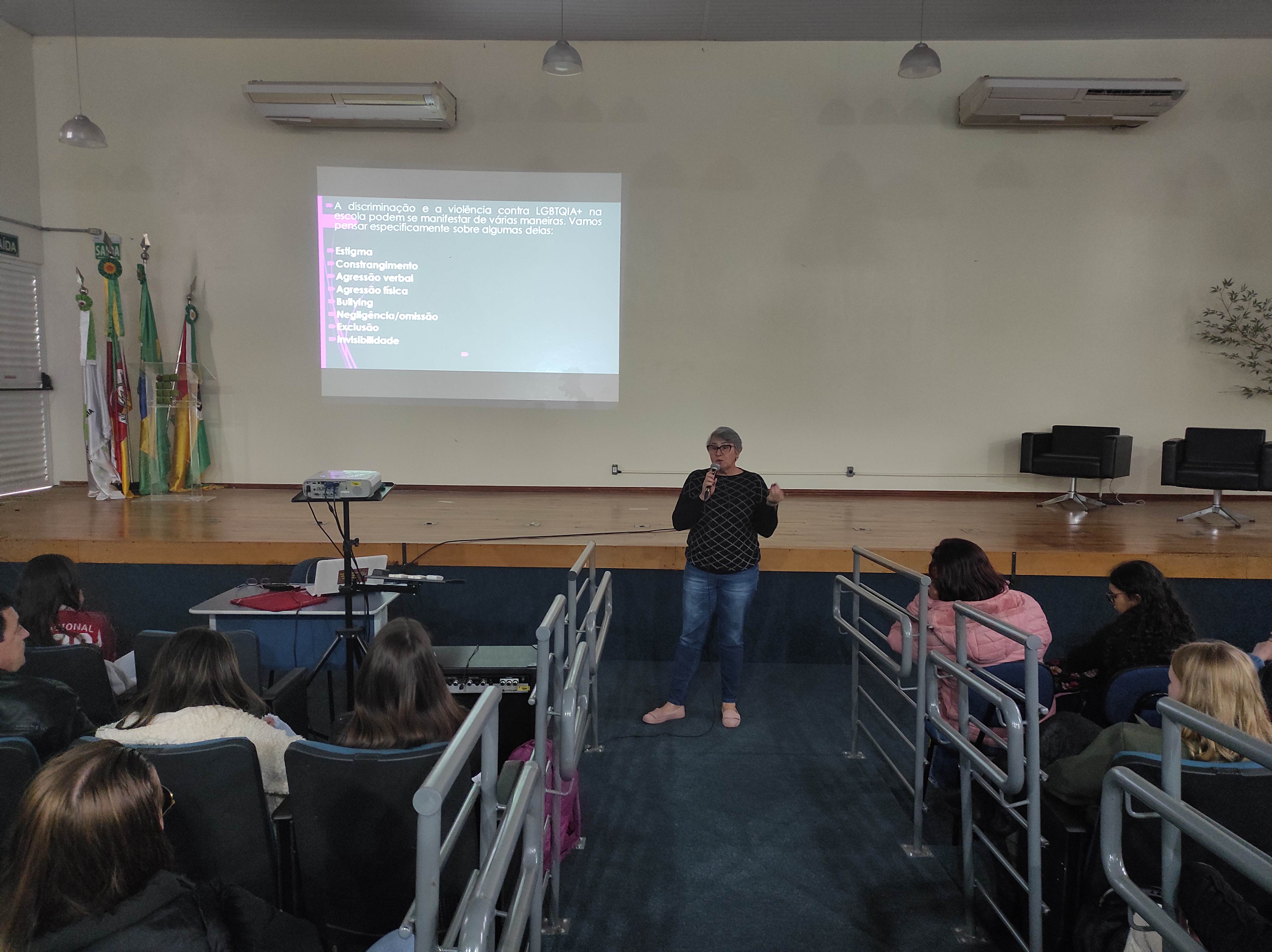Na tarde de terça-feira, 1º de novembro, os acadêmicos do 2⁰ semestre de Licenciatura em Ciências Biológicas do IFFar Campus Santo Augusto, sob a coordenação da professora Clarinês Hames, promoveram um Cine Debate com os estudantes dos cursos técnicos integrados ao ensino médio em Alimentos e Agropecuária. A atividade foi realizada em parceria com o Núcleo de Gênero e Diversidade Sexual do IFFar – Campus Santo Augusto – NUGEDIS.
