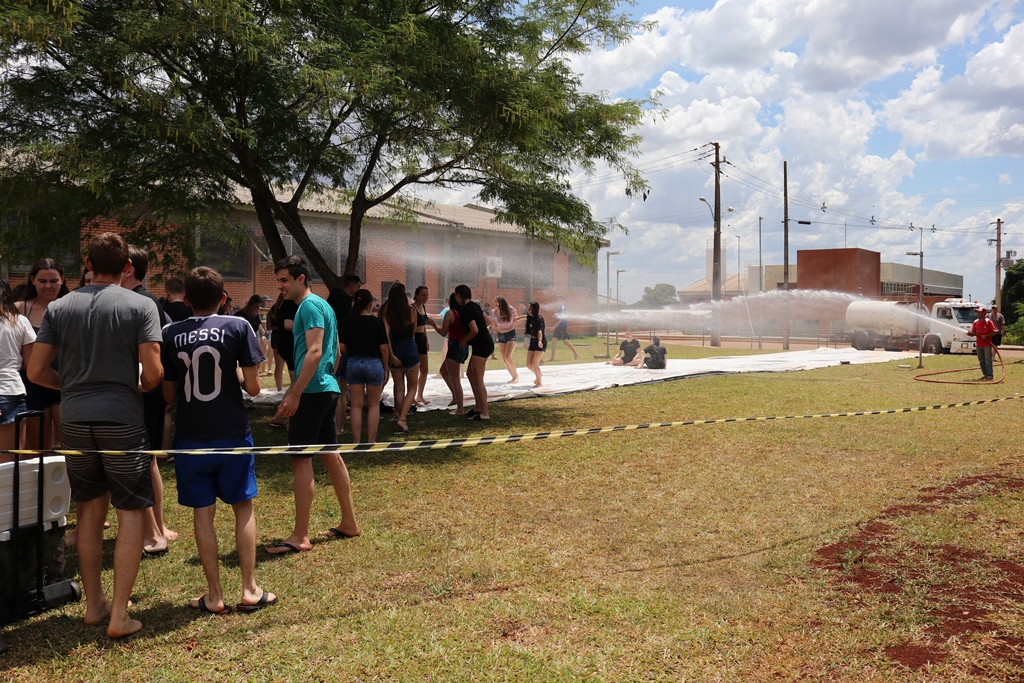 A brincadeira teve como espaço delimitado o gramado central do campus. Além de bexiguinhas com água, garrafas, baldes e mangueiras, também foram utilizados para molhar aqueles que desejavam participar da festa, mas a atração principal foi o jato de água do caminhão pipa da prefeitura, que abrilhantou a festa.
