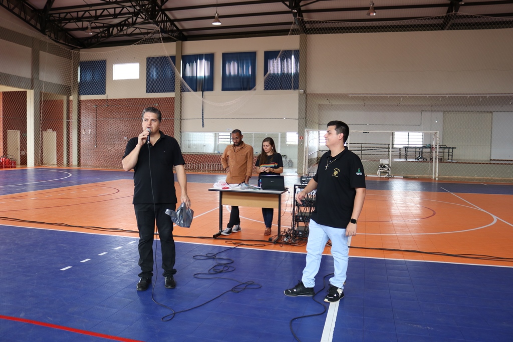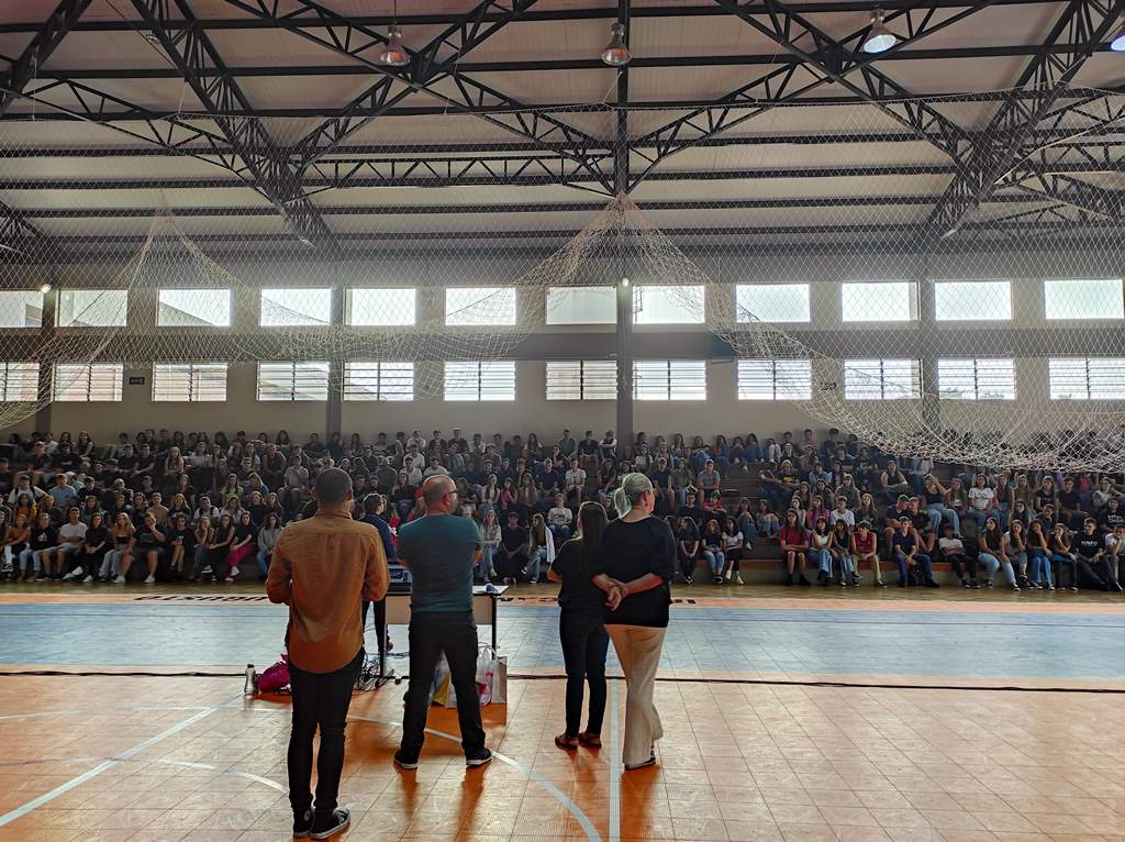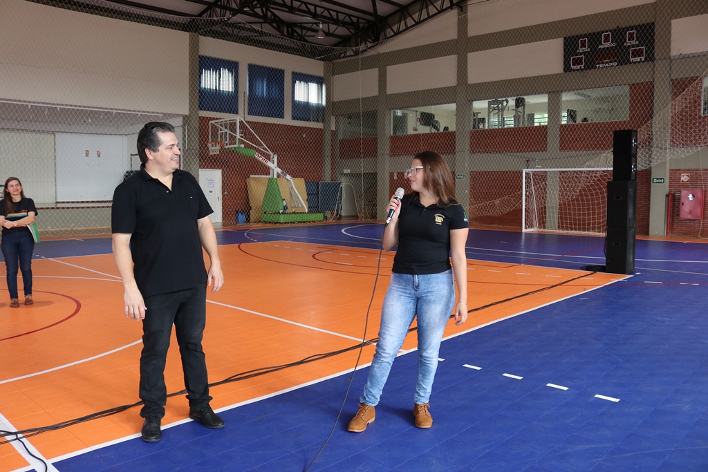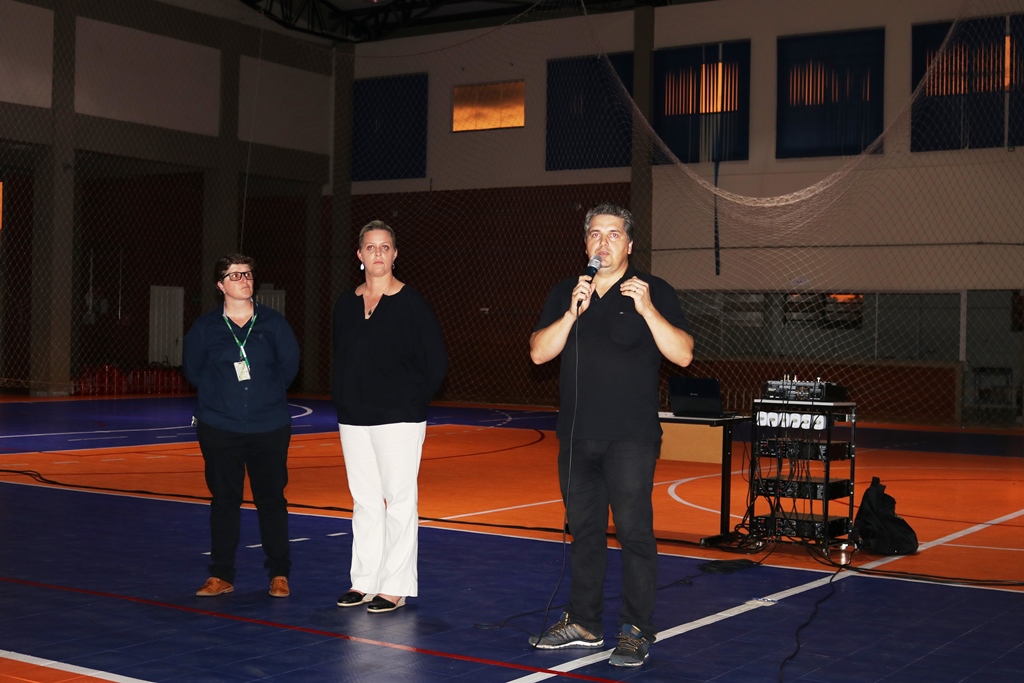 O Coordenador da Assistência Estudantil, Marcos Wolmann Santos, a Diretora Geral, Márcia Fink e a Diretora de Ensino, Téoura Benetti, deram as boas-vindas aos estudantes e repassaram as regras de convivência da instituição.