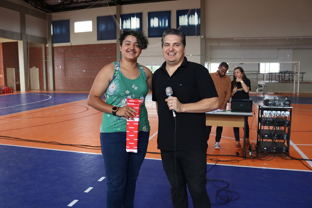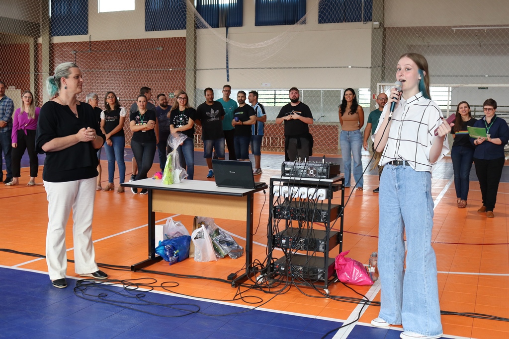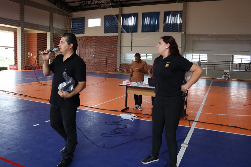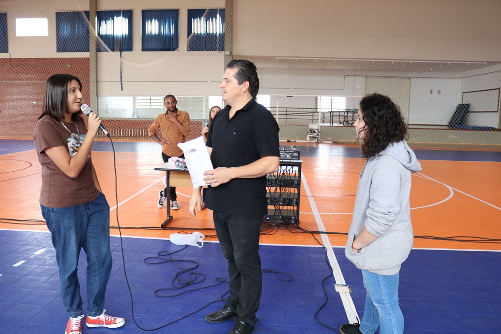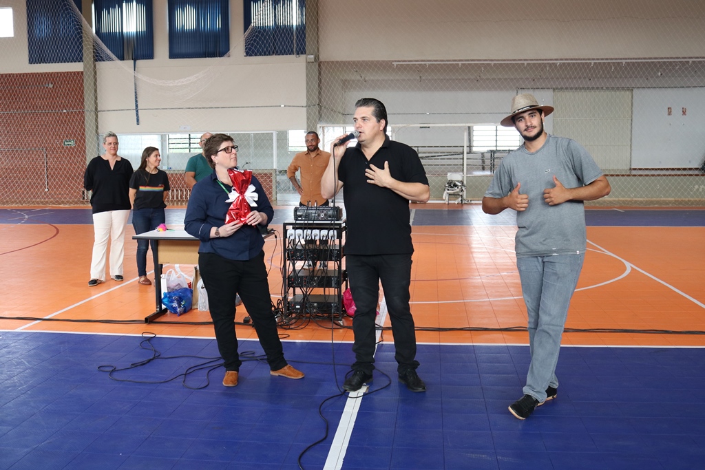 O Coordenador da Assistência Estudantil, Marcos Wolmann Santos, a Diretora Geral, Márcia Fink e a Diretora de Ensino, Téoura Benetti, deram as boas-vindas aos estudantes e repassaram as regras de convivência da instituição.