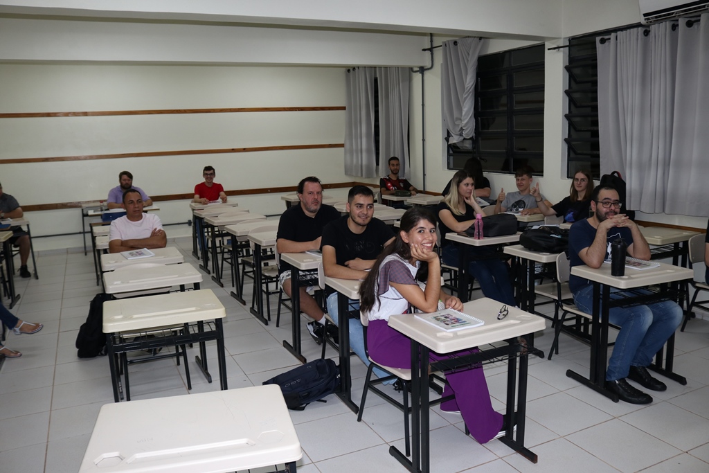 À noite, às 19h30, iniciaram as aulas para as turmas em andamento dos cursos superiores. Os acadêmicos foram recebidos no Ginásio de Esportes da instituição, onde receberam as boas-vindas da Direção e da Assistência Estudantil. Na sequência, os cursos se reuniram separadamente com os coordenadores, para informes gerais.