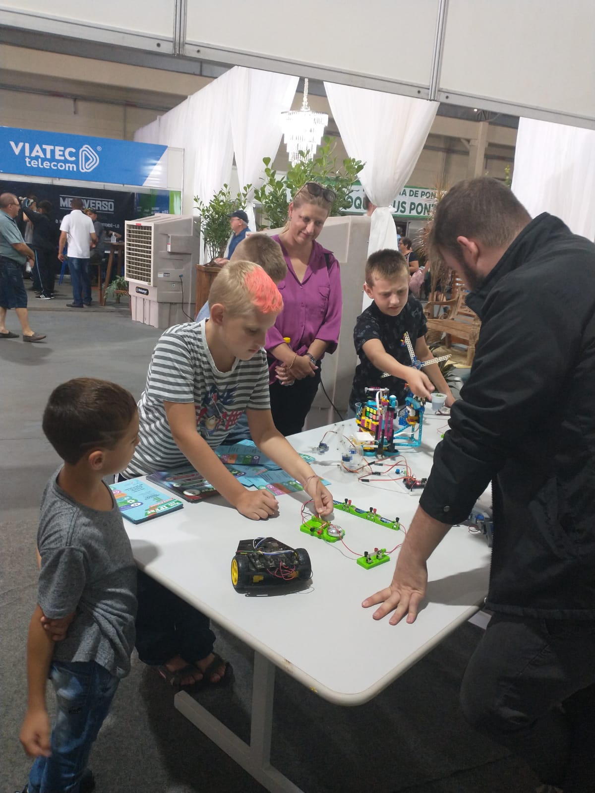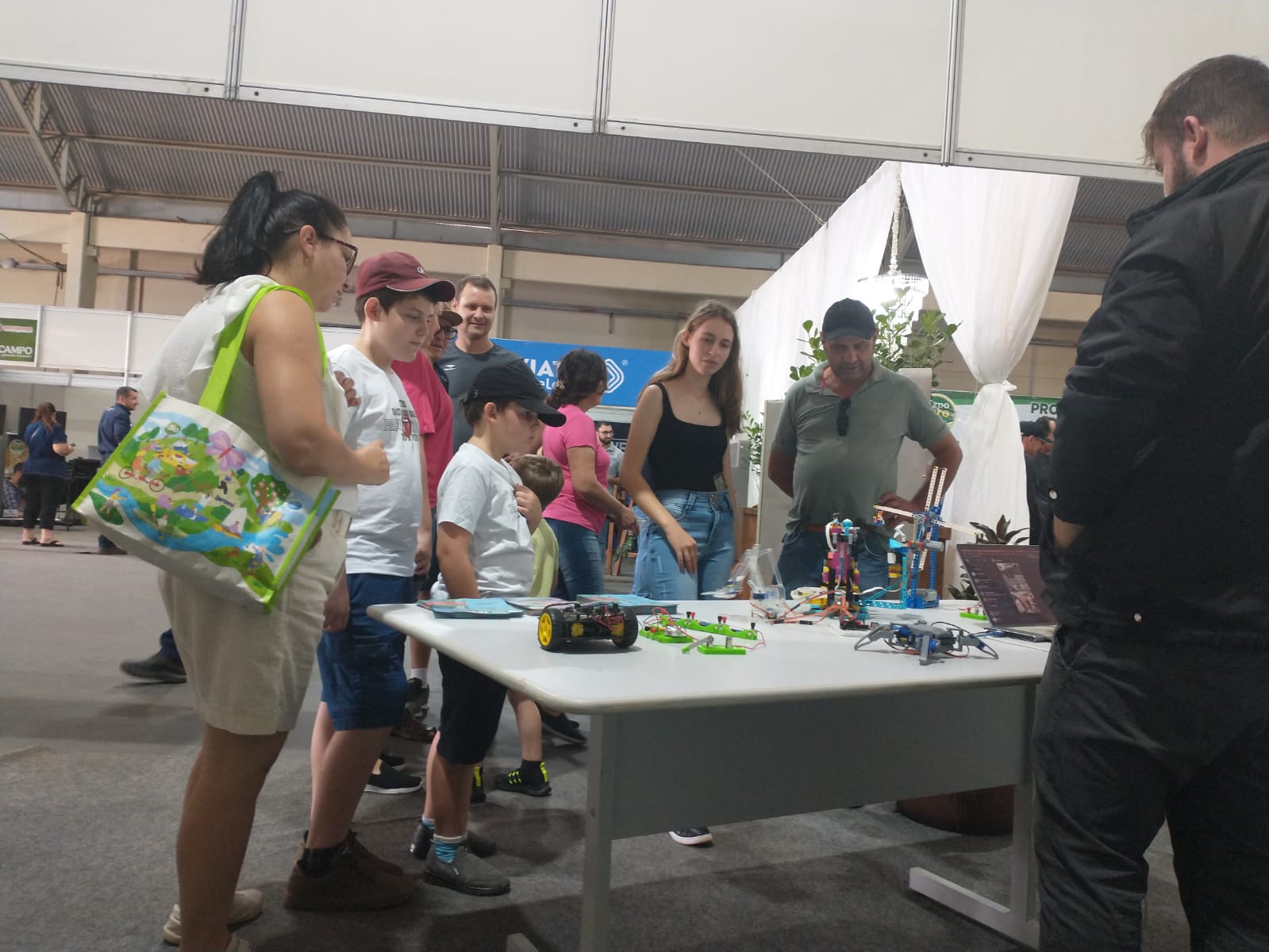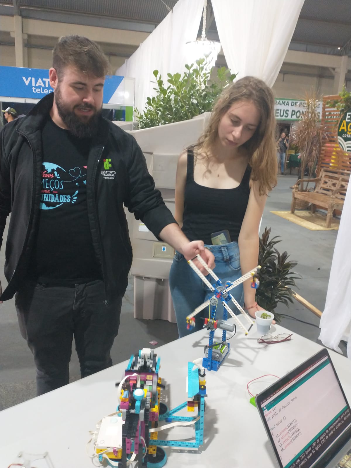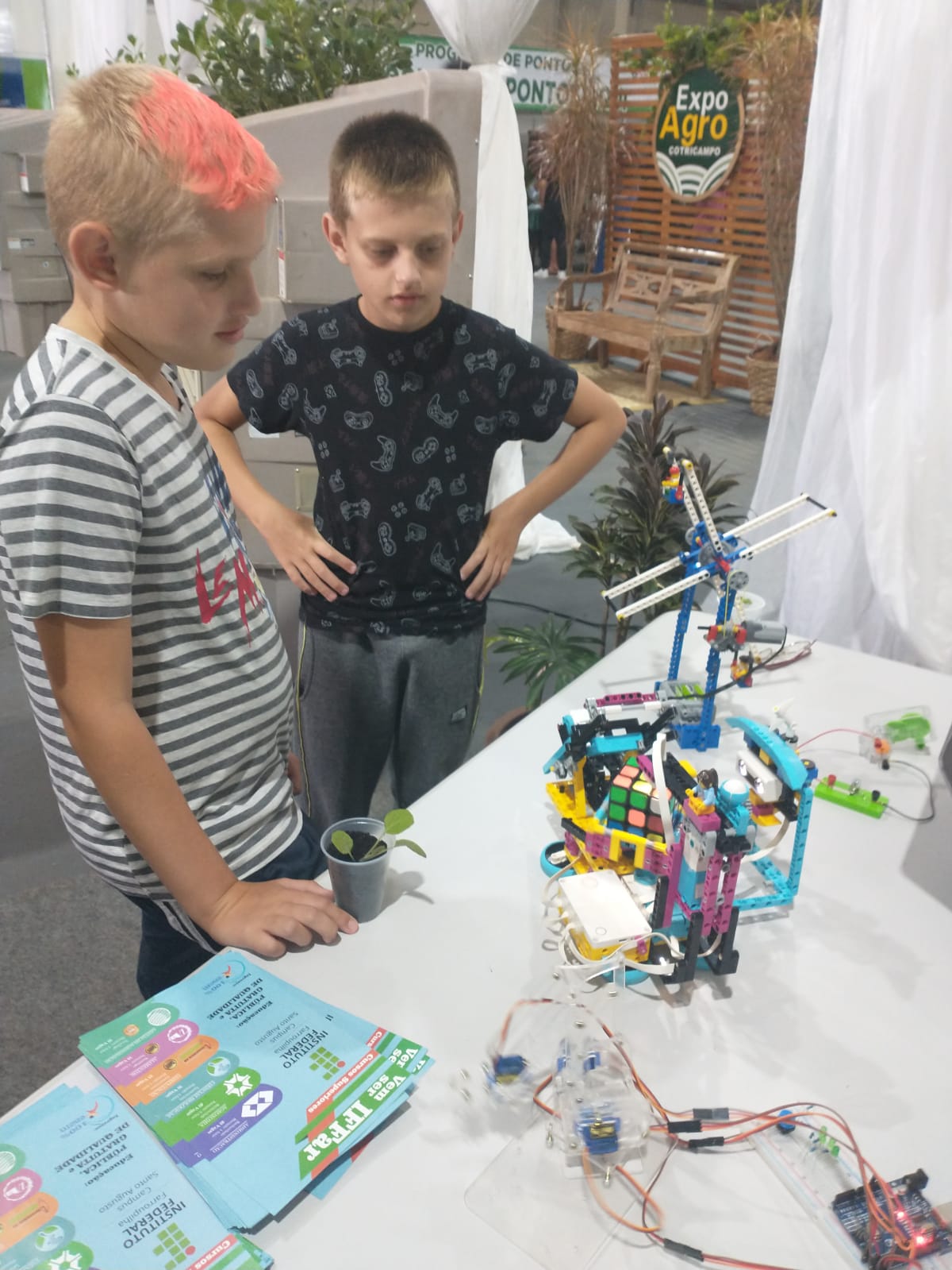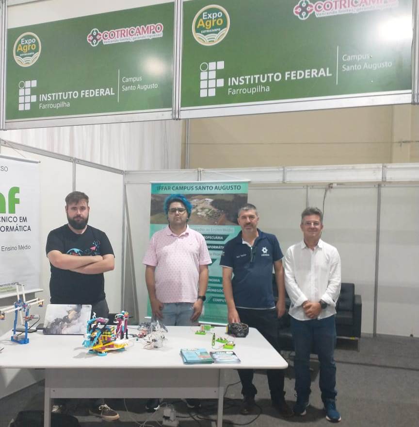 No sábado, dia 25, o estande ficou a cargo do Curso Superior de Licenciatura em Computação e do curso técnico em Informática integrado ao ensino médio. Durante o dia, os professores, Adão Caron Cambraia e Uianes Biondo, o acadêmico Rafael Ramos, e o Diretor de Pesquisa, Extensão e Produção do IFFar - Campus Santo Augusto, Tarcísio Samborski, demonstraram para os visitantes o funcionamento dos robôs lego produzidos pelo Projeto de Inovação Tecnológica, “Prorobótica: pensamento computacional na Educação Básica”, desenvolvido em 2022 pelo IFFar Campus Santo Augusto em escolas de Santo Augusto, Nova Ramada e Passo Fundo.