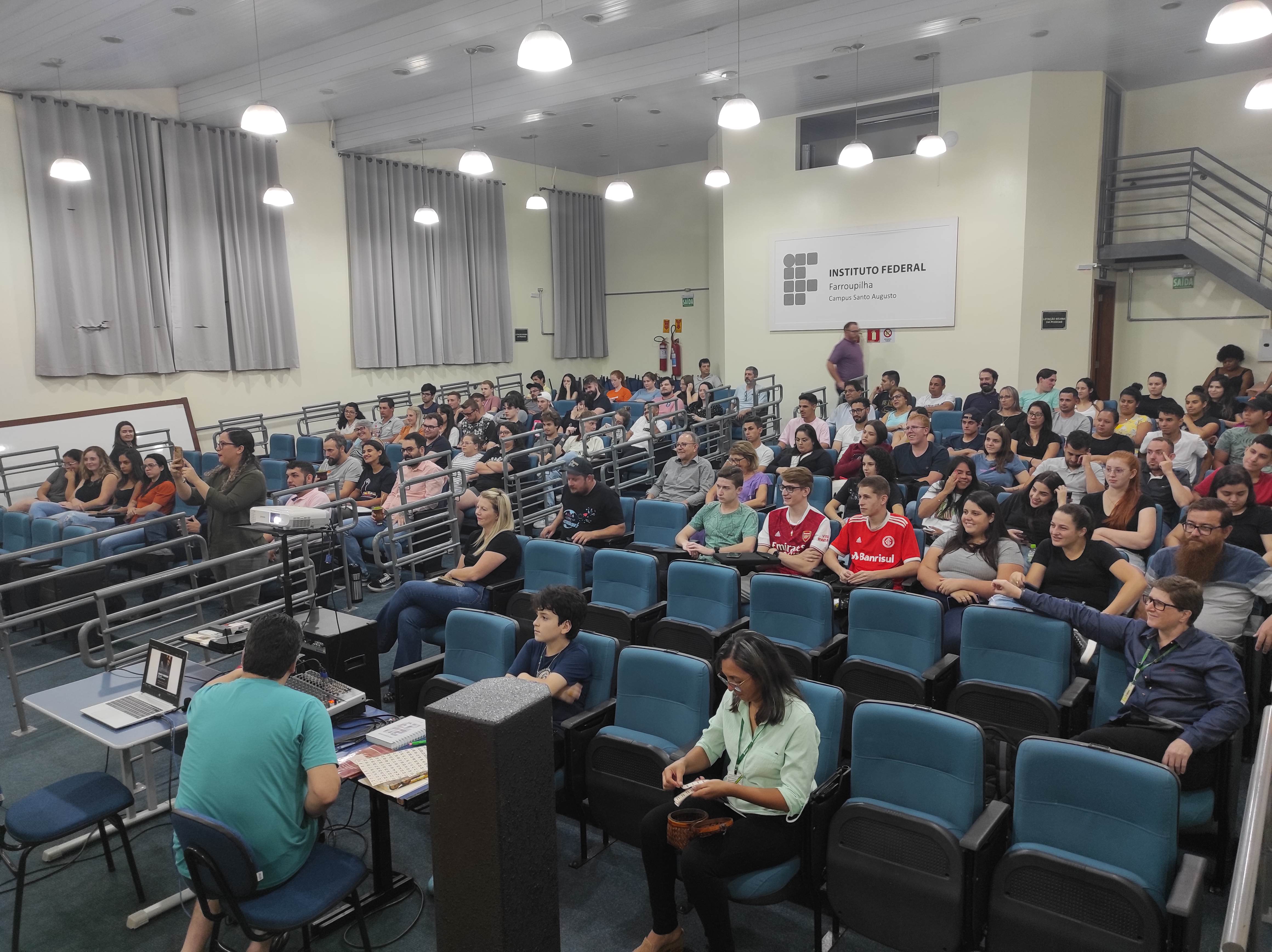 O evento contou com a presença de estudantes dos cursos superiores de Licenciatura em Computação, Licenciatura em Ciências Biológicas e do Bacharelado em Administração do IFFar – Campus Santo Augusto, também participaram estudantes da Escola Estadual Senador Alberto Pasqualini –CIEP e pessoas da comunidade.