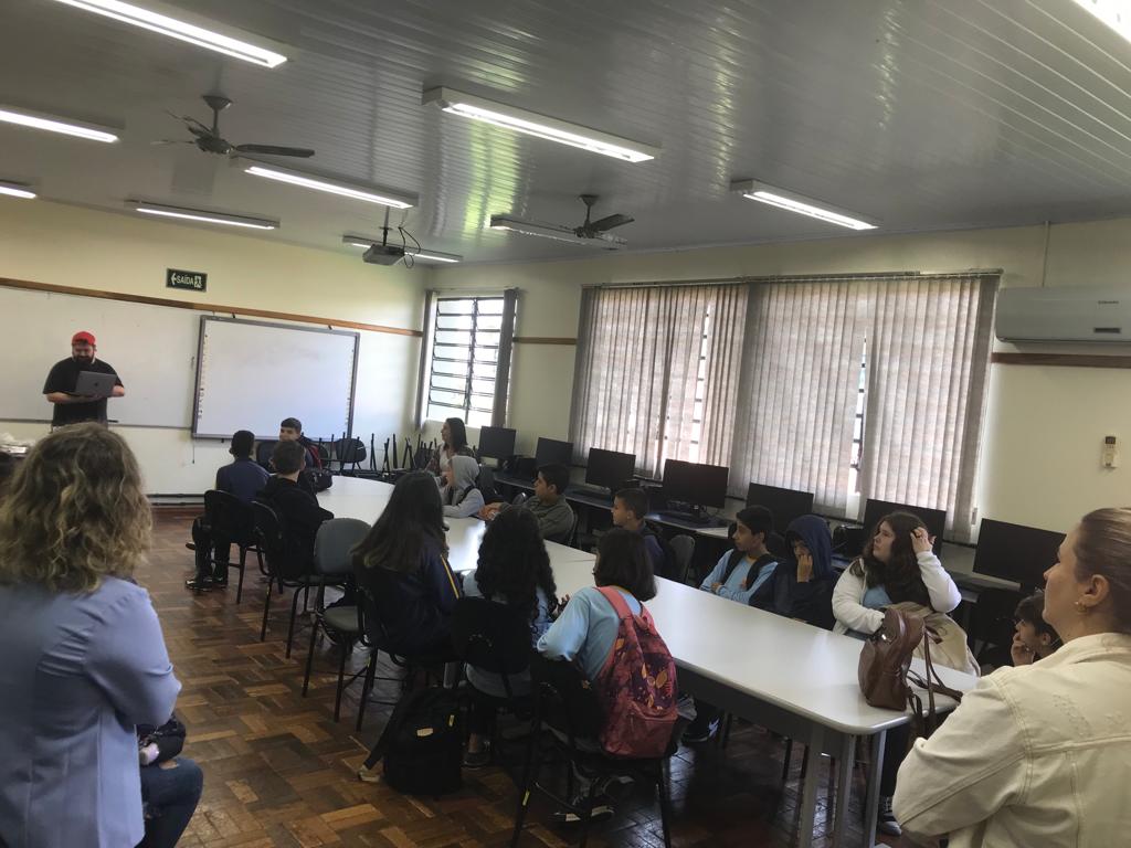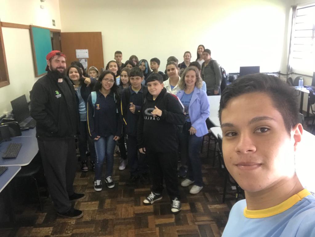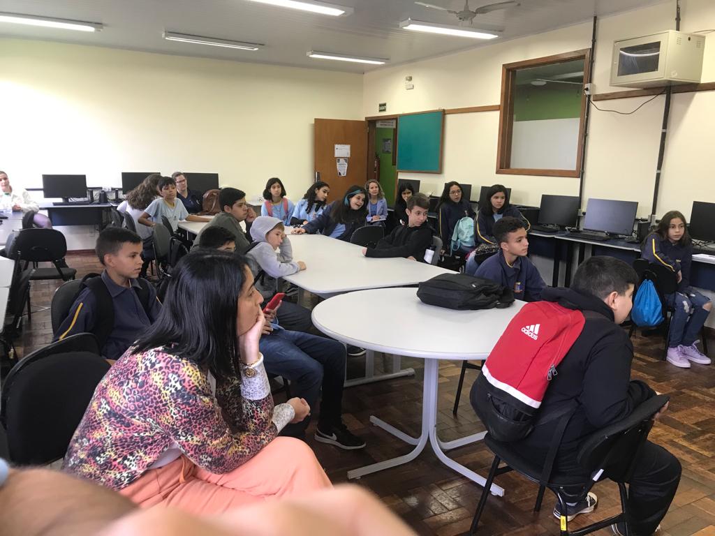 O grupo foi recebido pelo professor Uianes Biondo, que os conduziu para uma visita na Biblioteca Mario Quintana, nos laboratórios do Prédio de Ciência e Tecnologia e nos laboratórios de Informática, também puderam conhecer um pouco sobre a robótica, que é um dos temas a ser trabalho pela turma no Jepp.