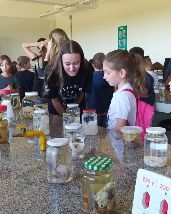 Na ocasião, os visitantes participaram, no pátio da instituição, da Hora do Conto, realizada pelo grupo “Contar, Encantar e Educar”, formado por estudantes dos cursos técnicos. Na sequência, as crianças puderam conhecer os laboratórios de Biologia, guiados pelos acadêmicos de Licenciatura em Ciência Biológicas, Fábio Sievers e Ana Luísa de Lima da Silva.