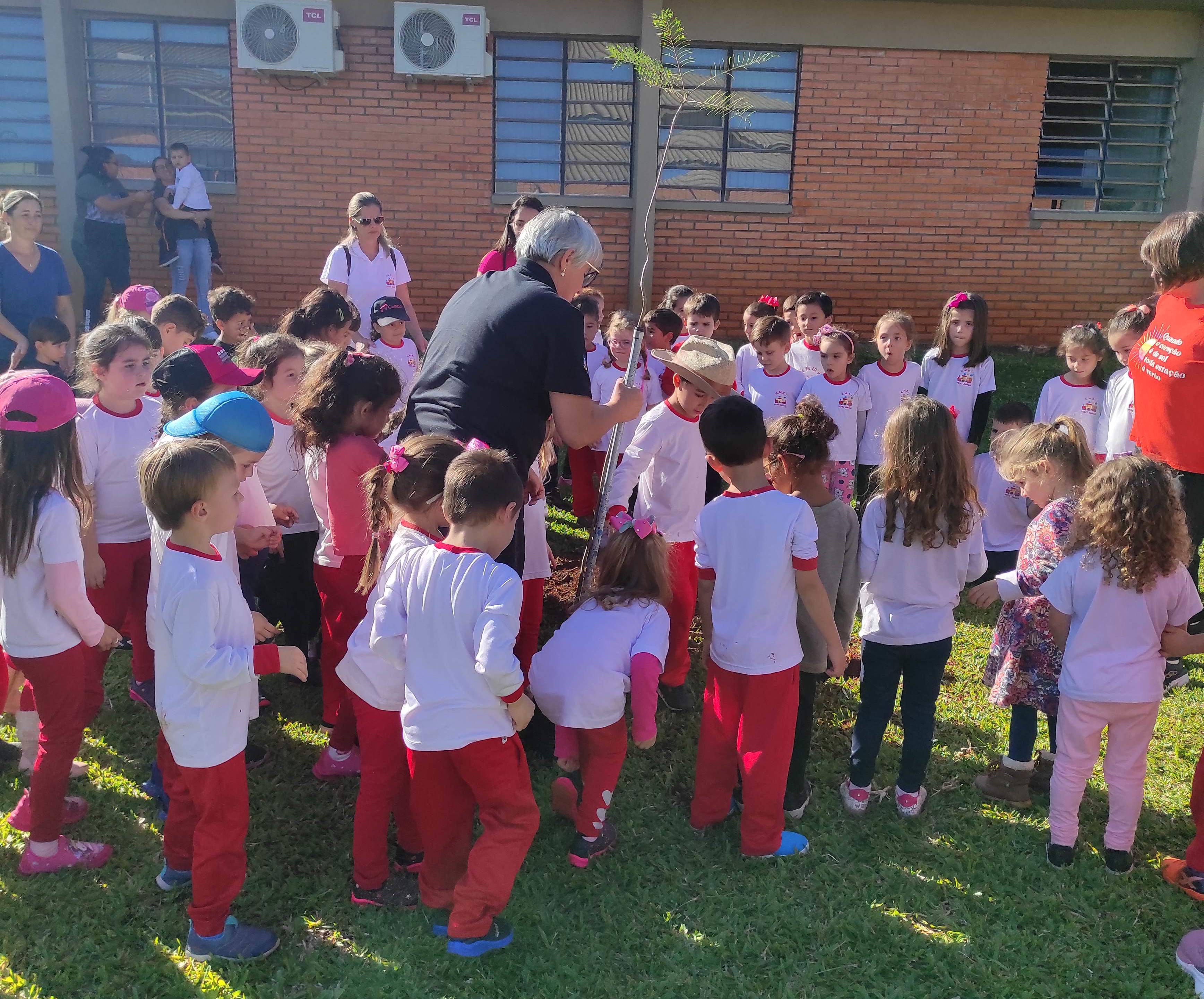 Estudantes de Escola de Educação Infantil plantam muda de Jacarandá-mimoso no IFFar – Campus Santo Augusto