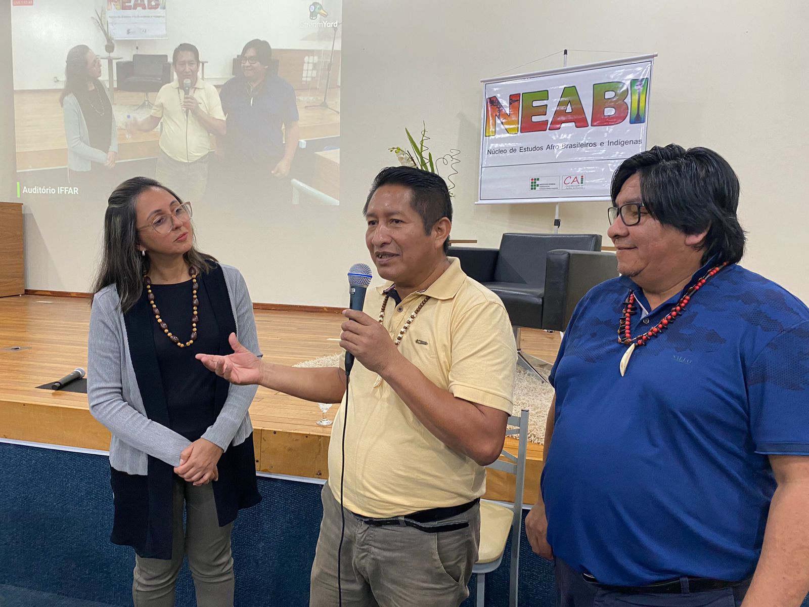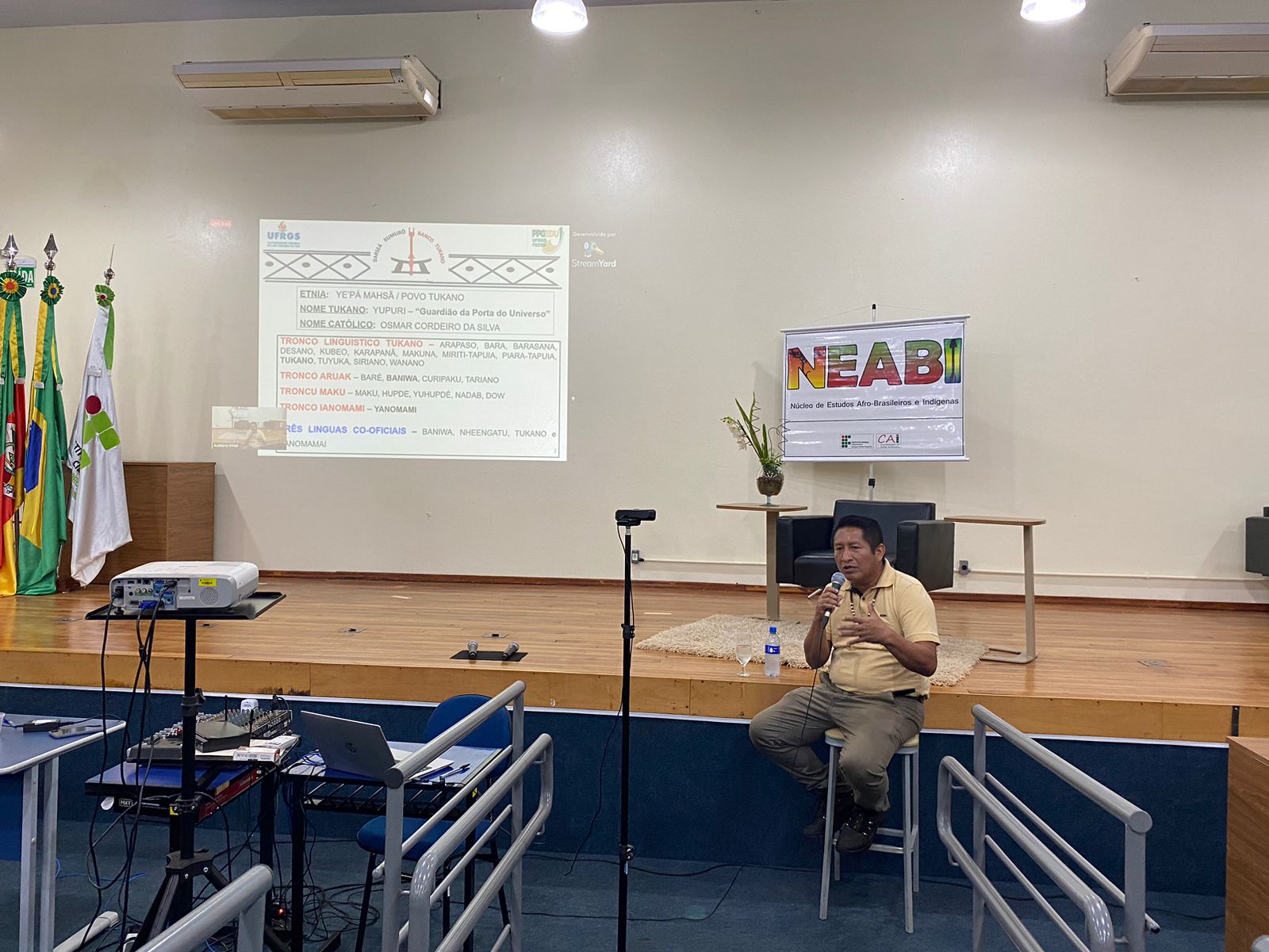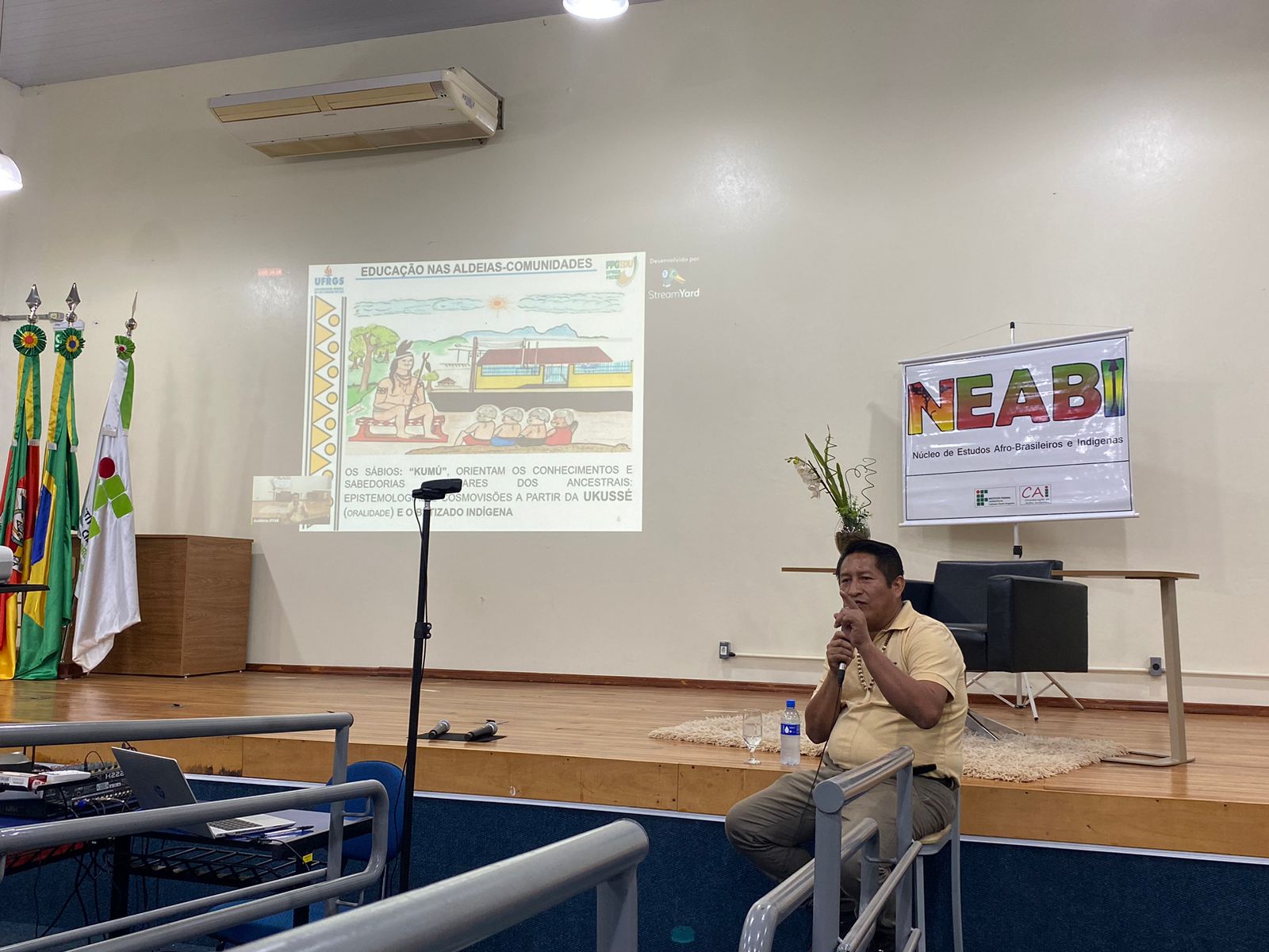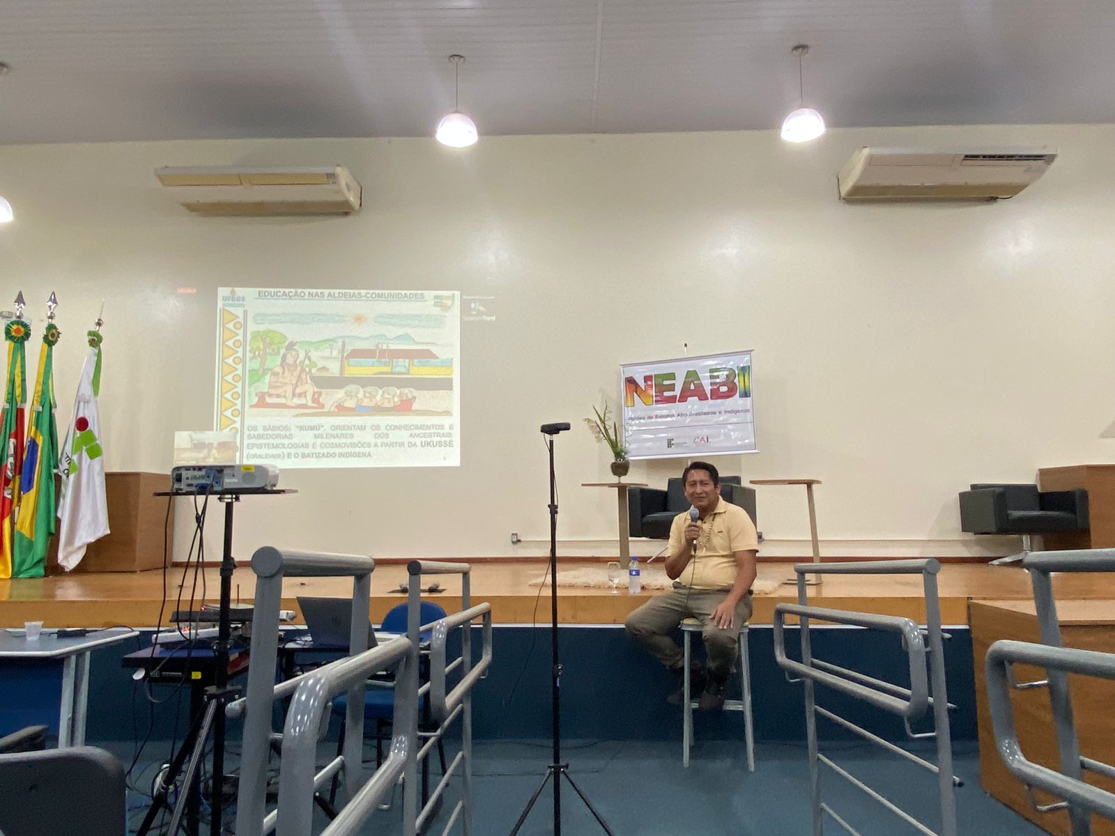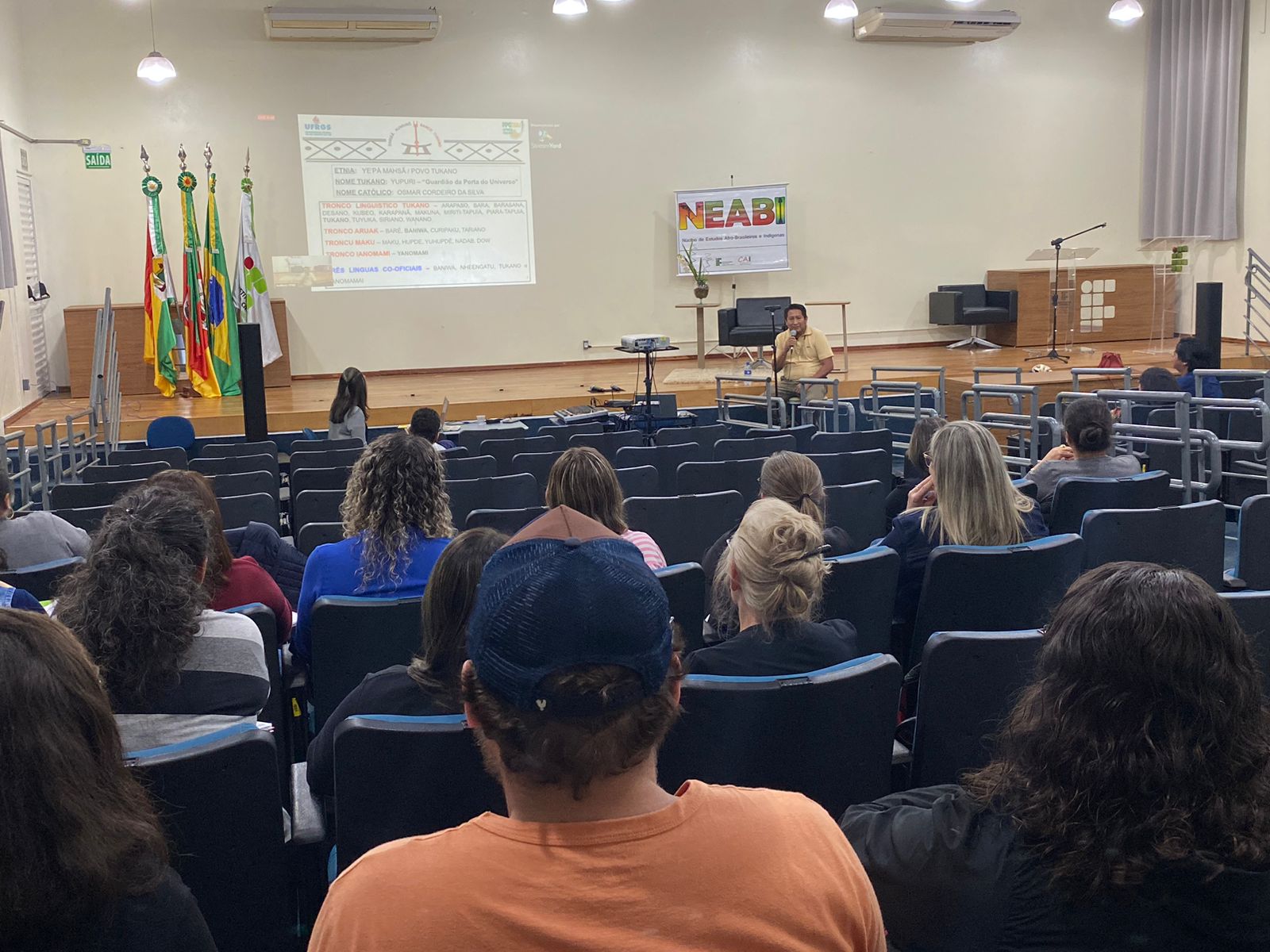 Foi realizado na noite de ontem, dia 25 de maio, às 19h15 no auditório do IFFar – Campus Santo Augusto, o segundo encontro do Ciclo de Estudos das Culturas Indígenas, com a palestra ministrada pelo professor Me. Osmar Cordeiro da Silva, tendo como tema: “Estudantes indígenas nos diversos espaços educativos”.