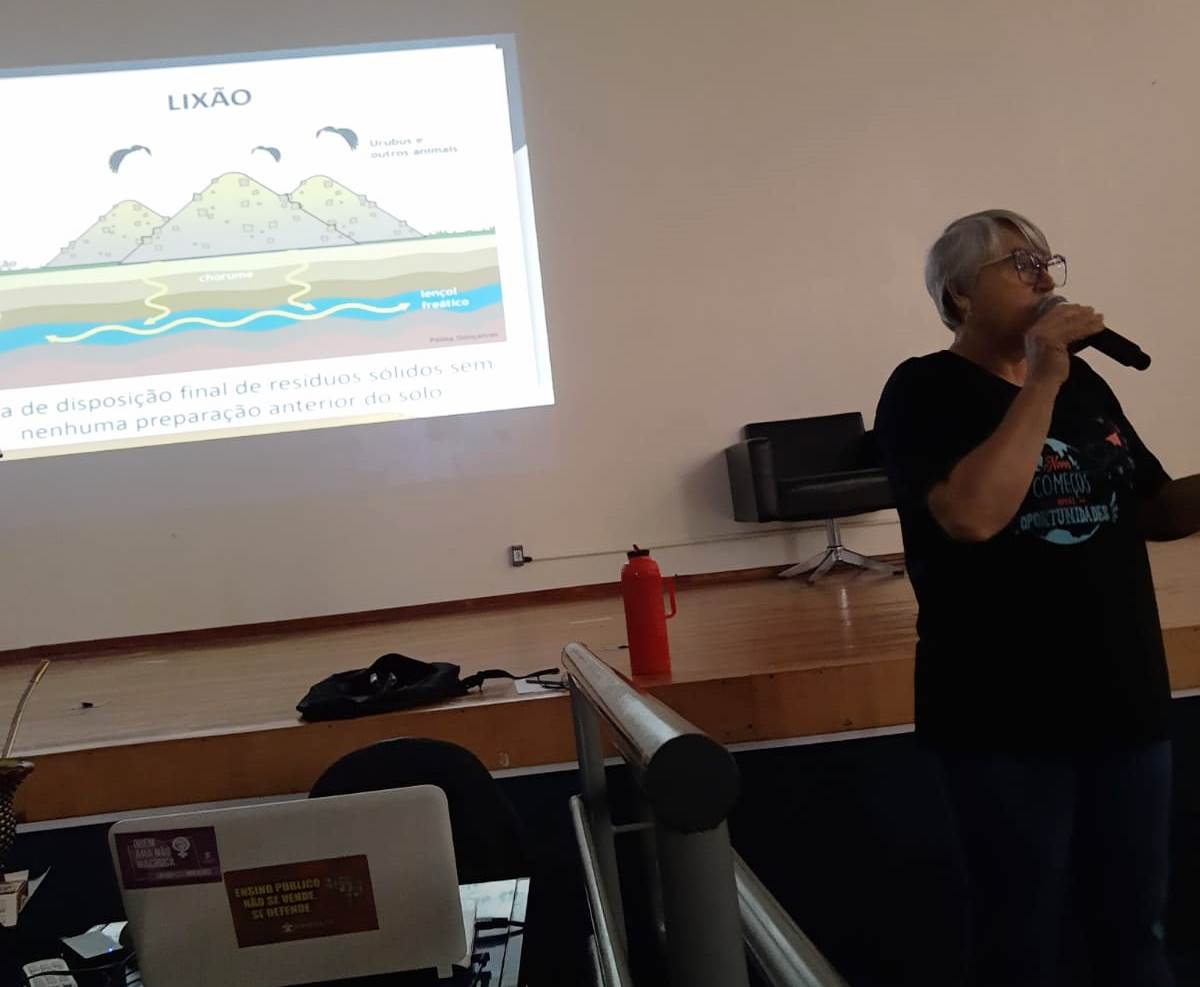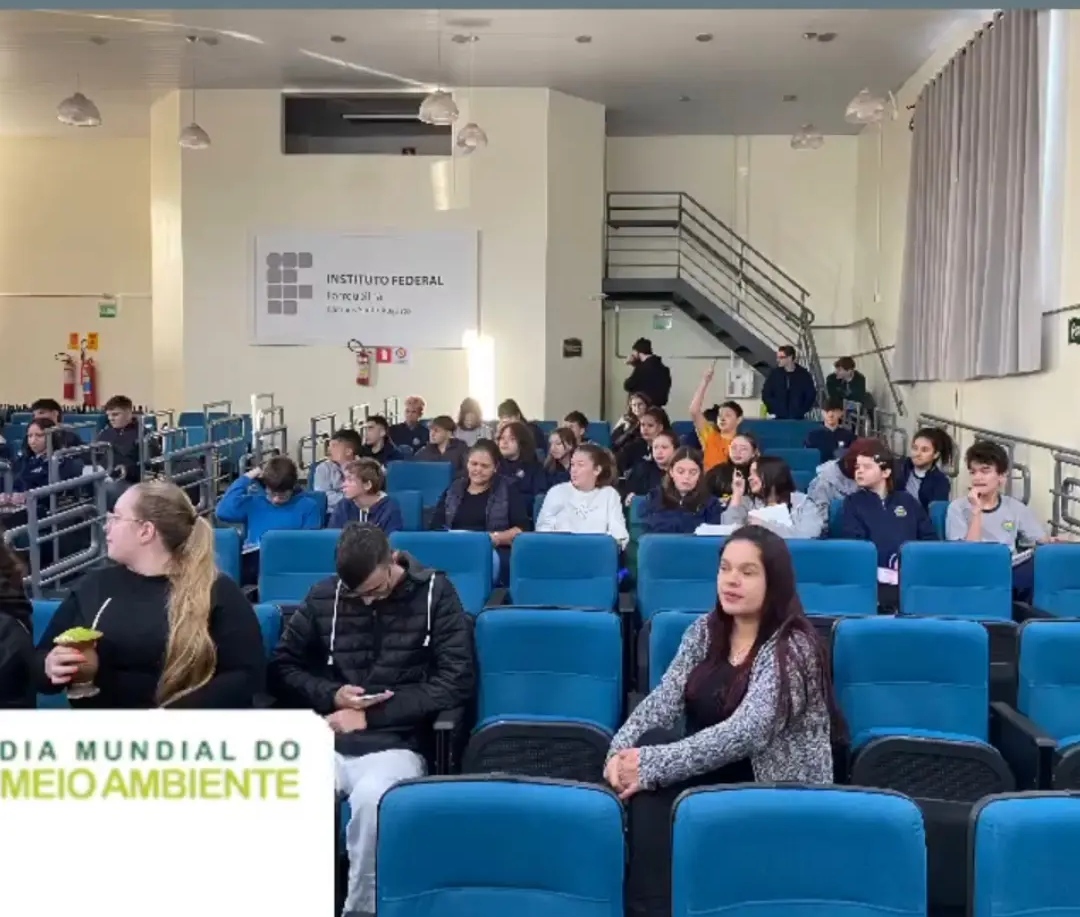 Na manhã desta quinta-feira, dia 1º de junho, foi realizada no auditório do auditório do IFFar – Campus Santo Augusto, uma palestra sobre “Lixo e impactos ambientais”, ministrada pela professora Clarinês Hames, para estudantes do 6º ao 9º ano, da Escola Municipal de Ensino Fundamental Sol Nascente, em alusão à Semana do Meio Ambiente.
