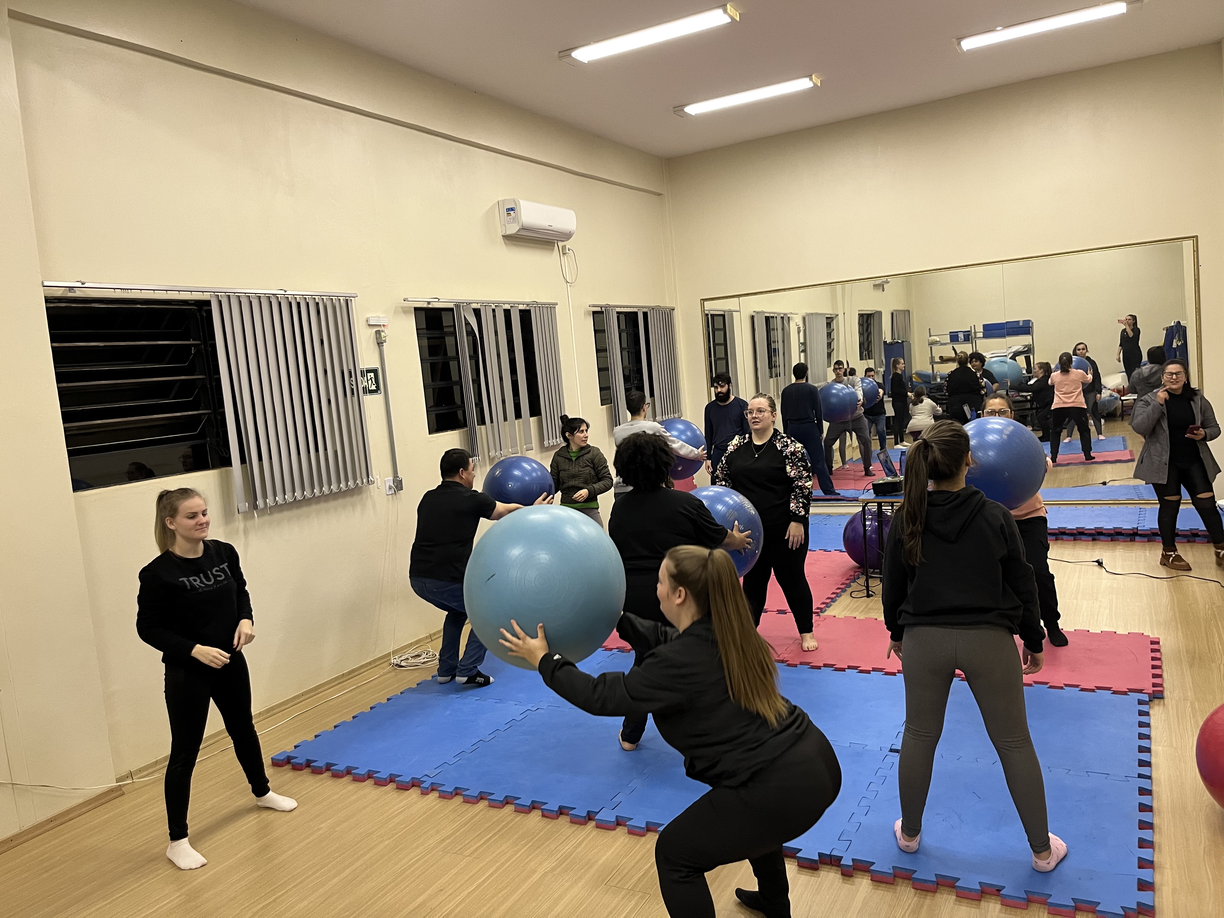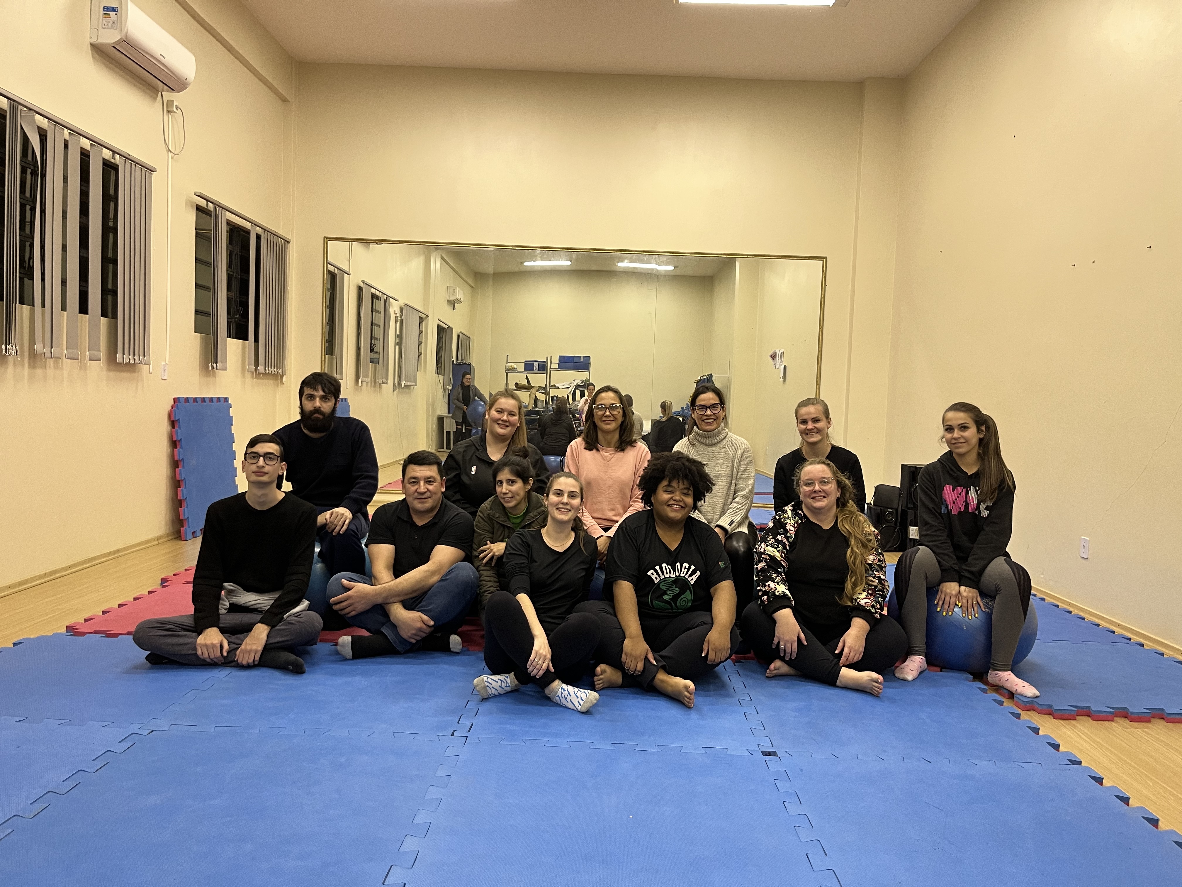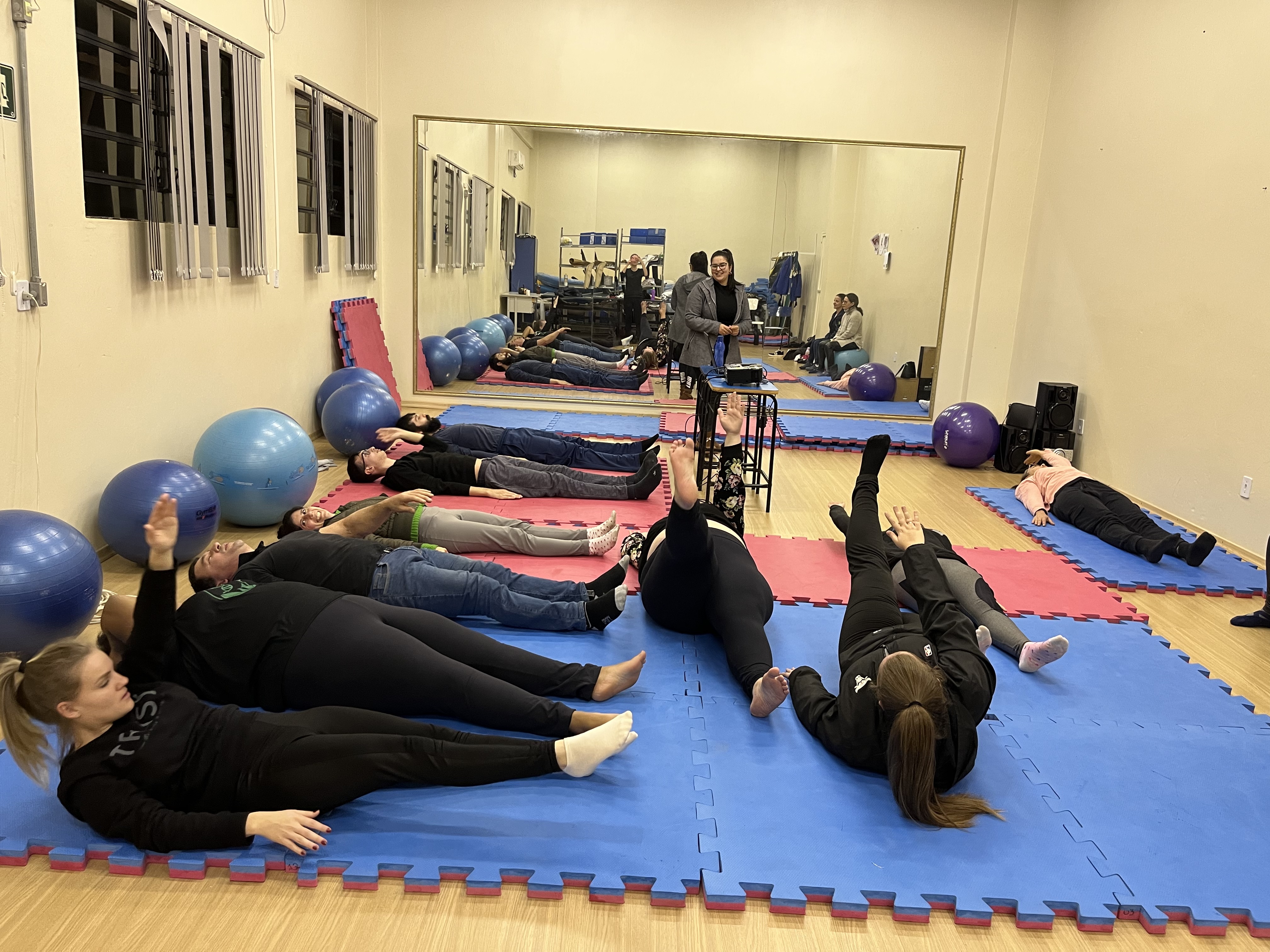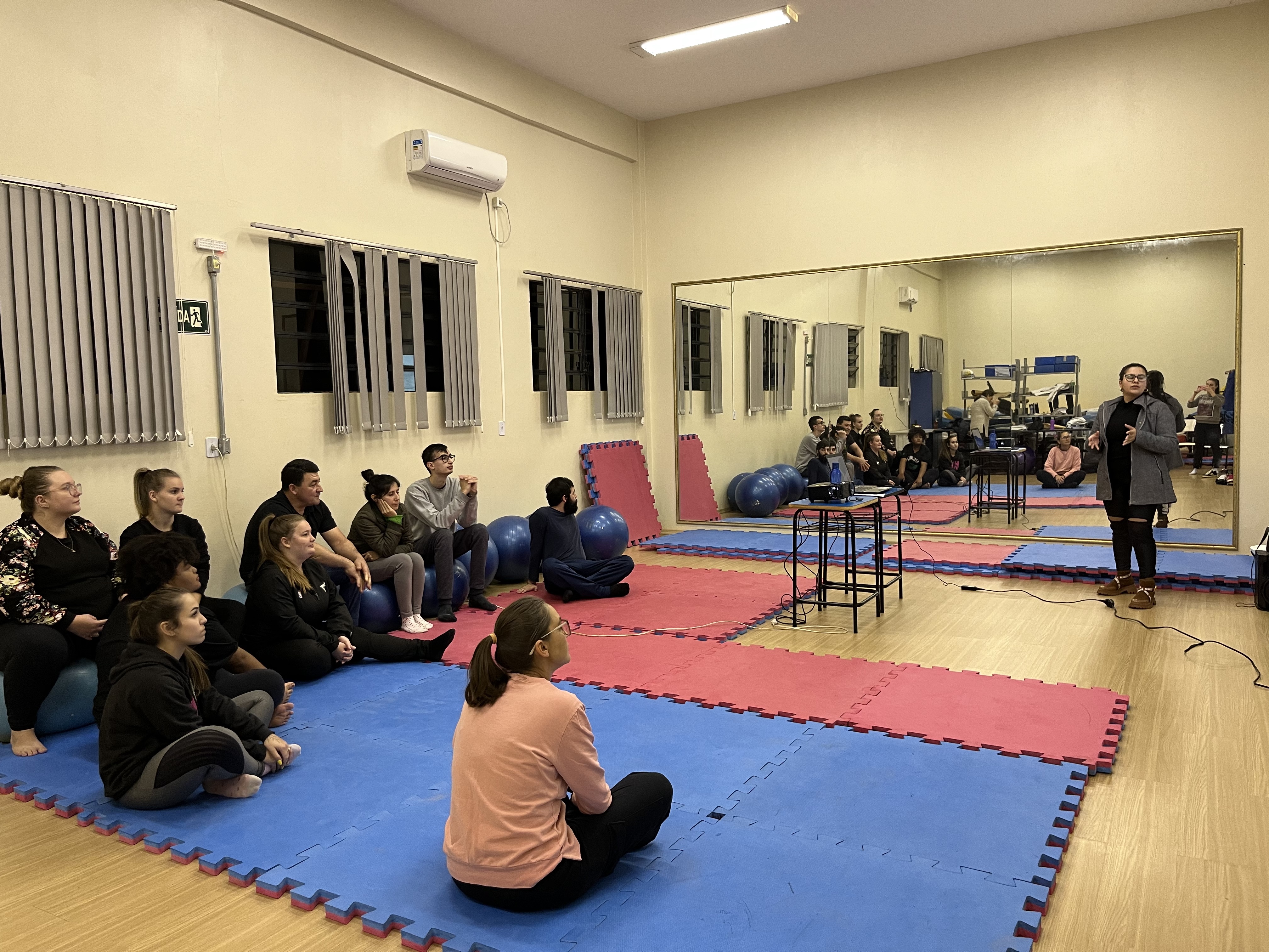 Os estudantes do 3º semestre do Curso de Licenciatura em Ciências Biológicas participaram, no dia 22 de junho, de uma aula de Pilates, ministrada pela fisioterapeuta e professora de Pilates, Taynara Barcelos Lima.