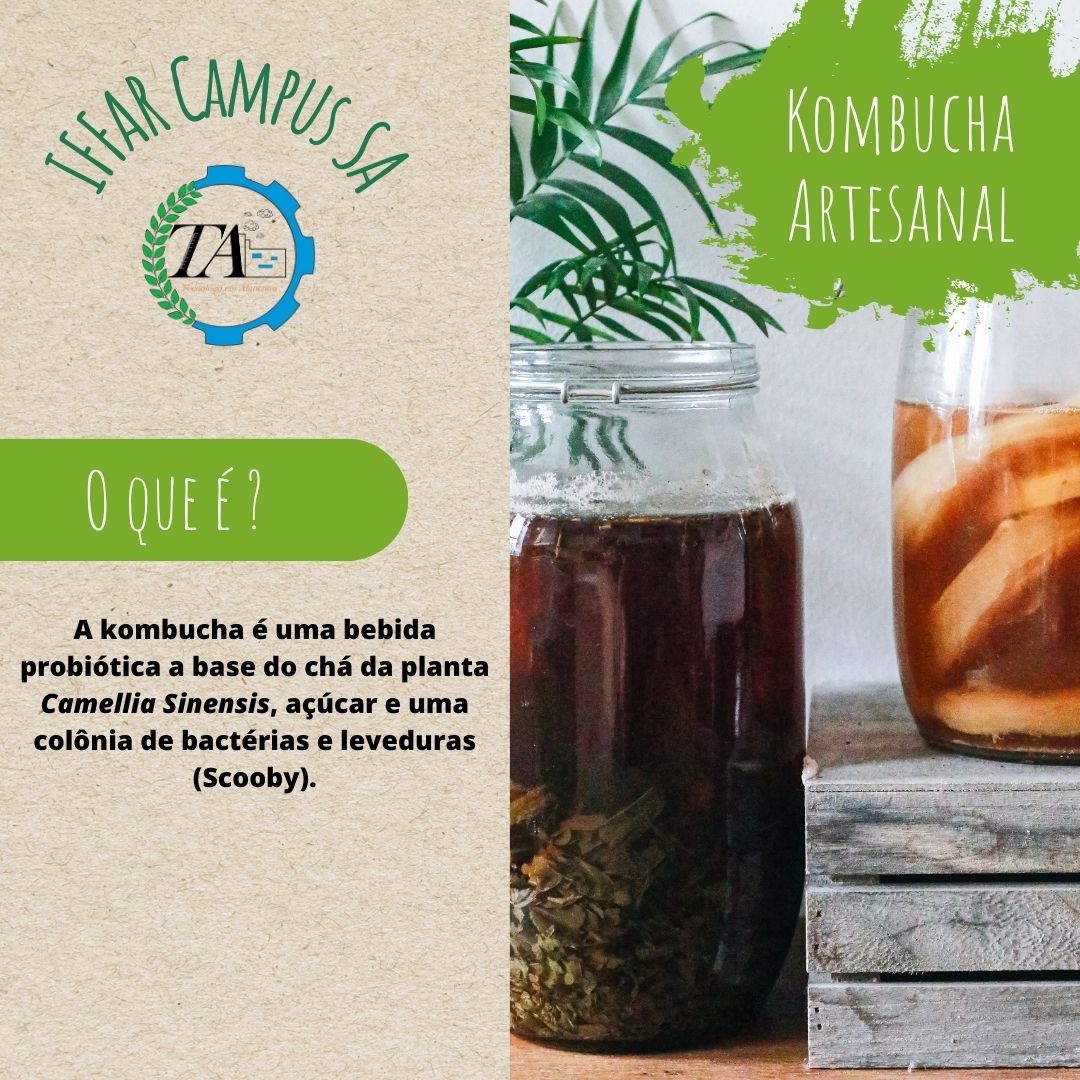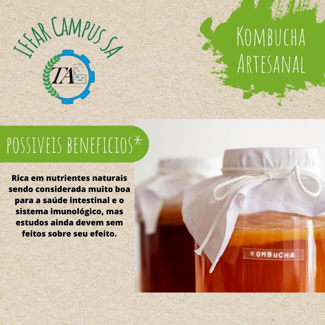O kombucha é uma bebida fermentada feita com o chá preto ou chá verde, adoçados, contendo uma cultura de leveduras e bactérias, conhecidas como scoby, que equilibram a flora intestinal, ajudando a fortalecer o sistema imunológico e melhorar o funcionamento do intestino. Também contém boas quantidades de polifenóis e vitamina C, compostos com propriedades desintoxicantes, que melhoram as funções do fígado, promovendo a eliminação de toxinas do organismo pela urina e pelas fezes.