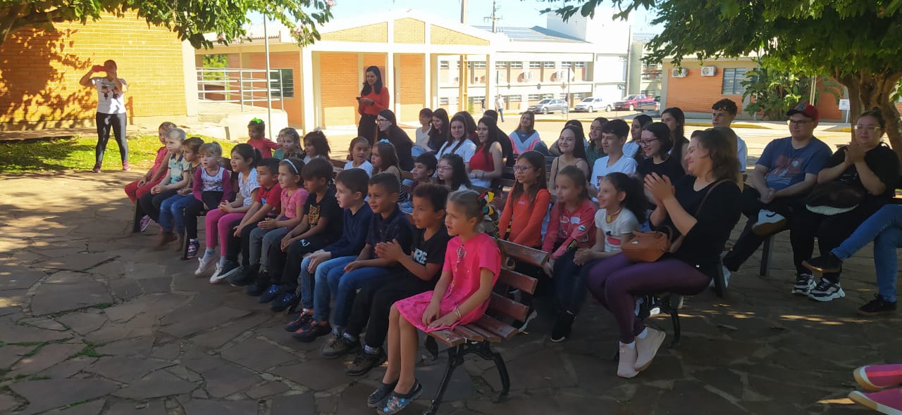 Na quarta-feira, dia 02 de agosto, o projeto de extensão “Biblioteca em Ação: contar, encantar e educar”, desenvolvido no IFFar – Campus Santo Augusto, sob a coordenação da bibliotecária Daniela d‘Acampora, recebeu a visita de 30 alunos do Pré nível II, da Escola Municipal de Ensino Fundamental Rosalina Diniz, do município de Coronel Bicaco.