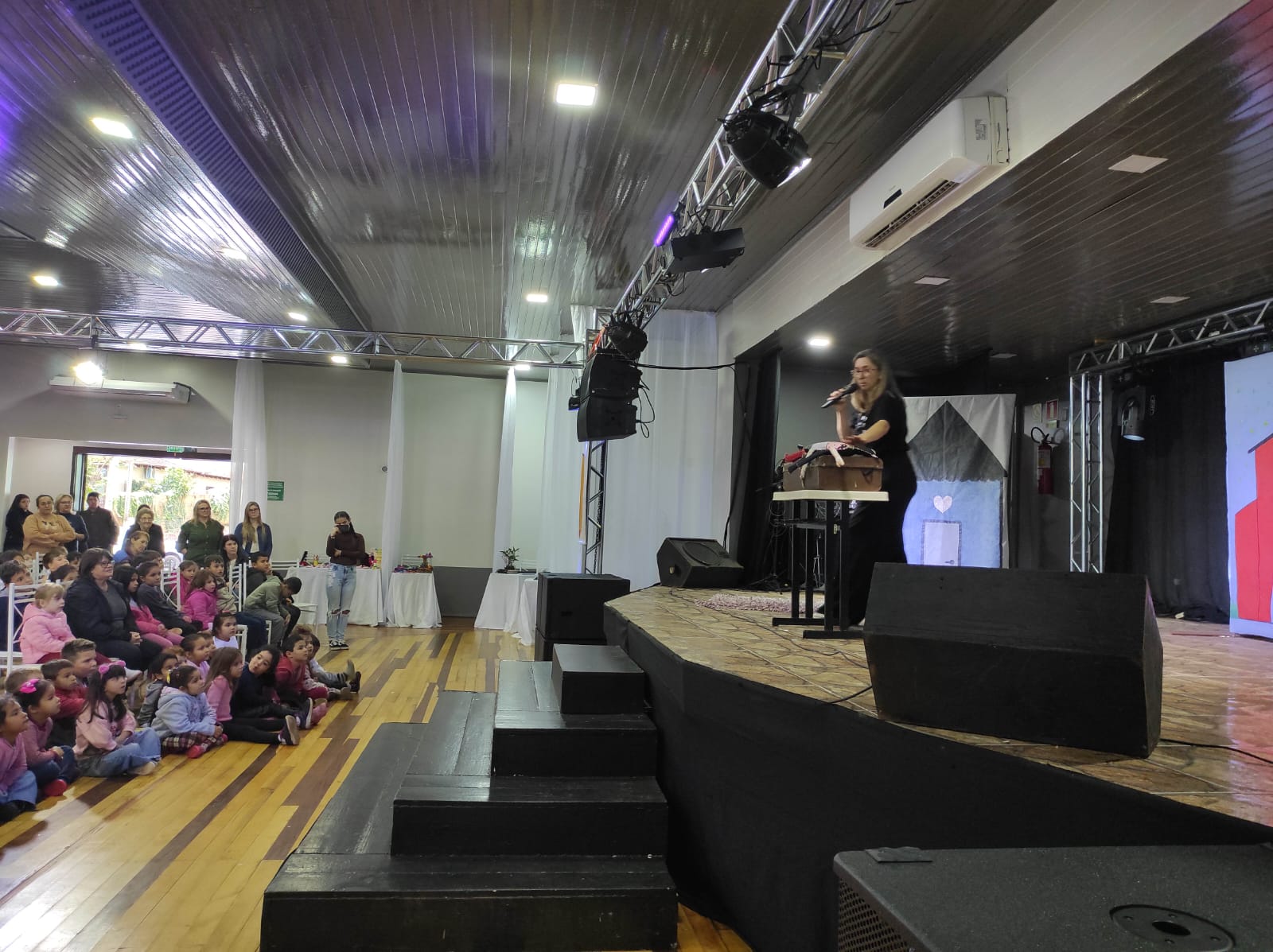 O projeto “Biblioteca em Ação: Contar, encantar e educar” é desenvolvido desde 2011 no IFFar – Campus Santo Augusto, buscando incentivar a leitura e promover a cultura, sob a coordenação da bibliotecária Daniela d‘Acampora. O grupo de contadores do projeto, formado por estudantes da instituição, se apresentou na Mostra de Artes na manhã de sexta-feira. Na ocasião, foram apresentadas de maneira teatralizada, as seguintes histórias infantis: “O Gato Xadrez” de Isa Mara Lando, “História Bela do Gato e da Panela” de Jonas Ribeiro, o poema “A Bailarina” de Cecília Meireles e “O Casamento da Dona Baratinha” de Ana Maria Machado.