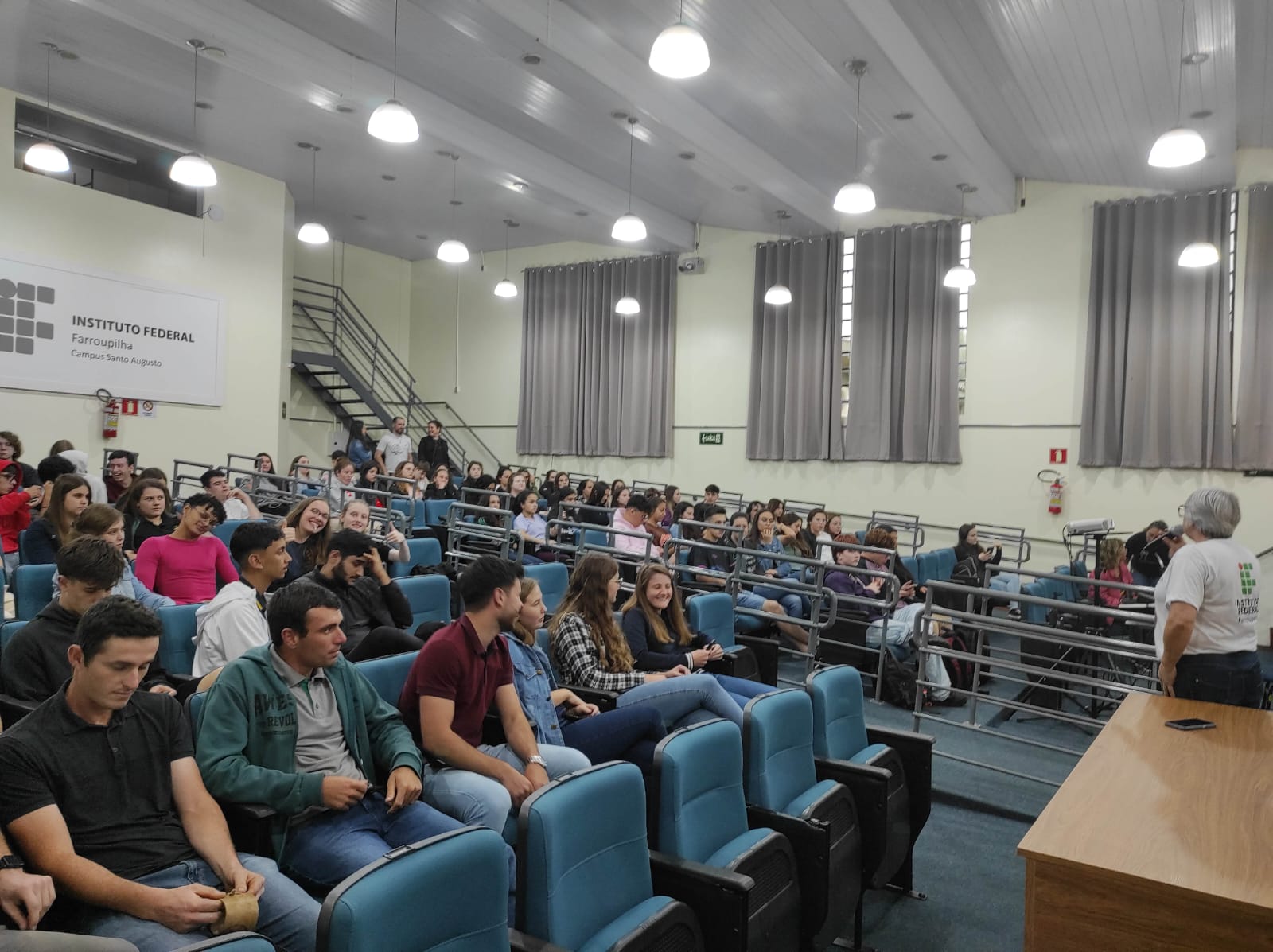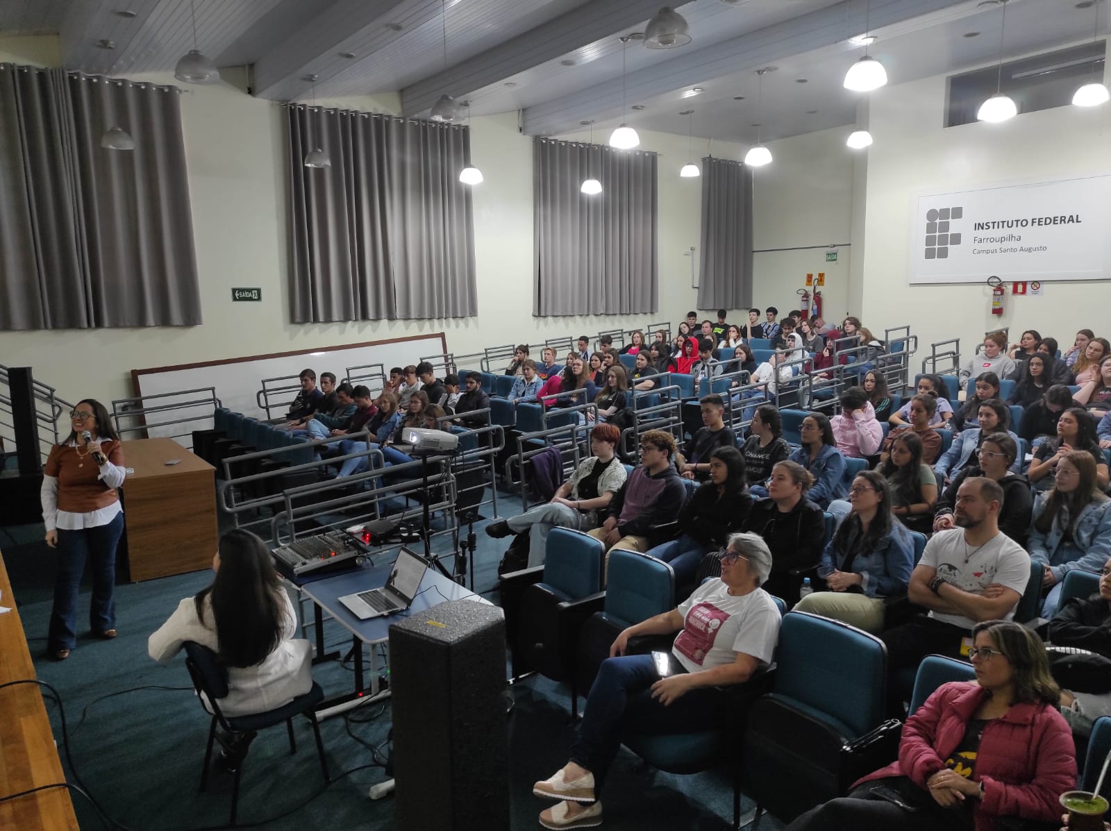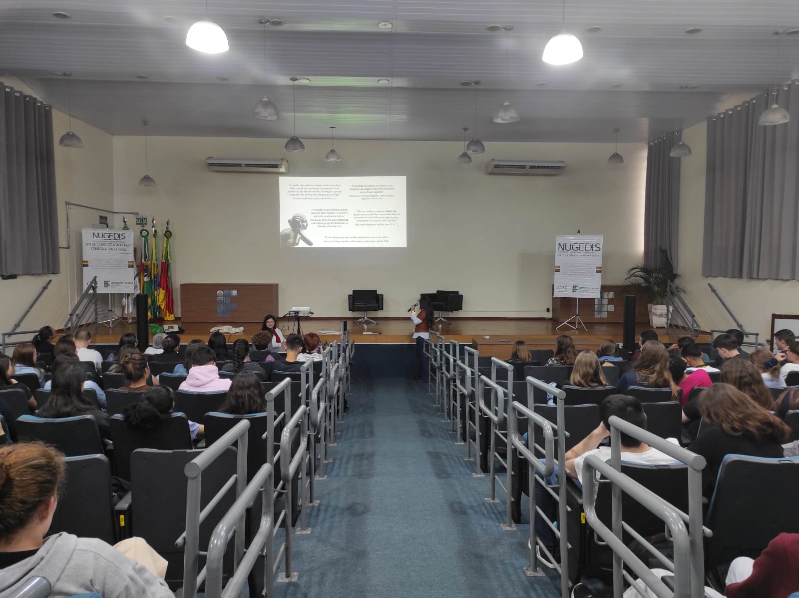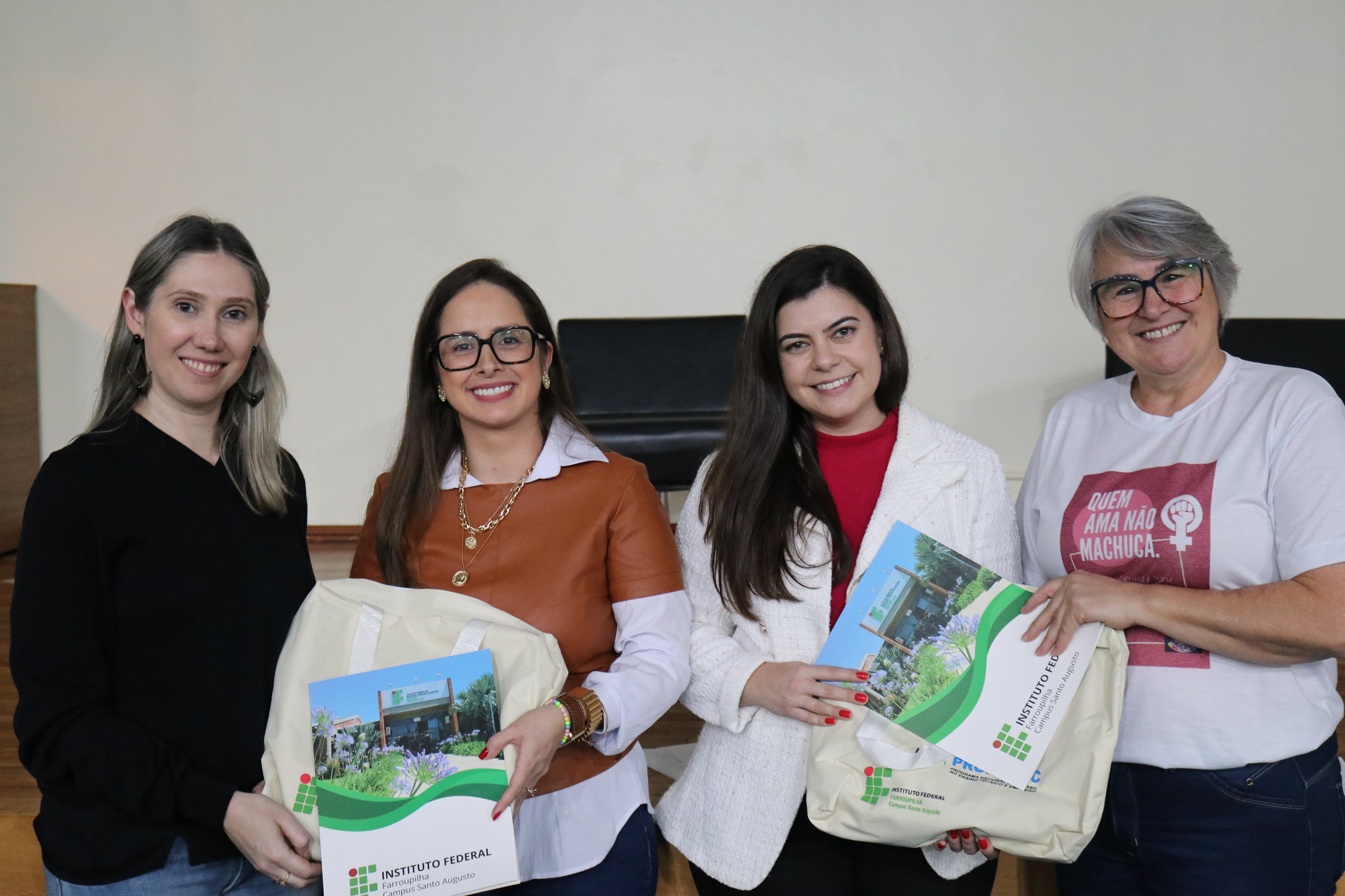 Tendo como convidadas as advogadas Larissa Boeira e Michele Iop Cerda Palacios, especialistas em Direito de Família, foram realizadas duas palestras no auditório da instituição, com o tema “Violência Contra a Mulher e Lei Maria da Penha”, sendo a primeira às 15h30, para os estudantes dos 3º anos dos cursos técnicos integrados ao ensino médio, e às 19h, para os estudantes dos cursos superiores do Bacharelado em Agronomia, Licenciatura em Ciências Biológicas e Tecnologia em Gestão do Agronegócio.