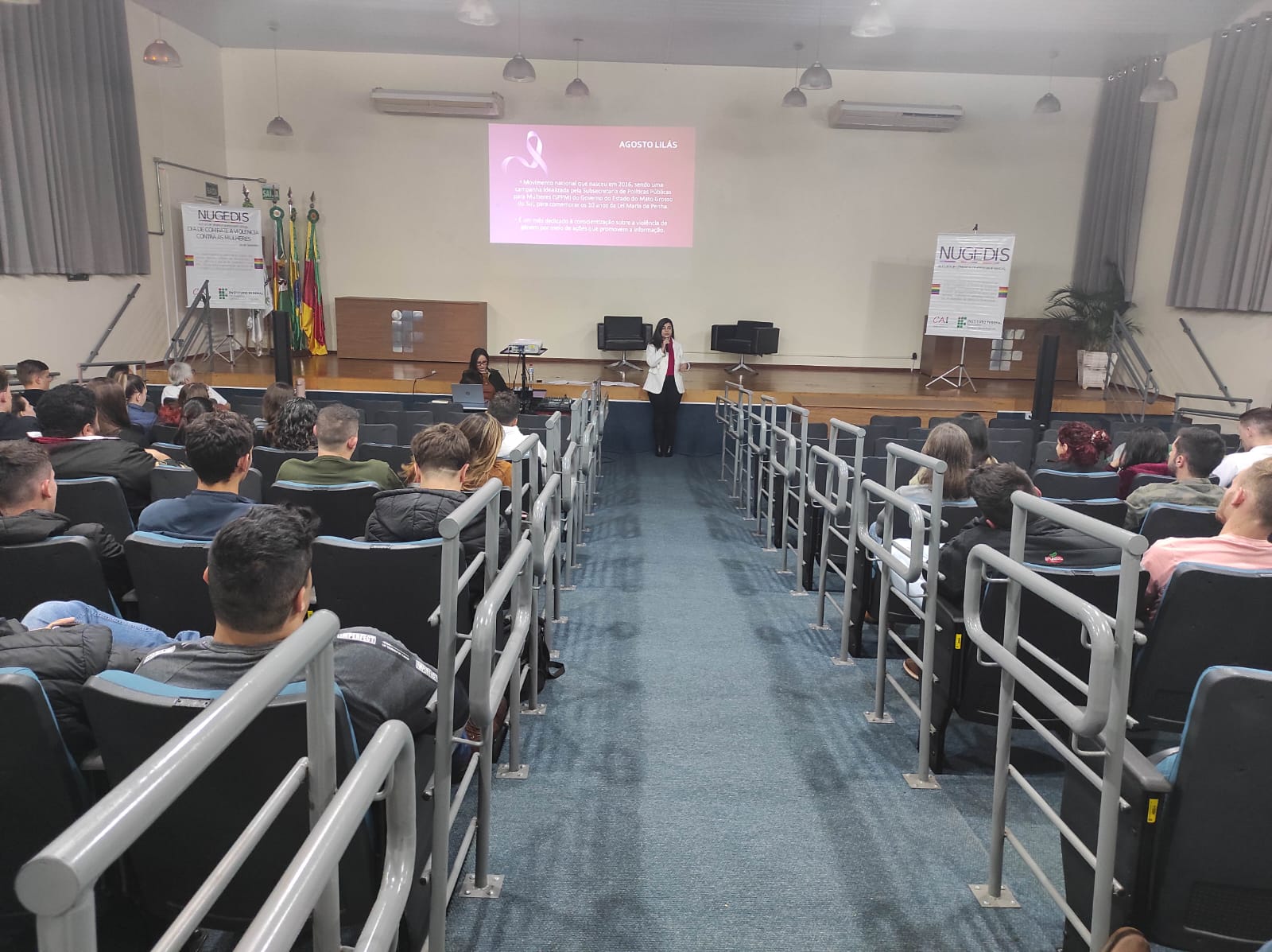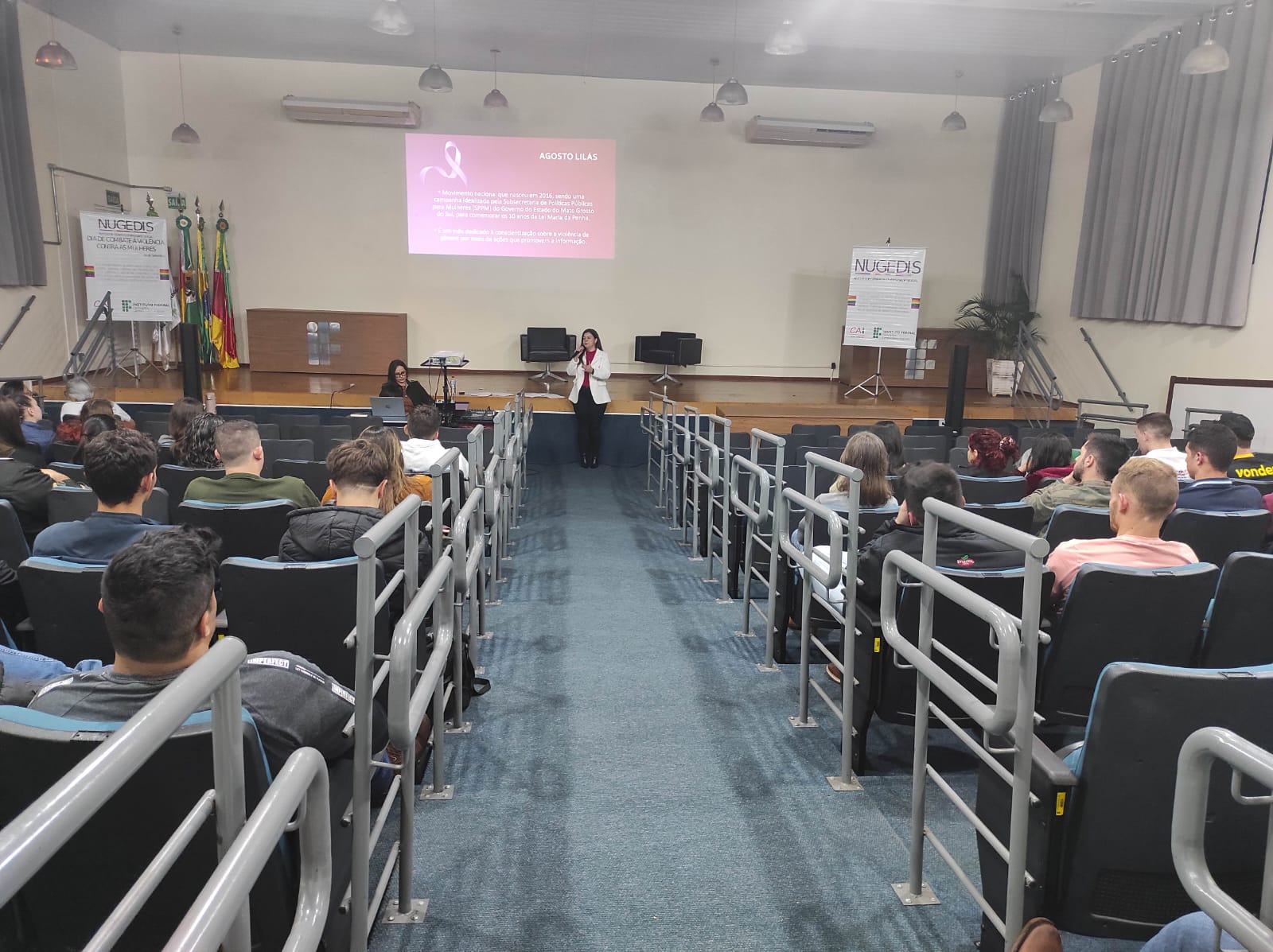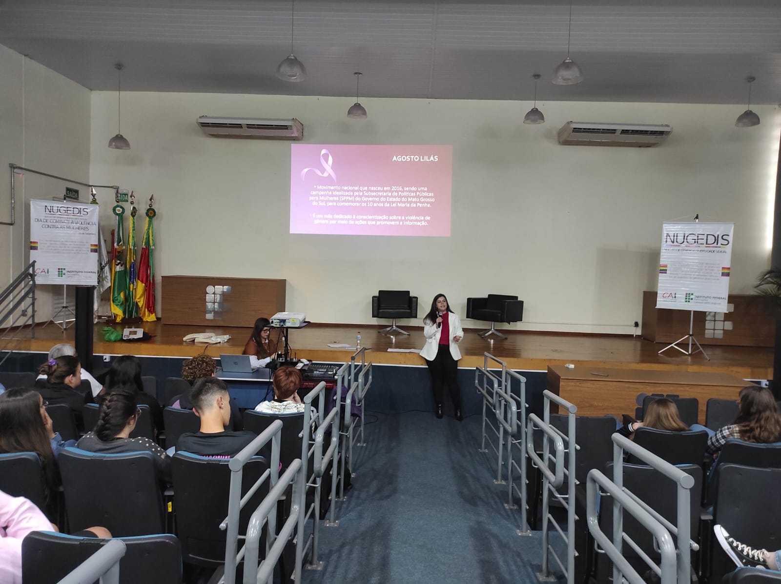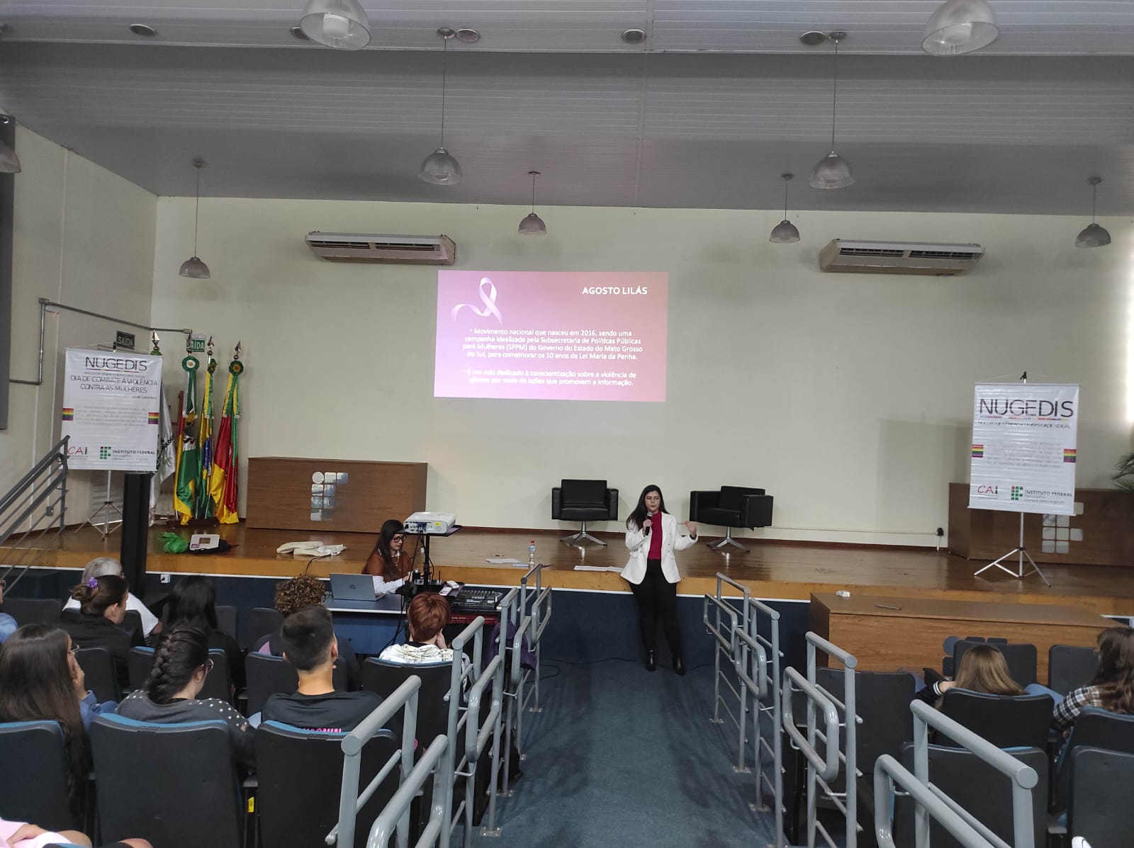 O Núcleo de Gênero e Diversidade Sexual do IFFar – Campus Santo Augusto – NUGEDIS, promoveu na terça-feira, dia 12 de setembro, atividades alusivas ao dia 16 de setembro, data oficial de Combate à violência contra as mulheres no IFFar, institucionalizada após o feminicídio da servidora Liana dos Santos Gomes.