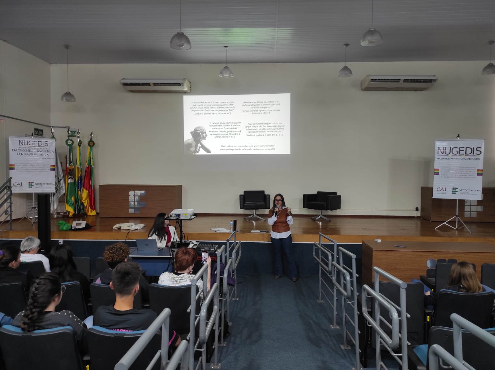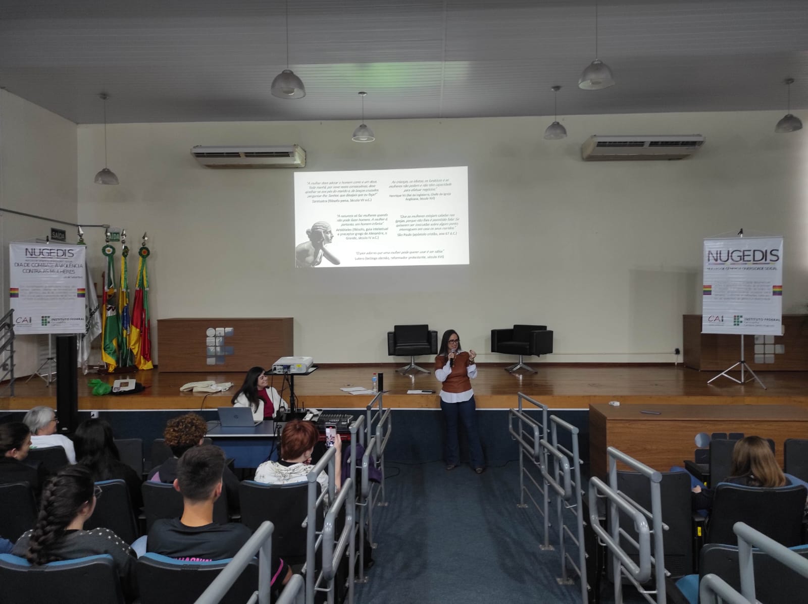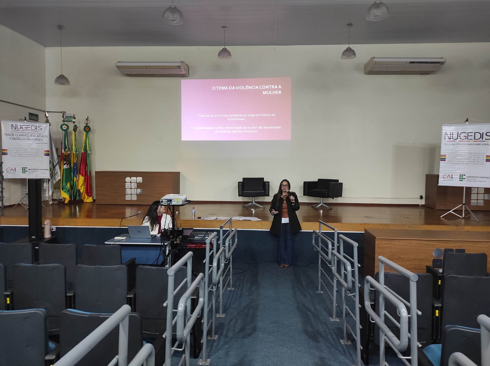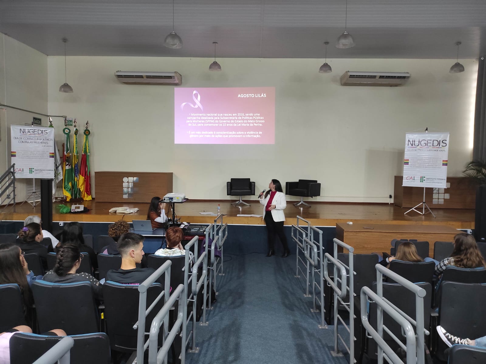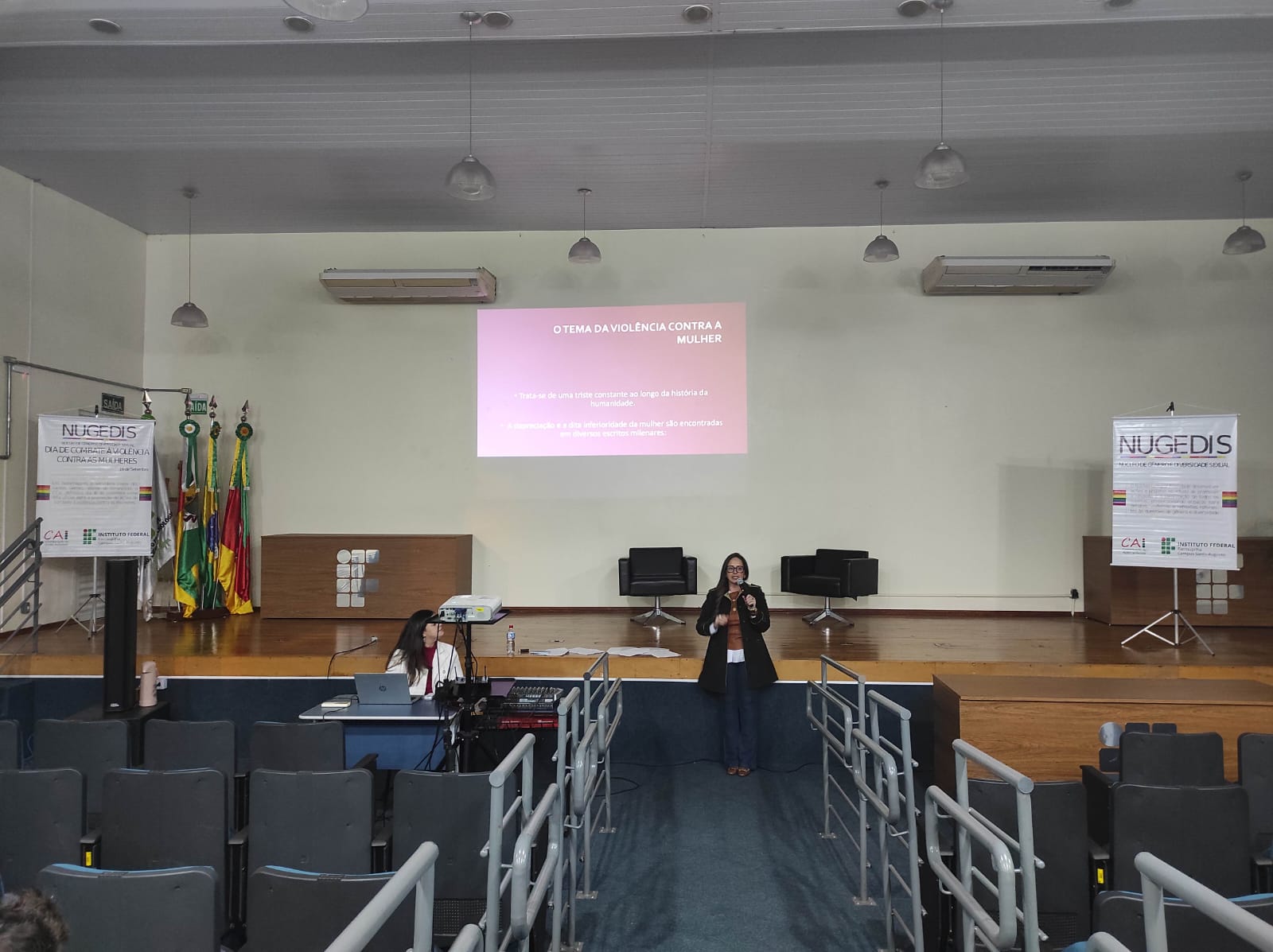 O Núcleo de Gênero e Diversidade Sexual do IFFar – Campus Santo Augusto – NUGEDIS, promoveu na terça-feira, dia 12 de setembro, atividades alusivas ao dia 16 de setembro, data oficial de Combate à violência contra as mulheres no IFFar, institucionalizada após o feminicídio da servidora Liana dos Santos Gomes.