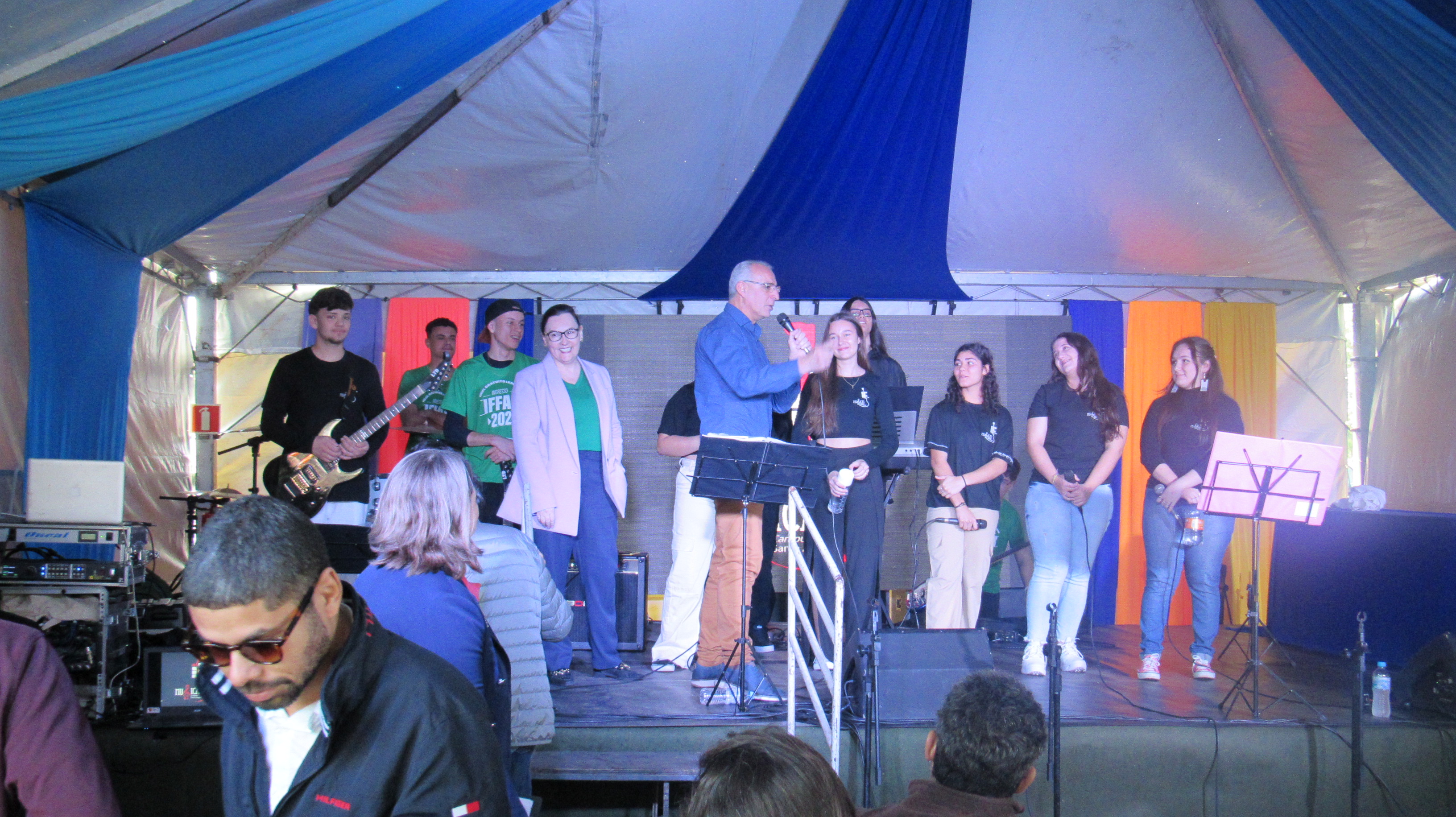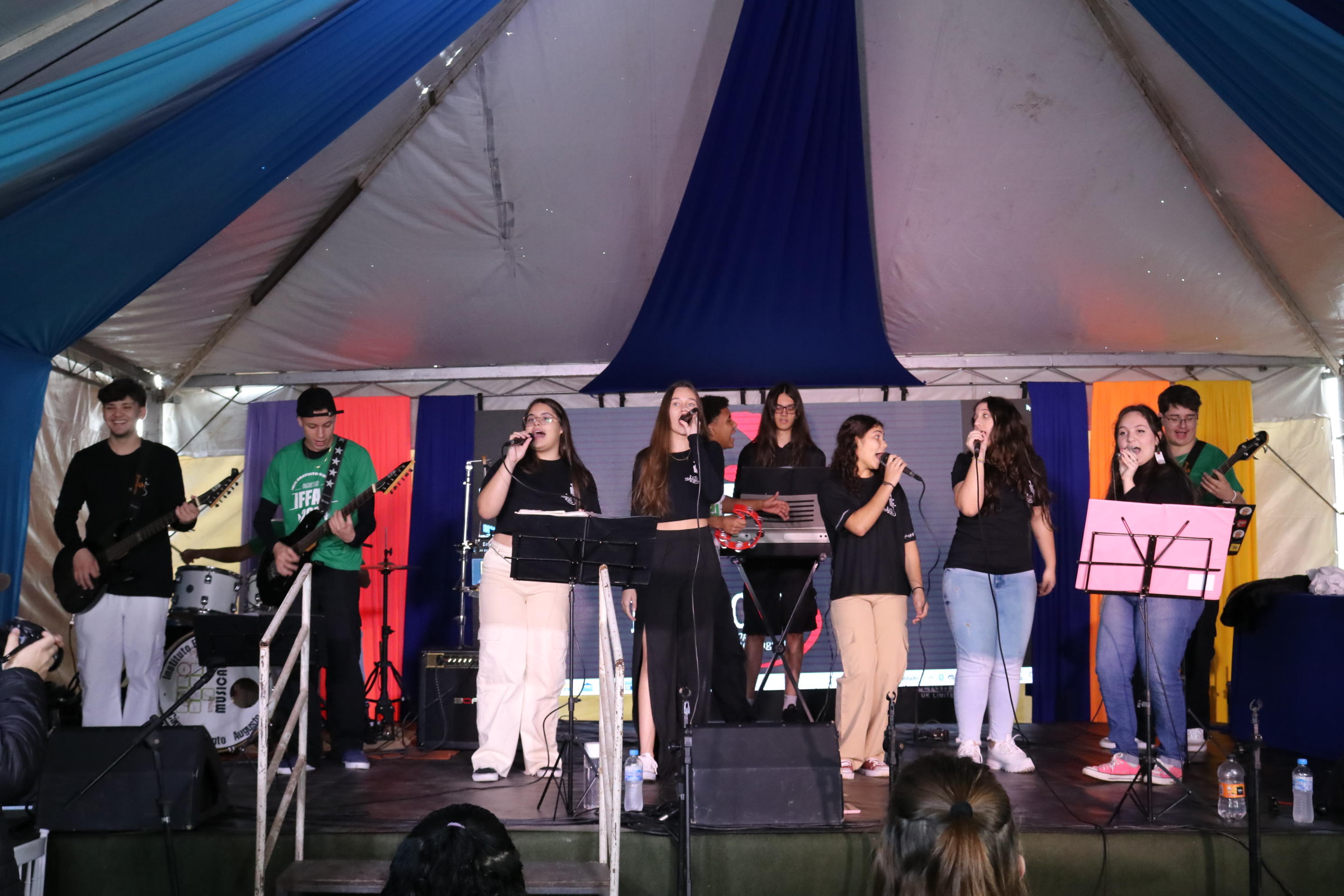 Foram dois momentos do grupo no palco principal do evento, contando pela manhã com a presença da Reitora do IFFar, Nídia Heringer, dos Pró-Reitores e do Prefeito de Santa Maria, Jorge Pozzobom, e à tarde aconteceu uma nova apresentação, com a participação especial dos egressos e ex-integrantes da Banda, atualmente alunos da UFSM, Carolina Alegretti de Souza e Silva e Leonardo Kerpel Wildner.