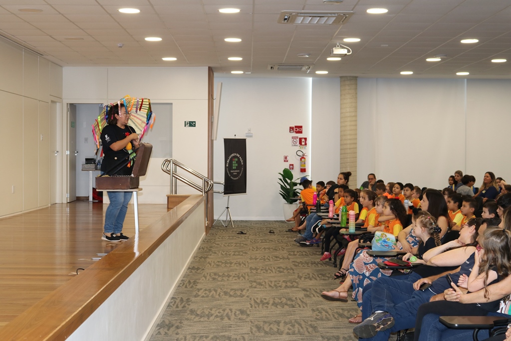 O projeto de extensão “Biblioteca em ação: contar, encantar e educar”, da Biblioteca Mario Quintana do IFFar – Campus Santo Augusto, promoveu na tarde de quarta-feira, dia 08 de novembro, no auditório do Sicredi, o IV Festival de Histórias.